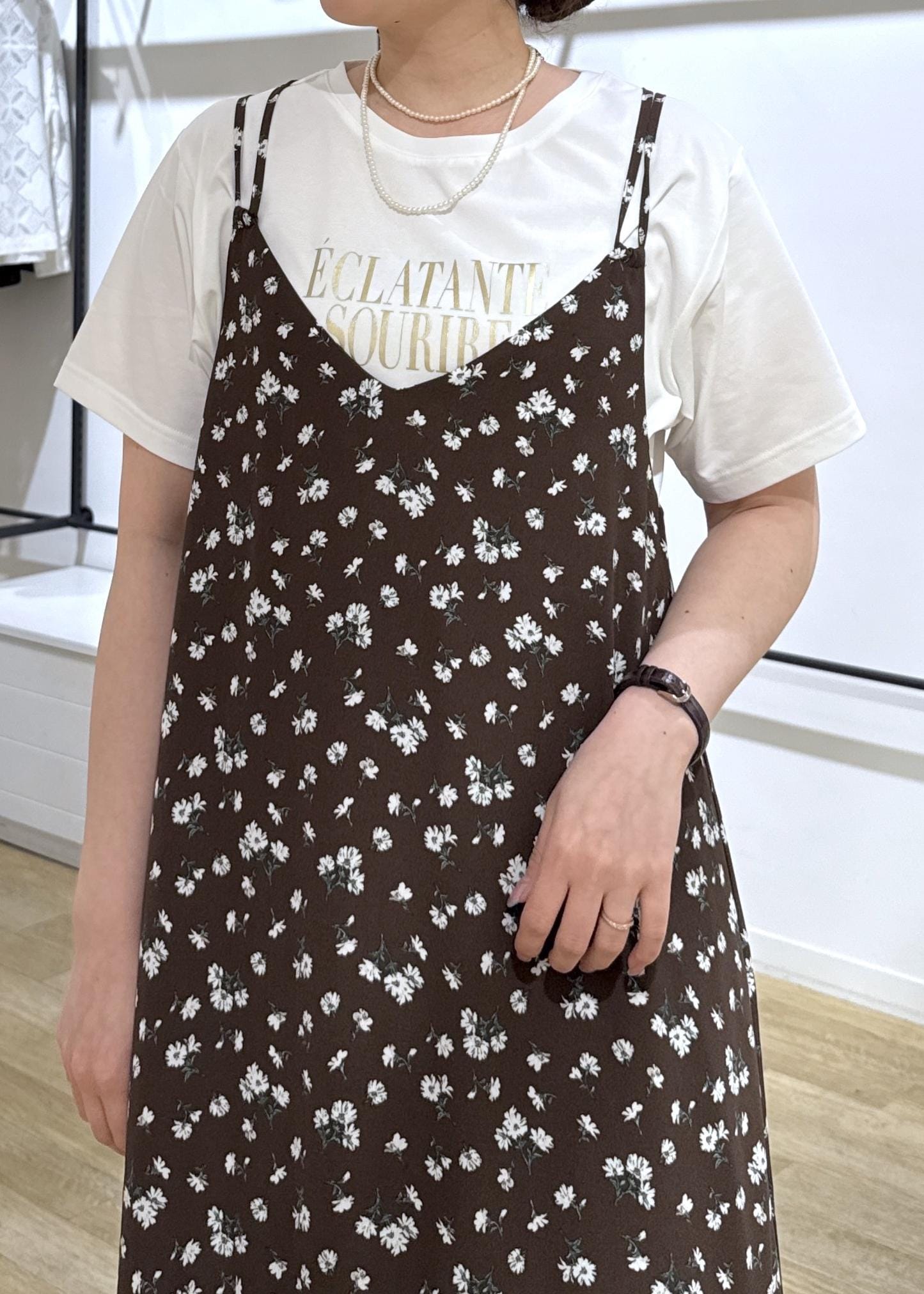 ROPÉ PICNIC花柄ティアードダブルストラップキャミワンピースブラウン / F¥6,490レビュー着丈は方は肩紐で長さ調整可能です。