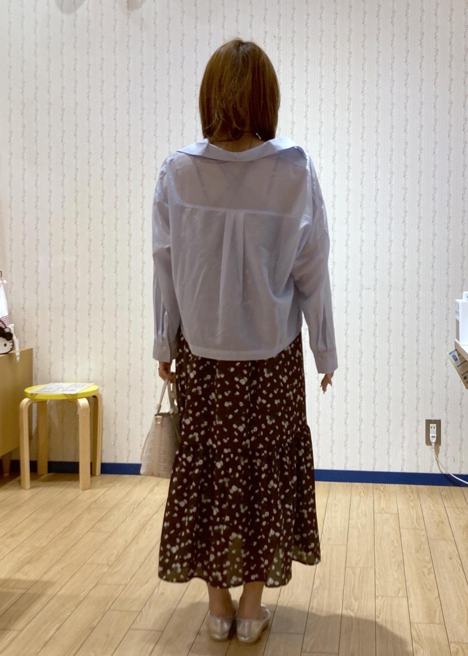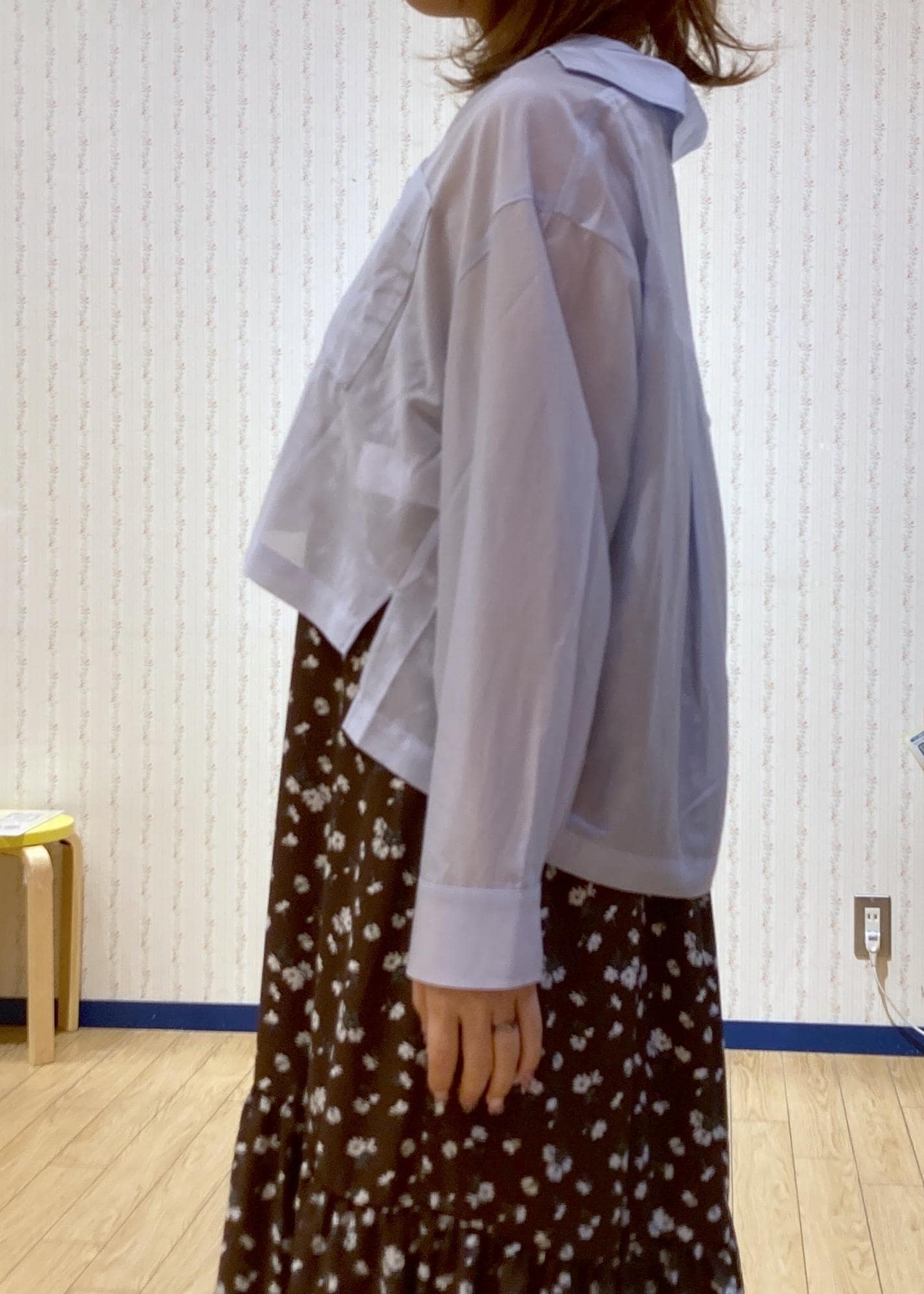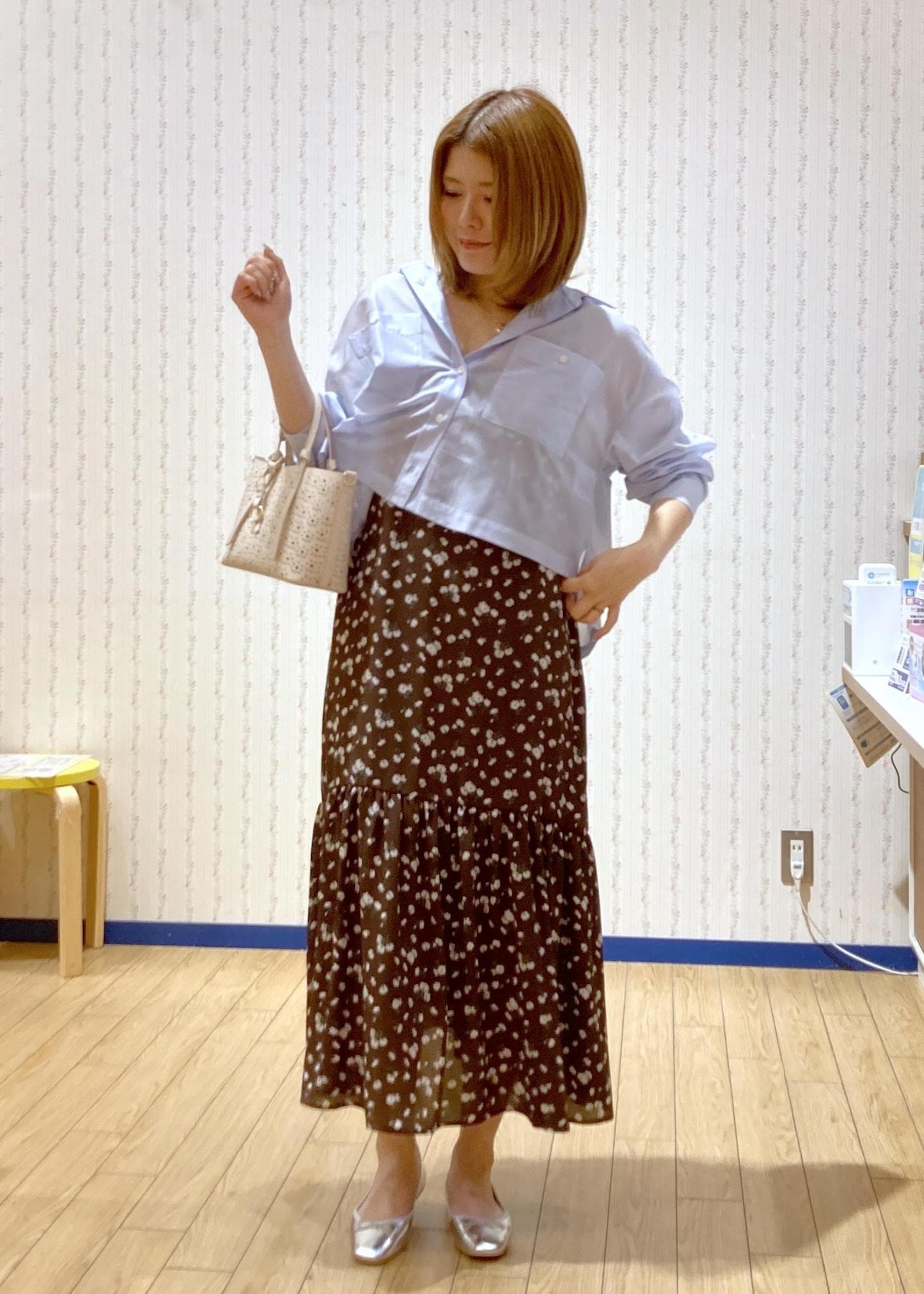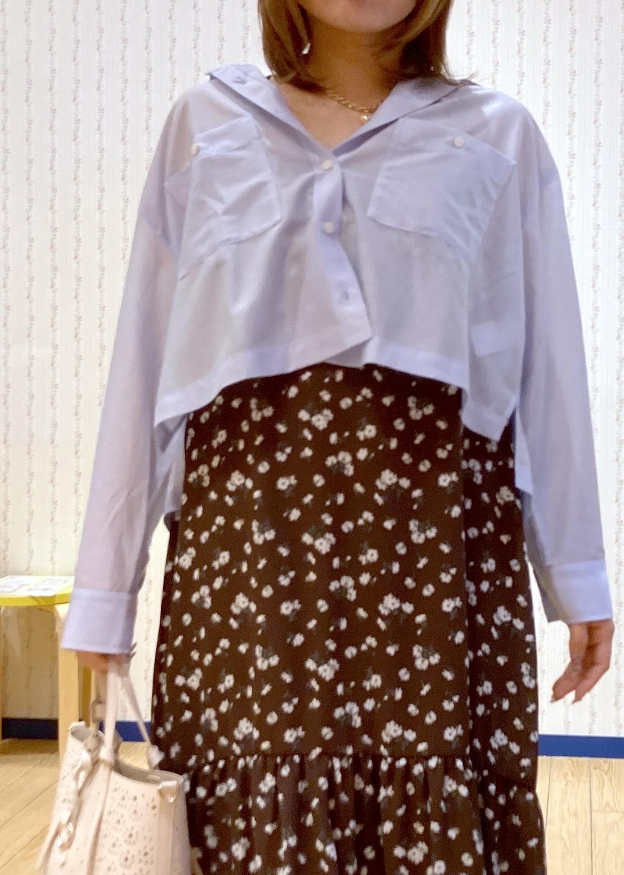 花柄ワンピースを主役に抜け感をシャツでプラスしました!