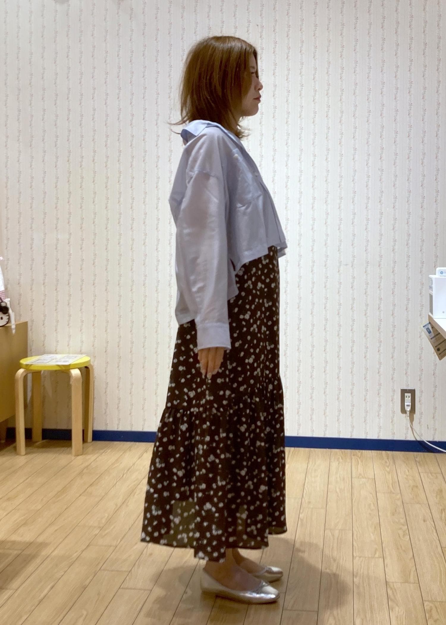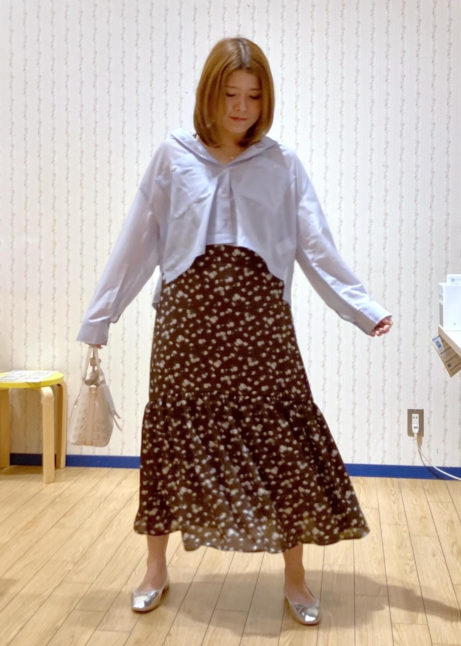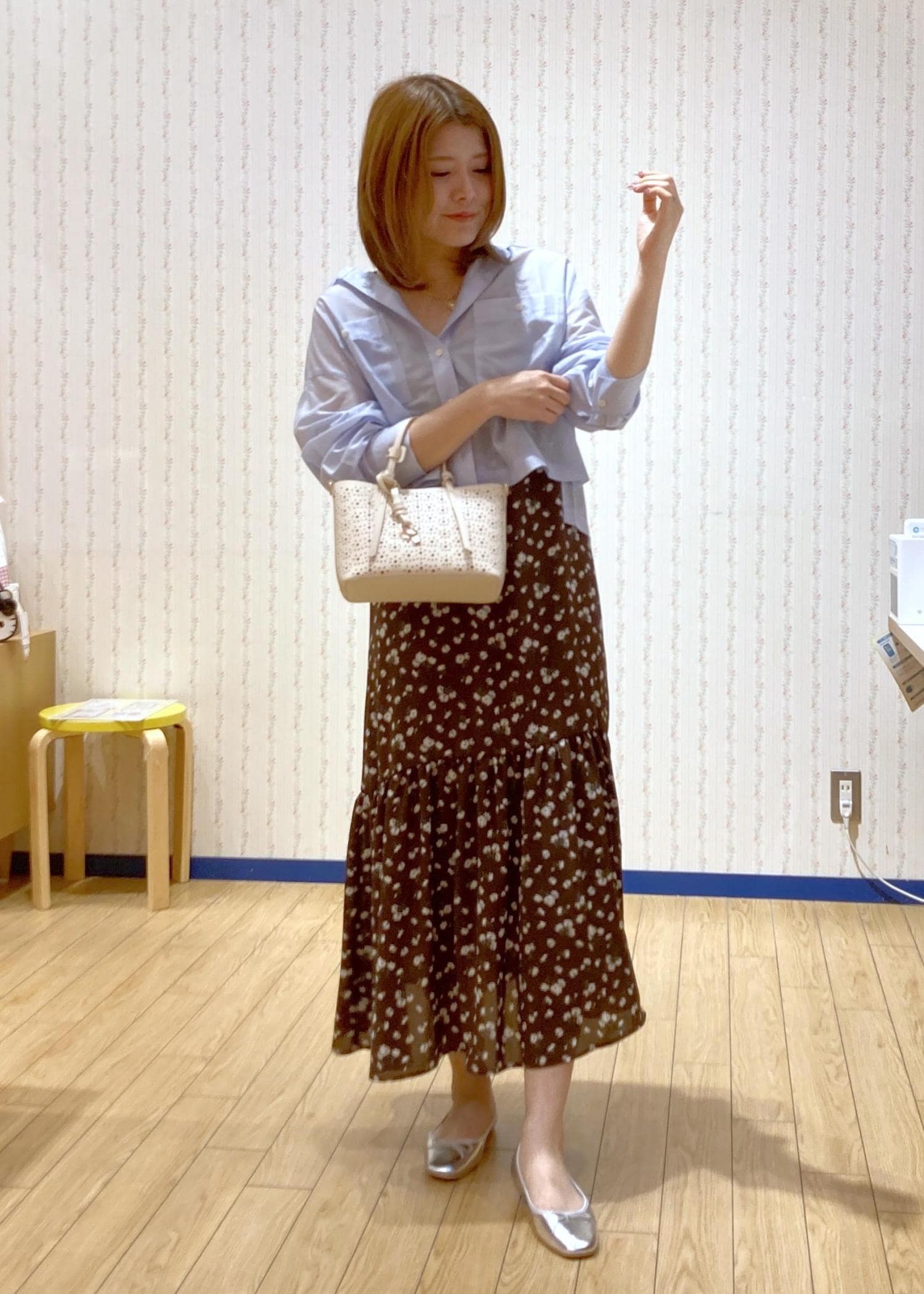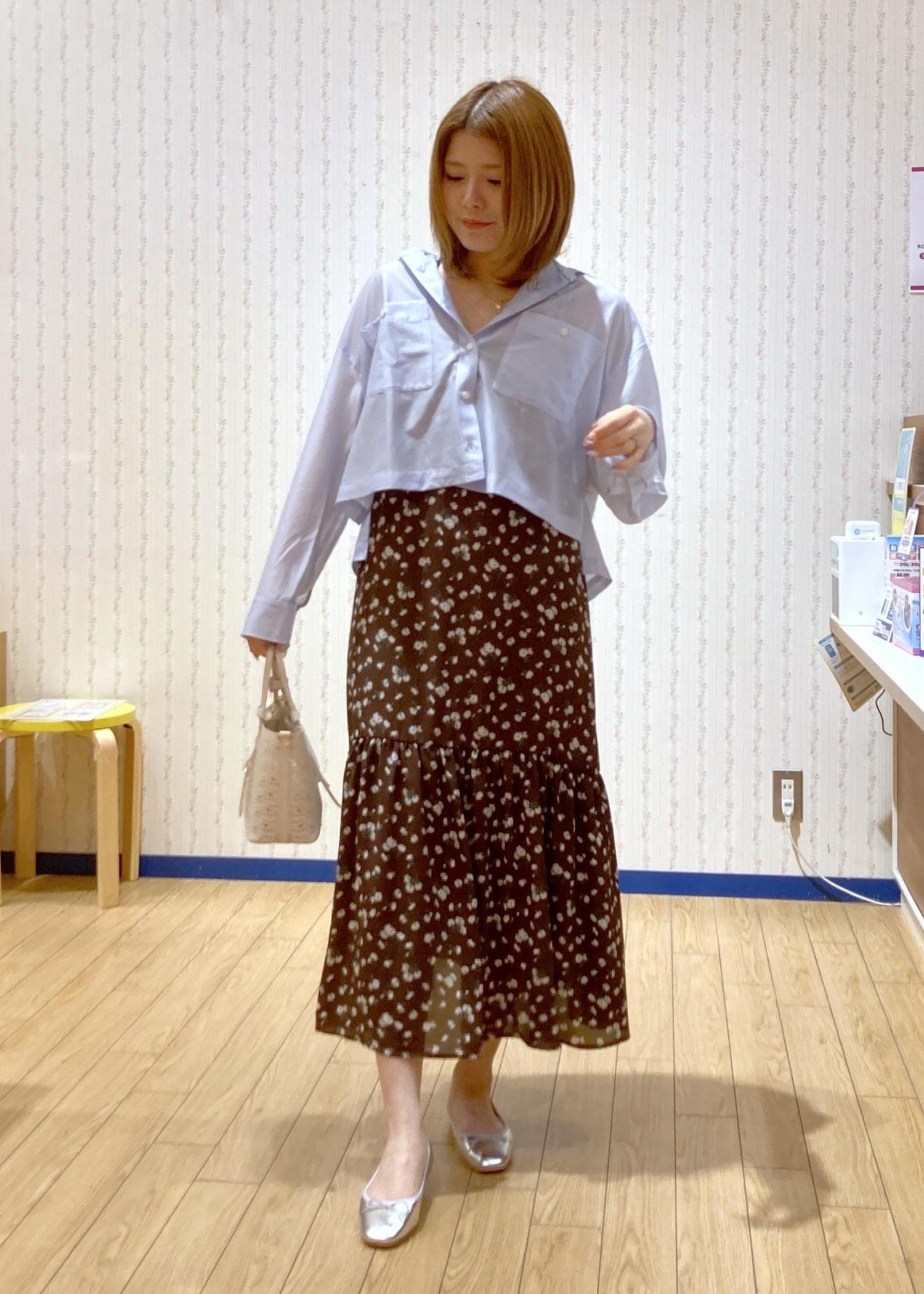 花柄ワンピースを主役に抜け感をシャツでプラスしました!