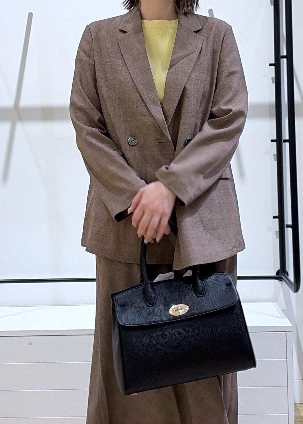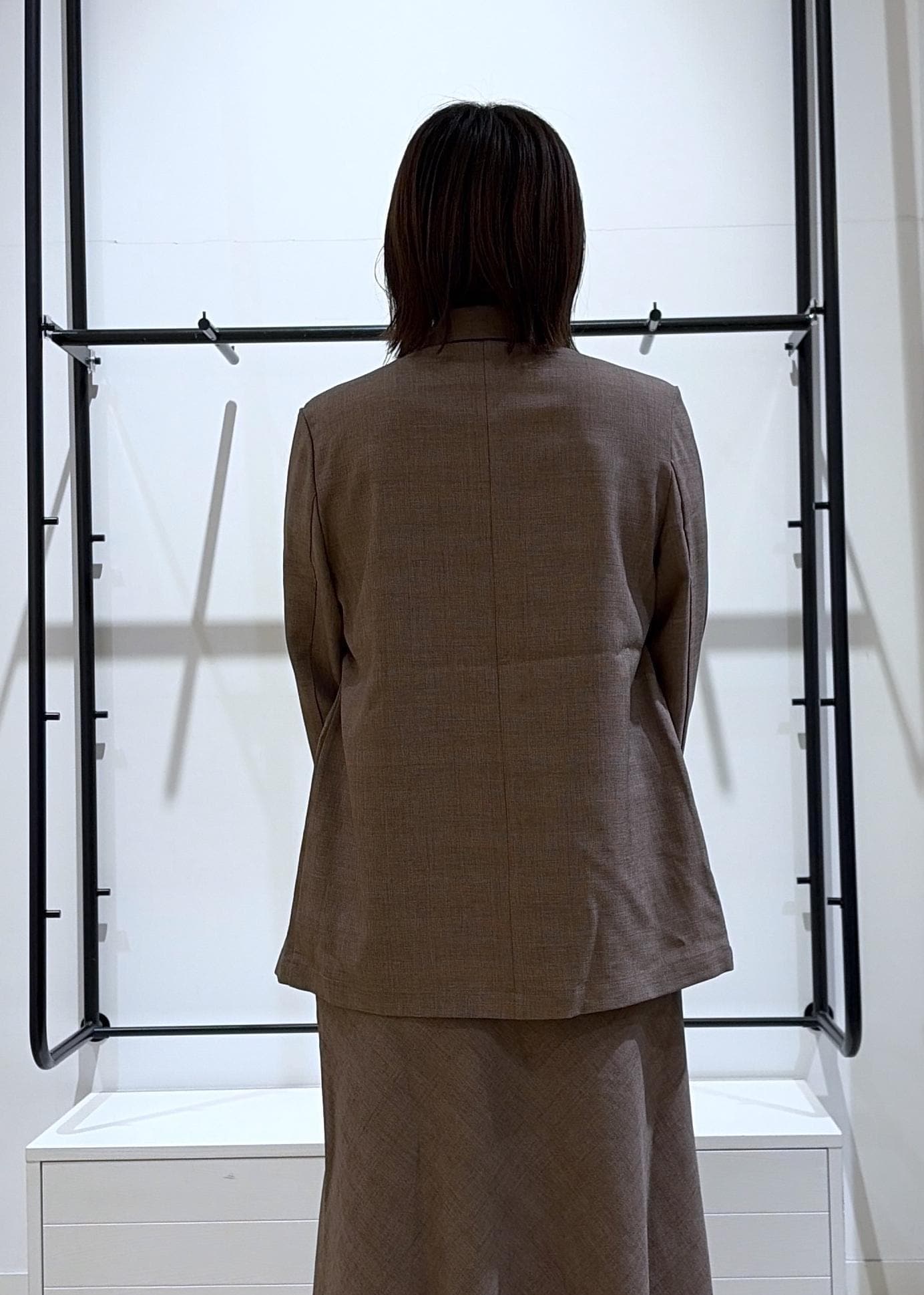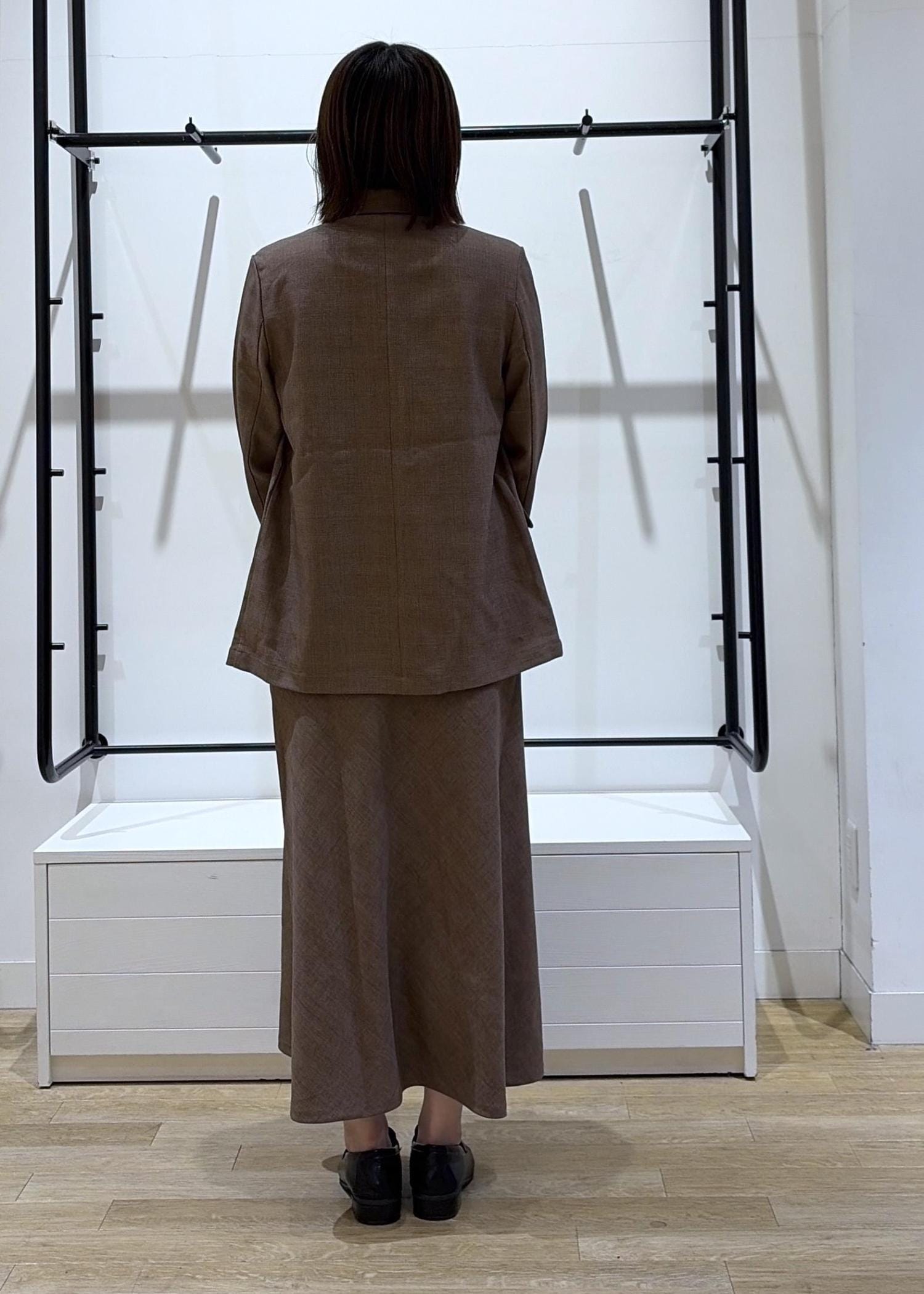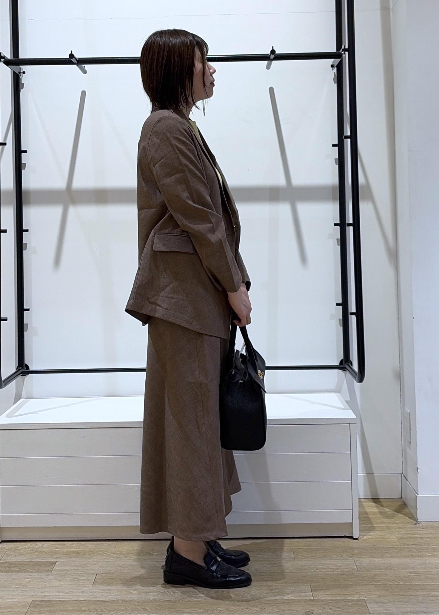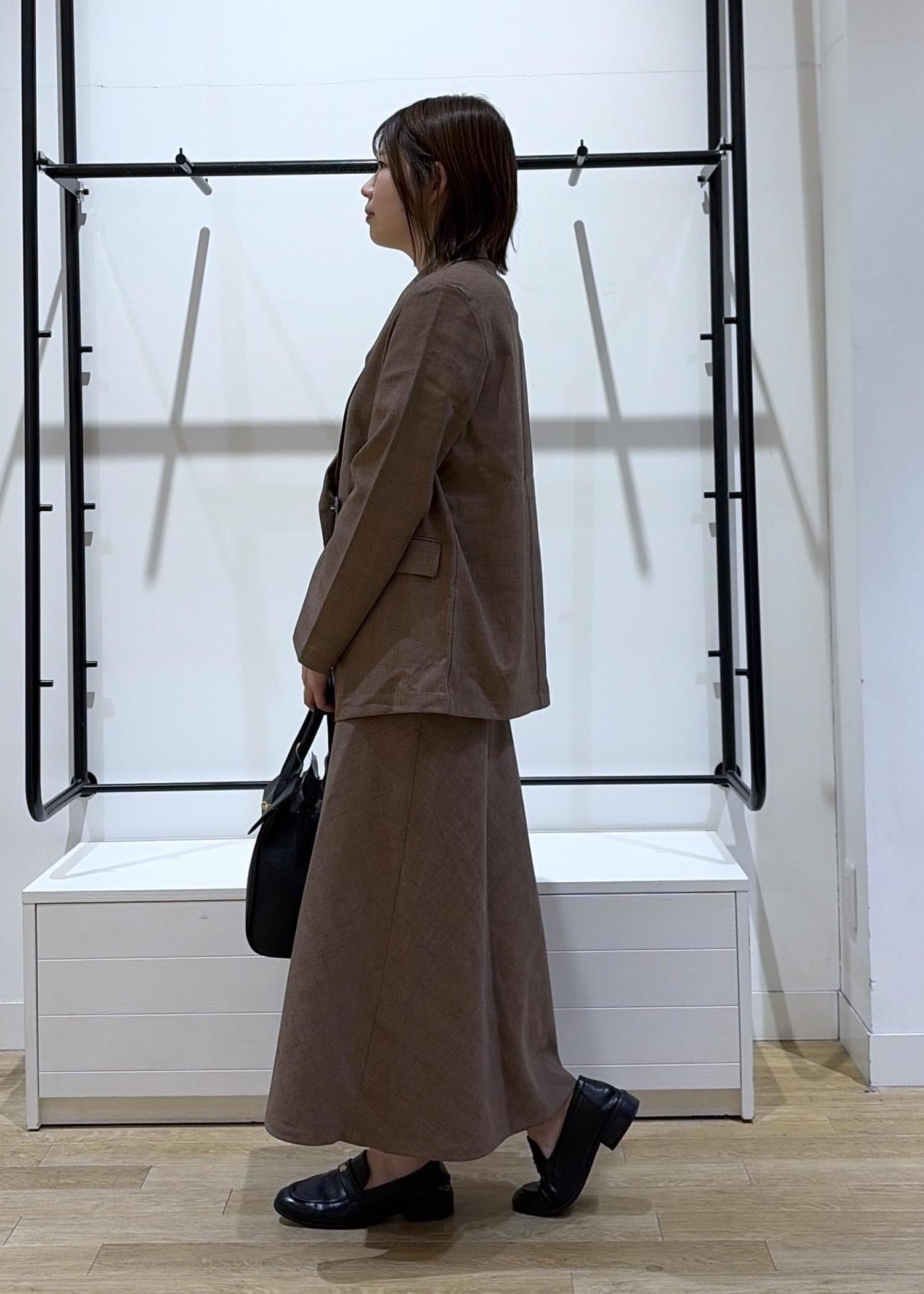 ゆったりしたジャケットにシルエット◎なセットアップ対応スカートを合わせると女性らしさ&トレンド感がしっかり出るのでオススメです♩