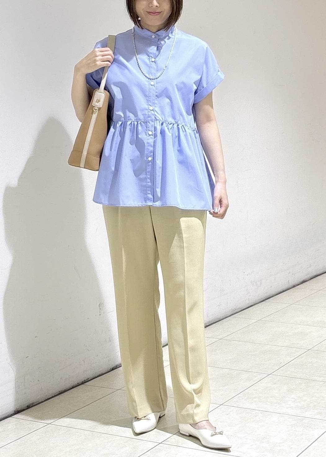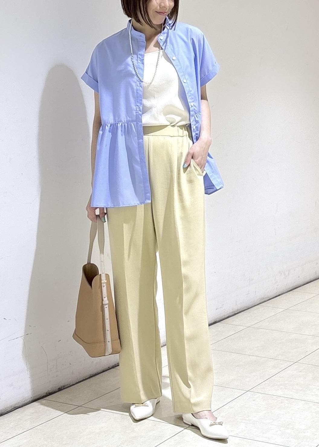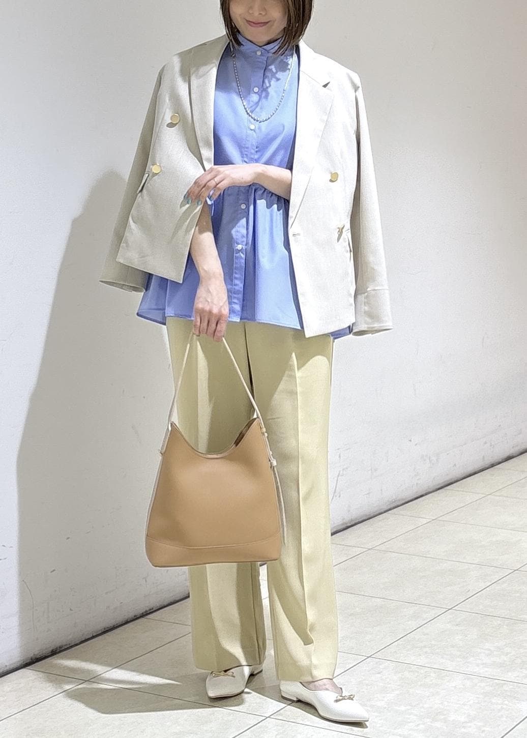 鮮やかなブルーのブラウスを主役に