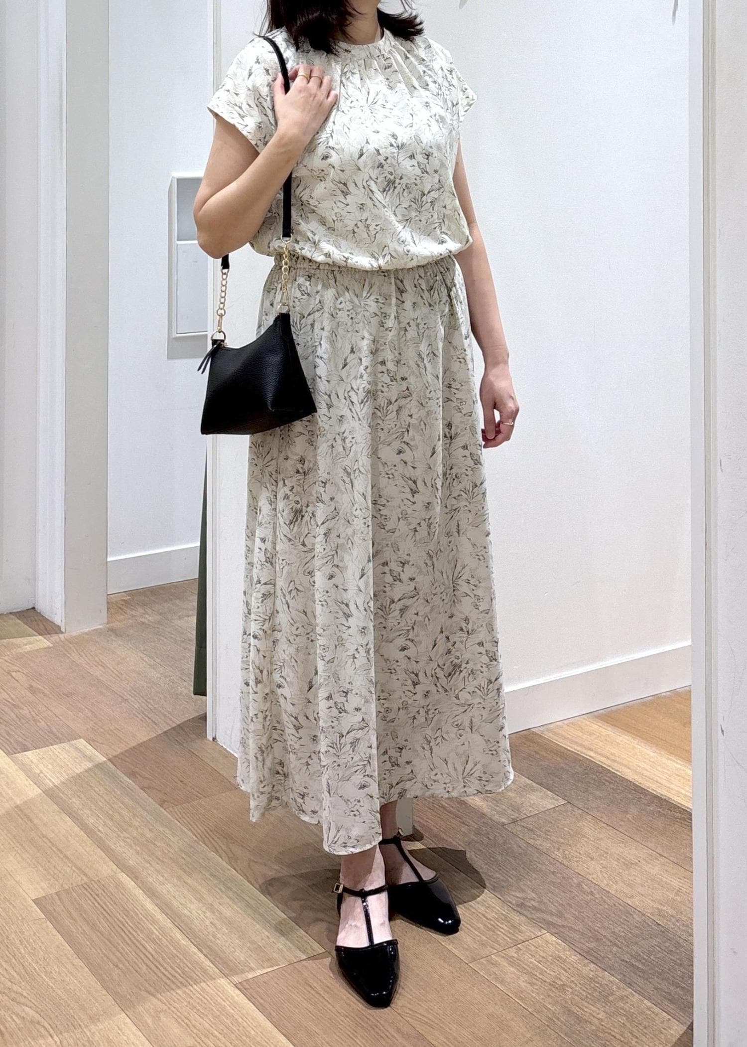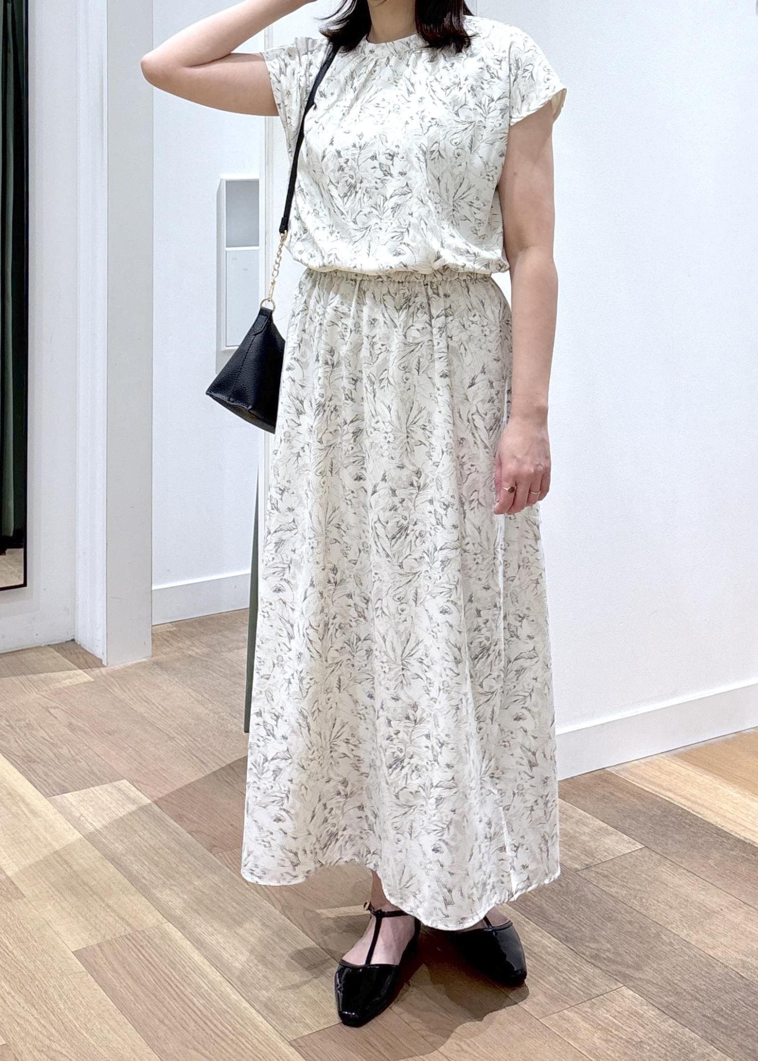 ROPÉ PICNIC【WEB限定サイズ】小花柄&線画アソートワンピースキナリ / MT¥5,489レビューウエストにゴムが入っておりマークされるので、着るだけでメリハリが出るデザインです。162㎝MTサイズの着用で、足首が出るくらいの長さでした。