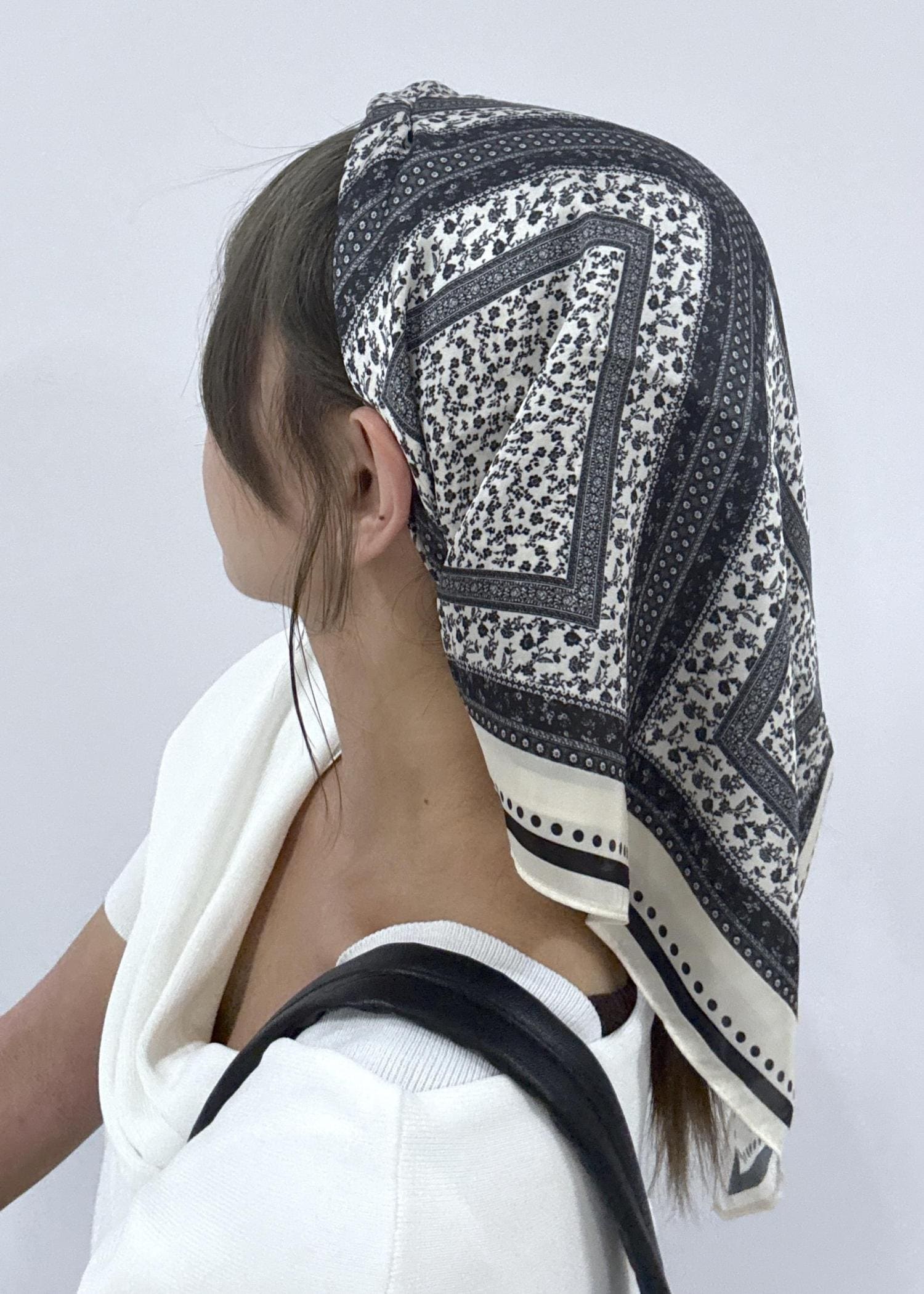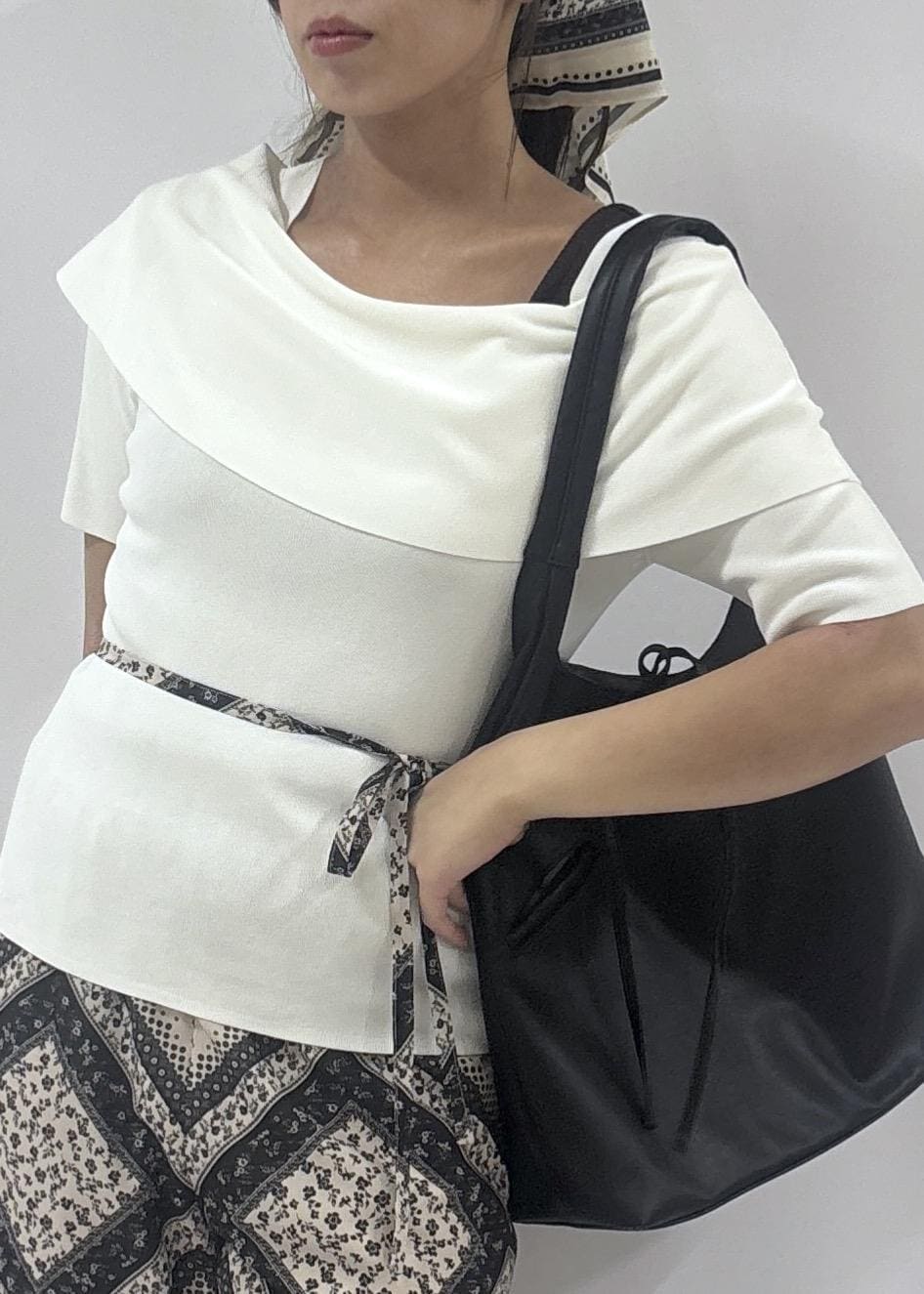モノトーン柄物スカーフコーデ