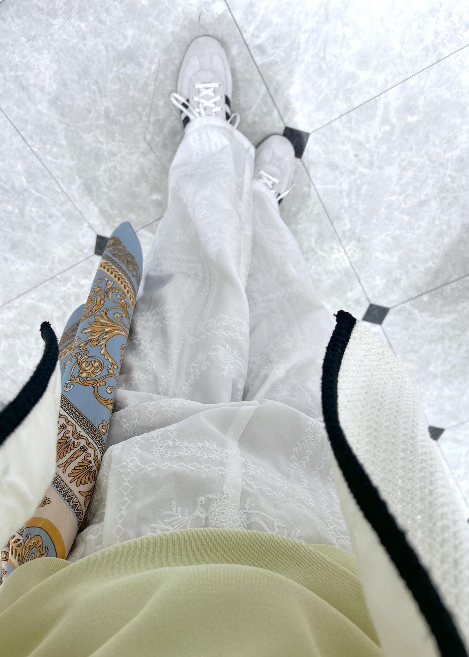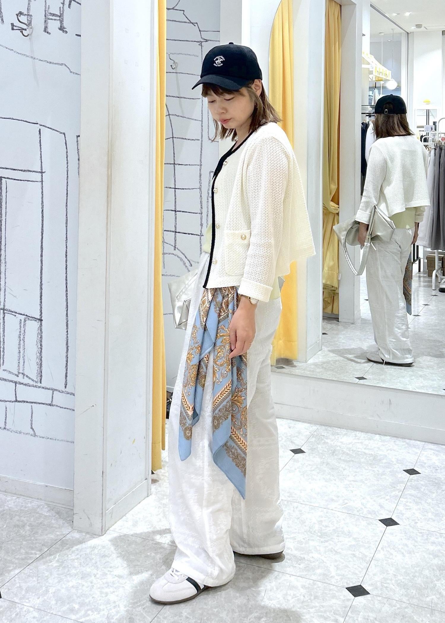 ウエストにスカーフを足してポイントにしました。