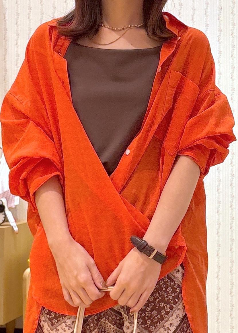 ROPÉ PICNICお着軽シャツシリーズ 無地・ストライプ 2WAYシアーブラウス/接触冷感・通気性オレンジ / F¥4,499レビュー綿100%で通気性もよく、接触冷感機能付きで