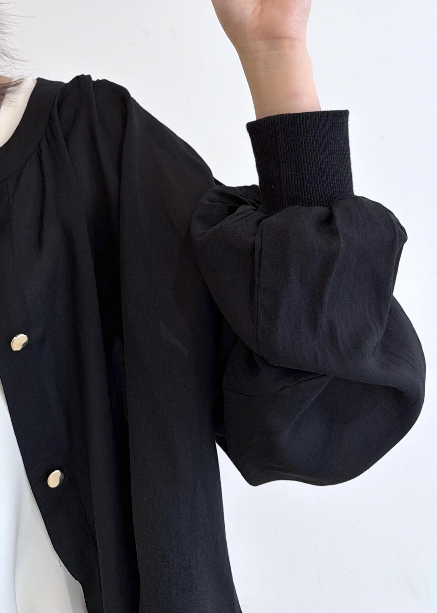 袖口にリブが入っているので腕まくりもしやすいです! -