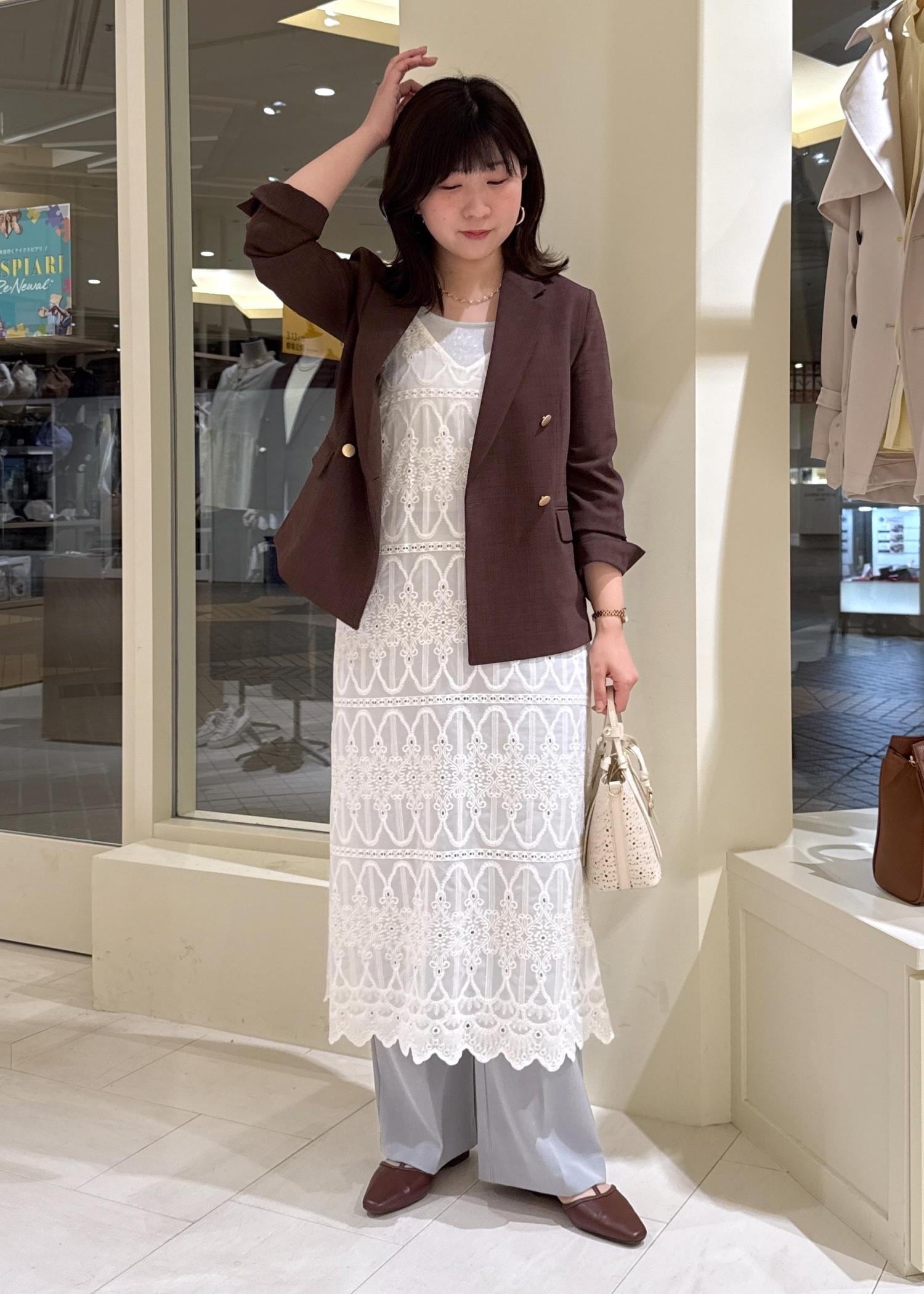 ブラウンアイテムは抜け感のある素材やカラーで合わせるとこれから先も着やすいと思うので、レースワンピとインナーはタンクトップで抜け感のあるコーデにしました。