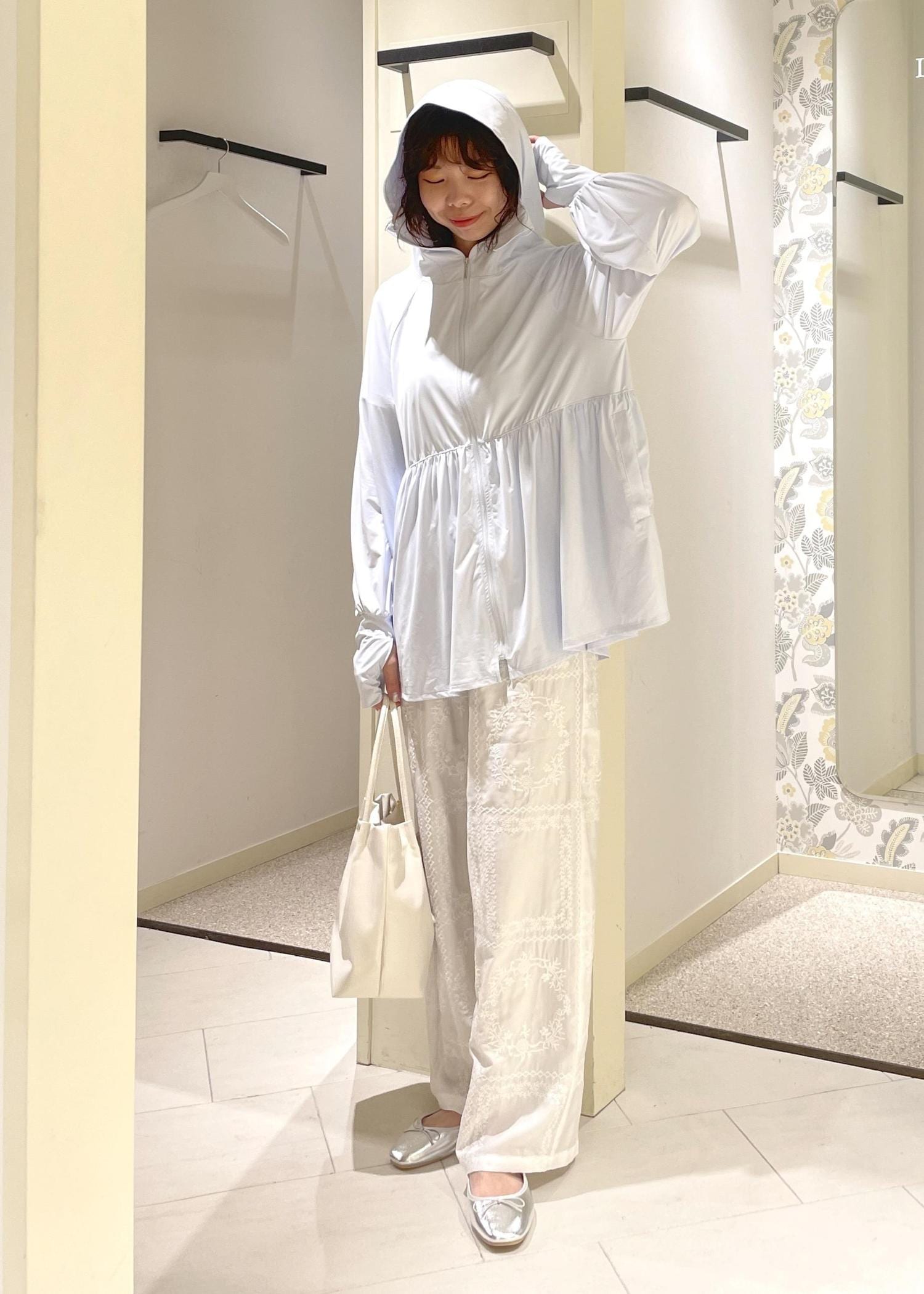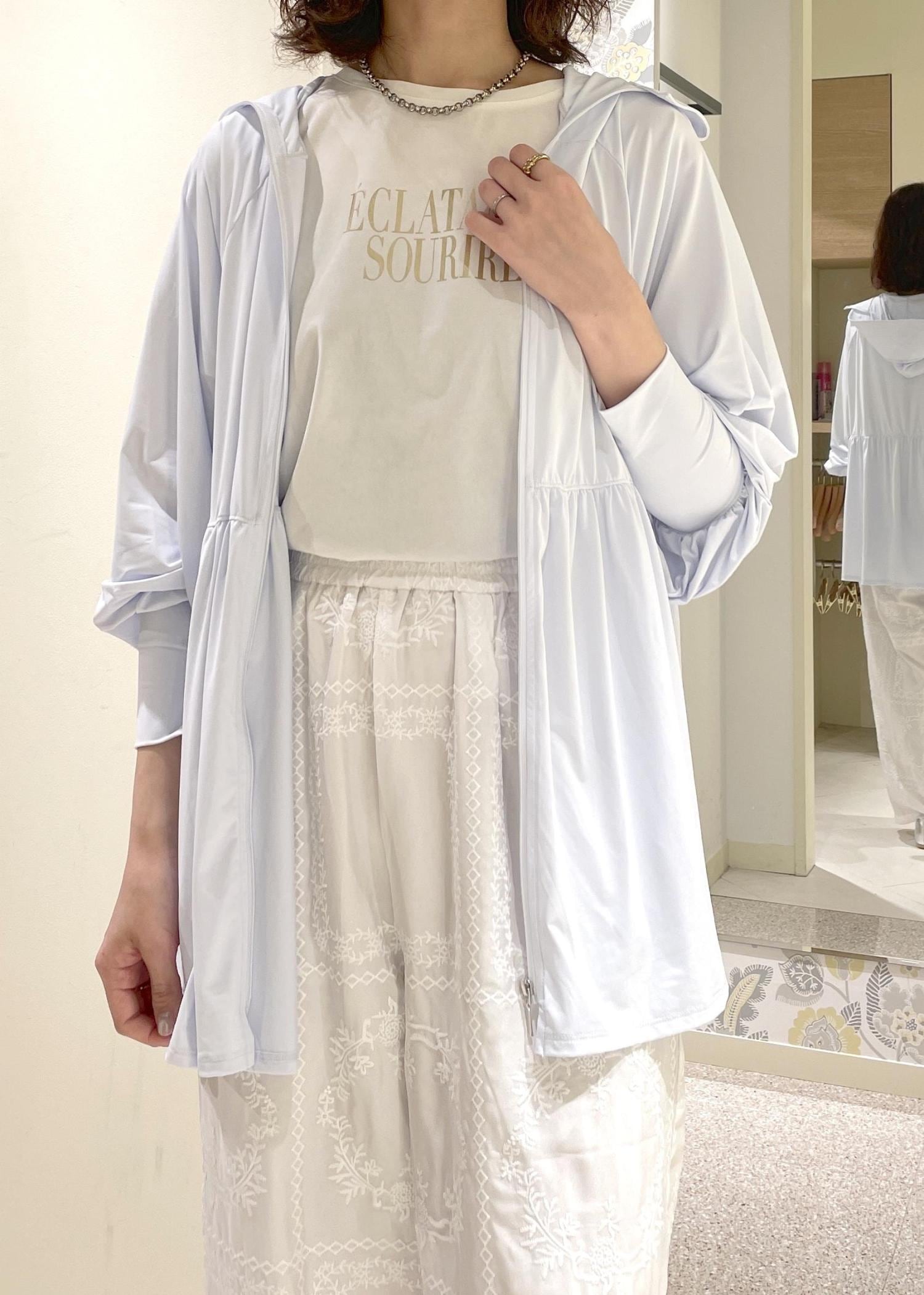大人気のUVパーカーは、機能性は勿論のこと、ペプラムシルエットで女性らしく着こなせるのがポイント!