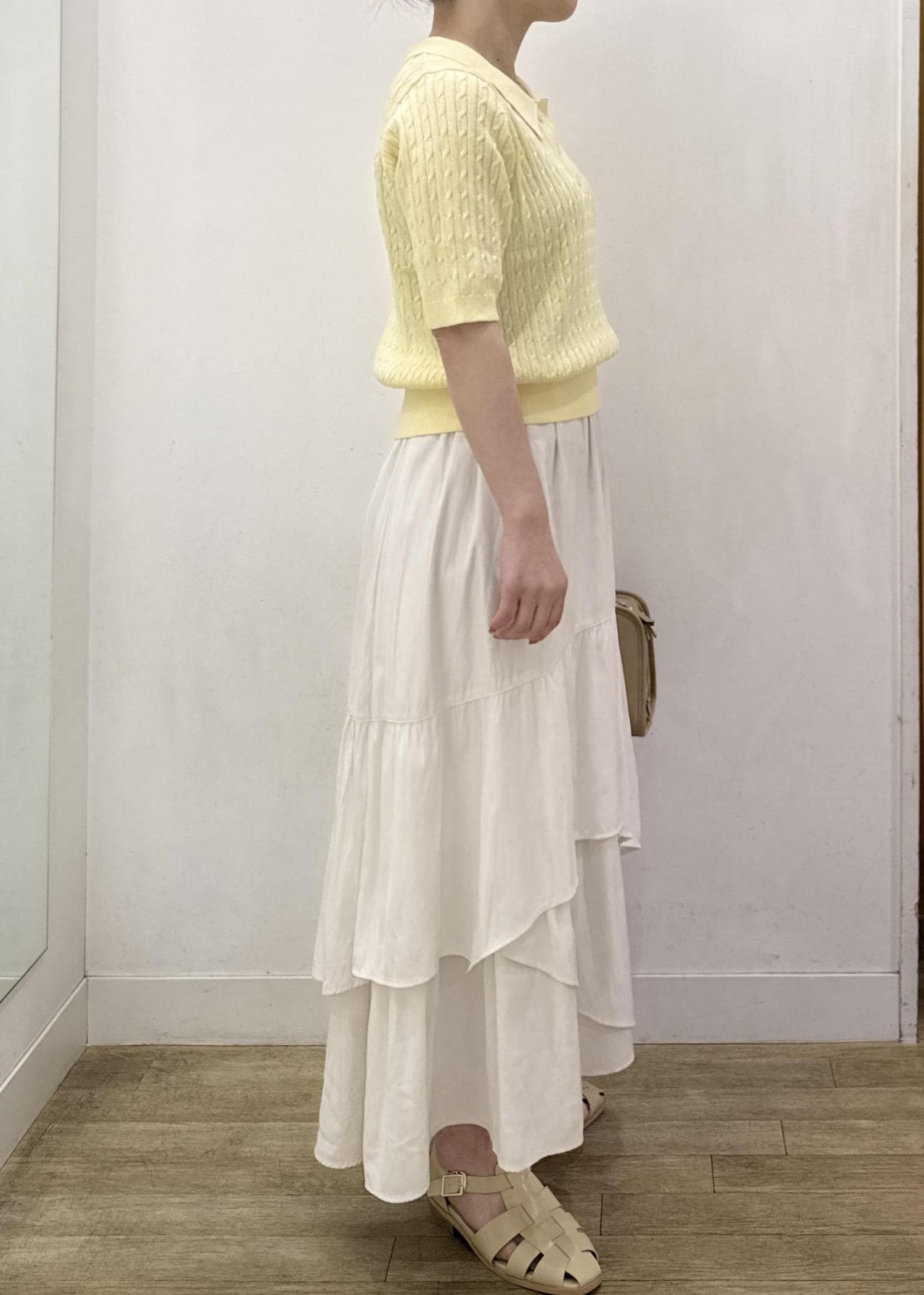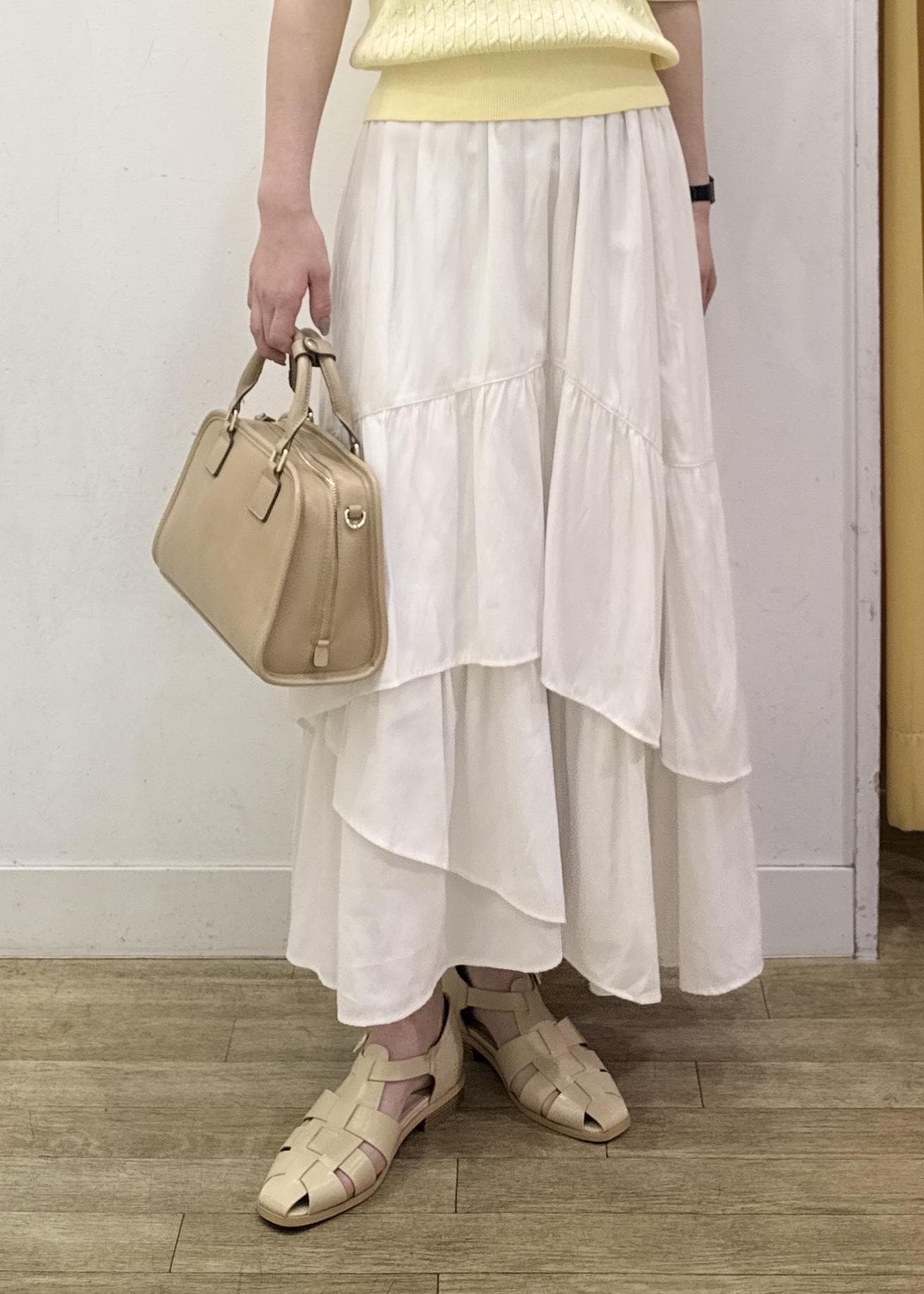 ROPÉ PICNICダンダンティアードスカートオフホワイト / F¥7,491レビューウエストはゴムでニットをインしてもラクに穿けました!