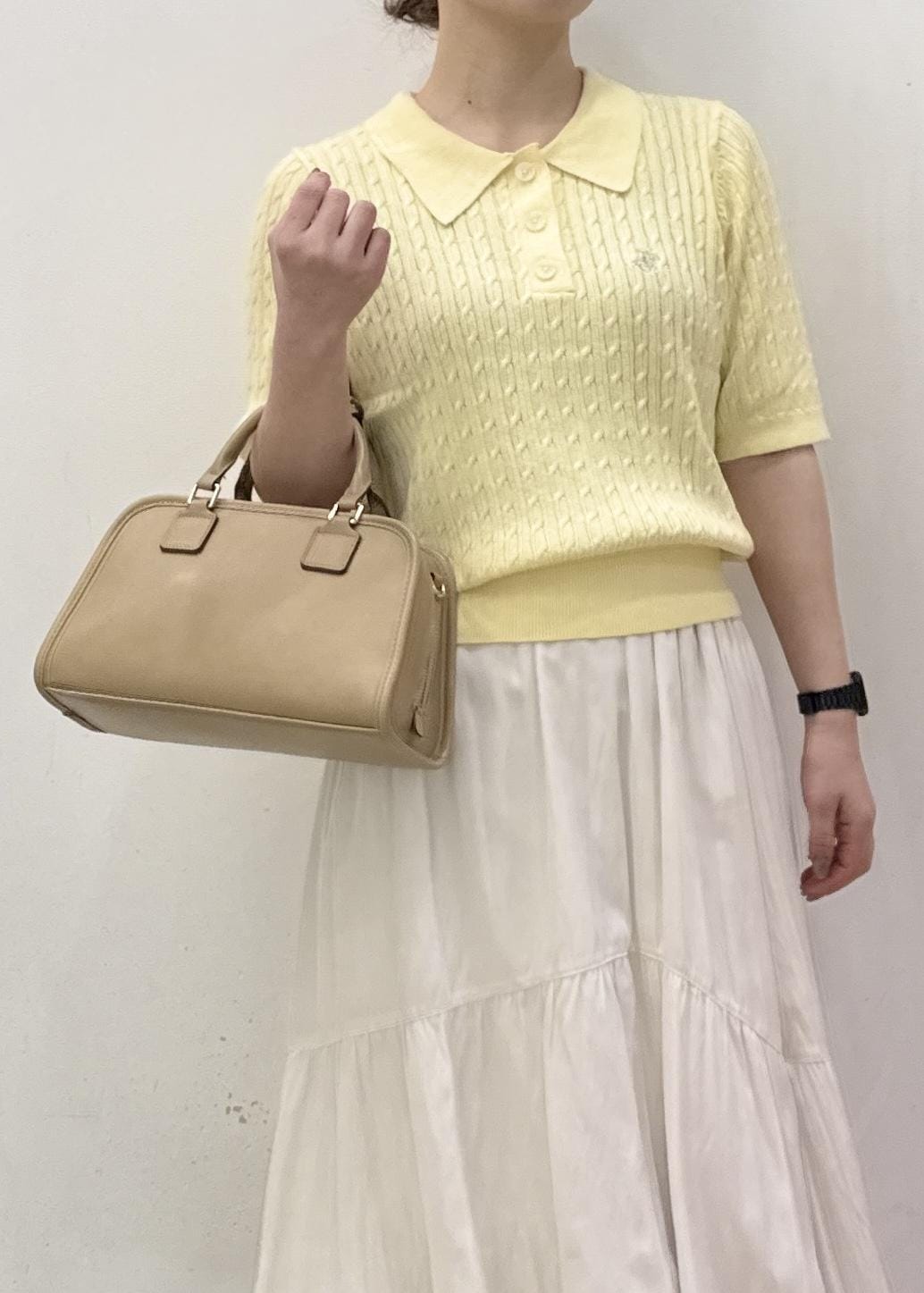 ROPÉ PICNIC【BEVERLY HILLS POLO CLUB別注】ポロカラーケーブルニット/リンクコーデクリーム / F¥5,489レビュー程よくフィットするジャストなサイズですが、伸縮性があり窮屈感はなく着られました。