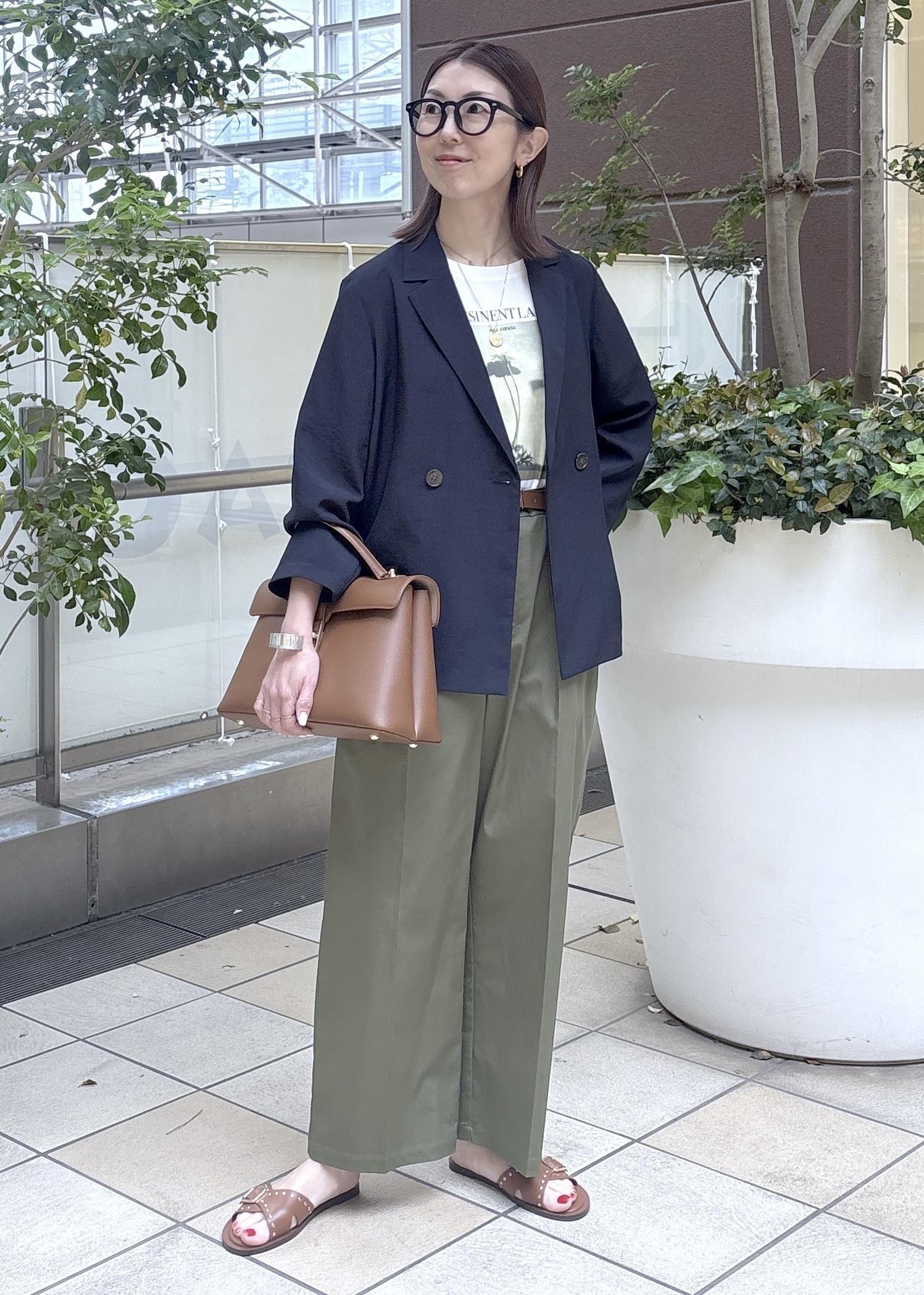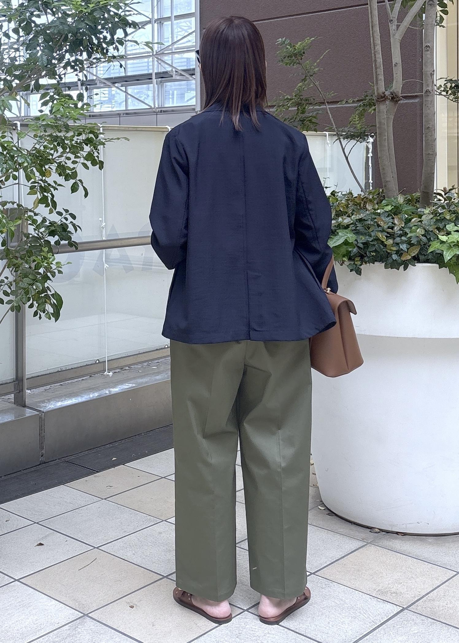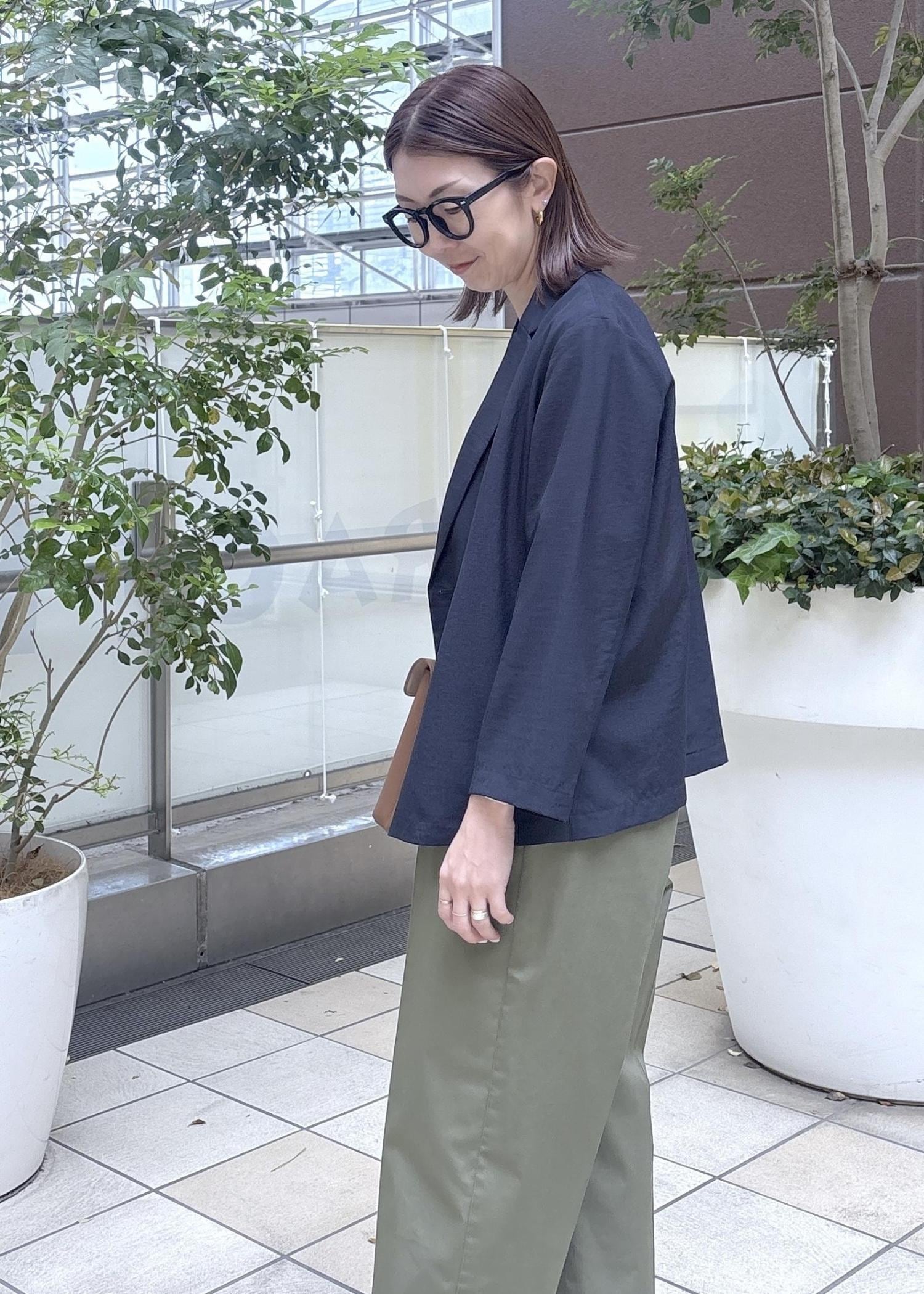 小柄のインフルエンサーcahoさんコラボのジャケットコーデ。