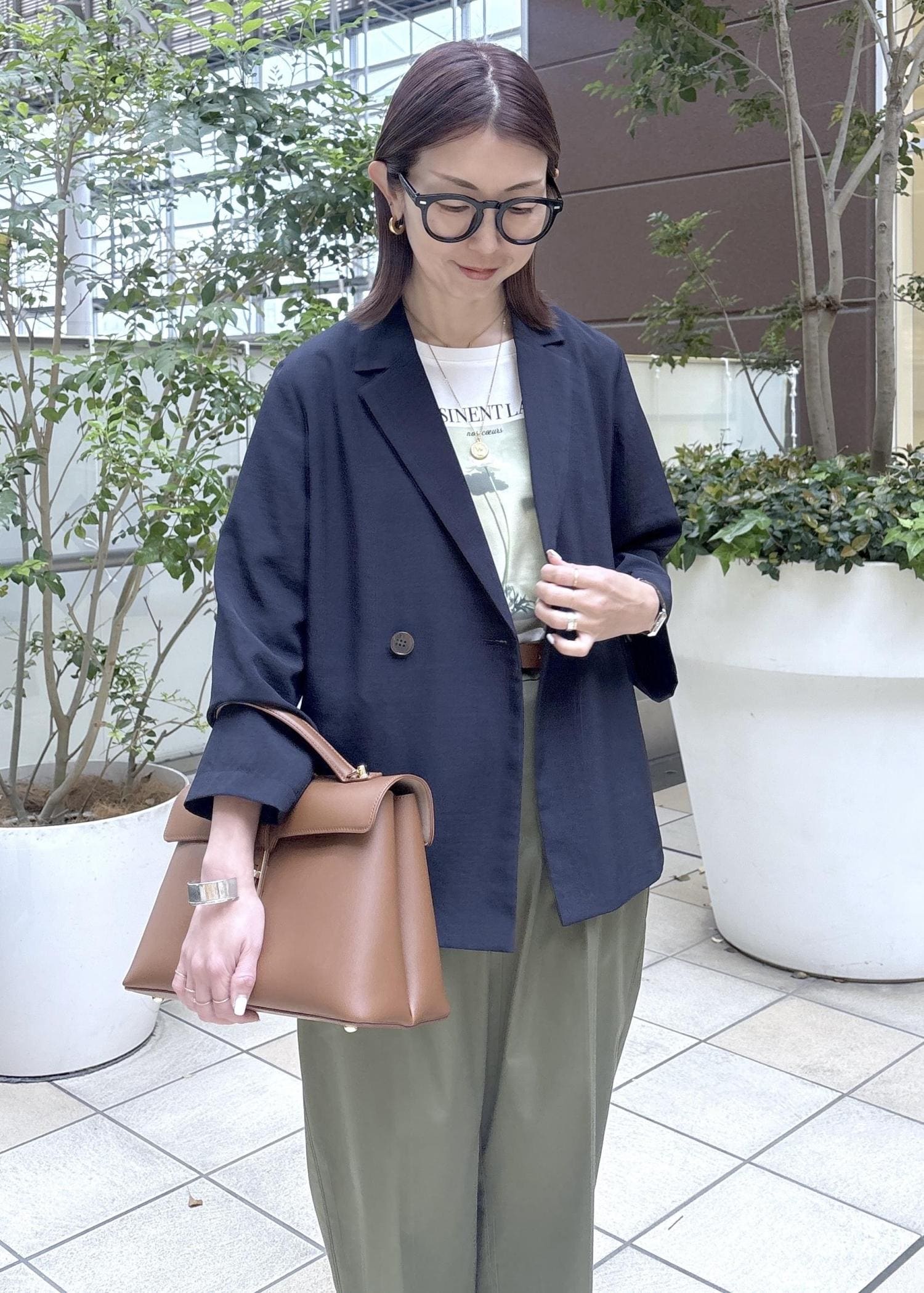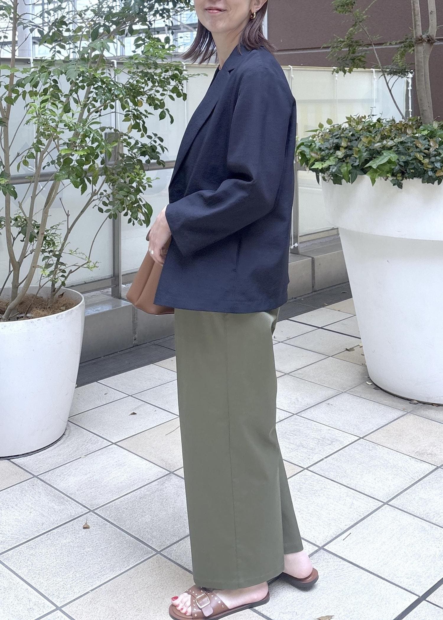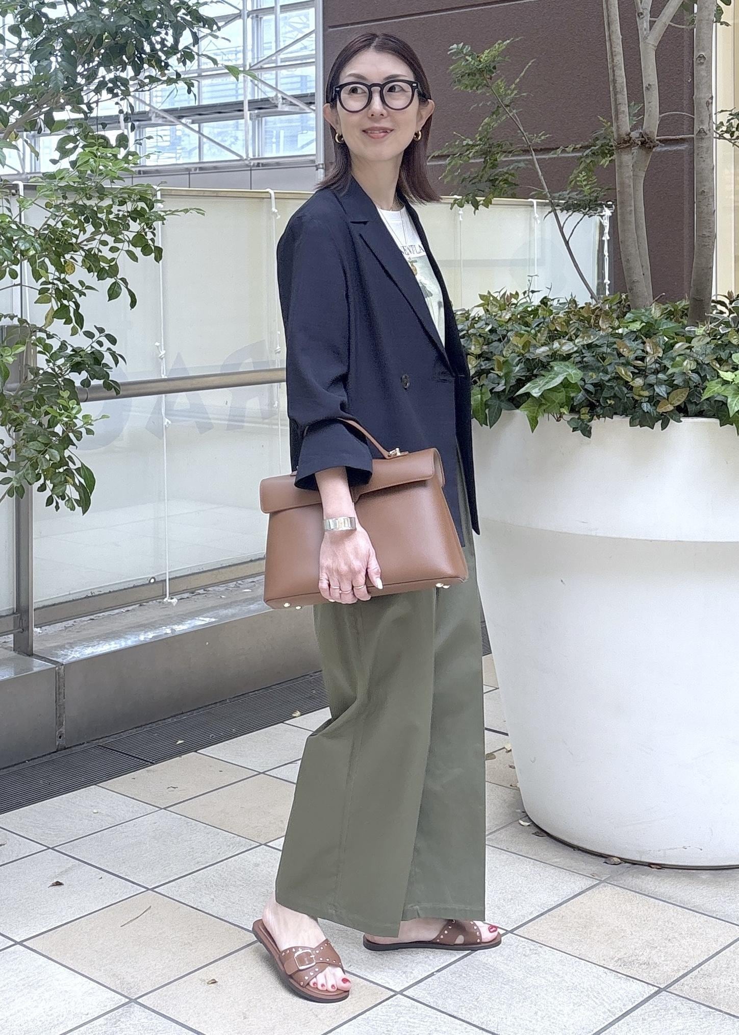 小柄のインフルエンサーcahoさんコラボのジャケットコーデ。