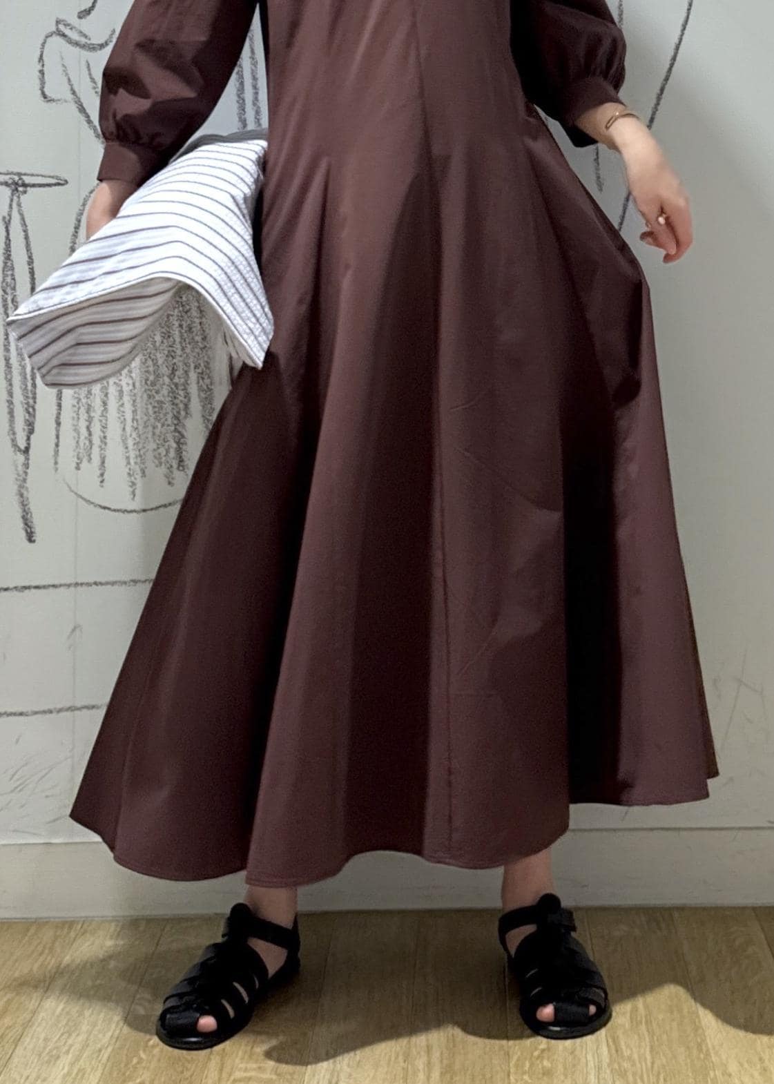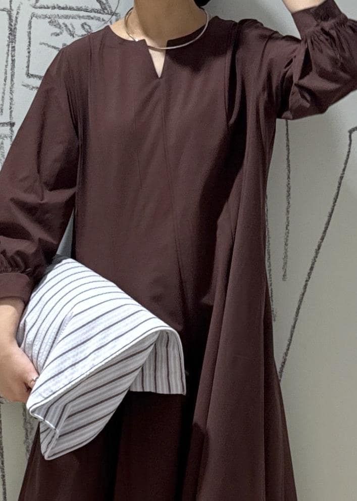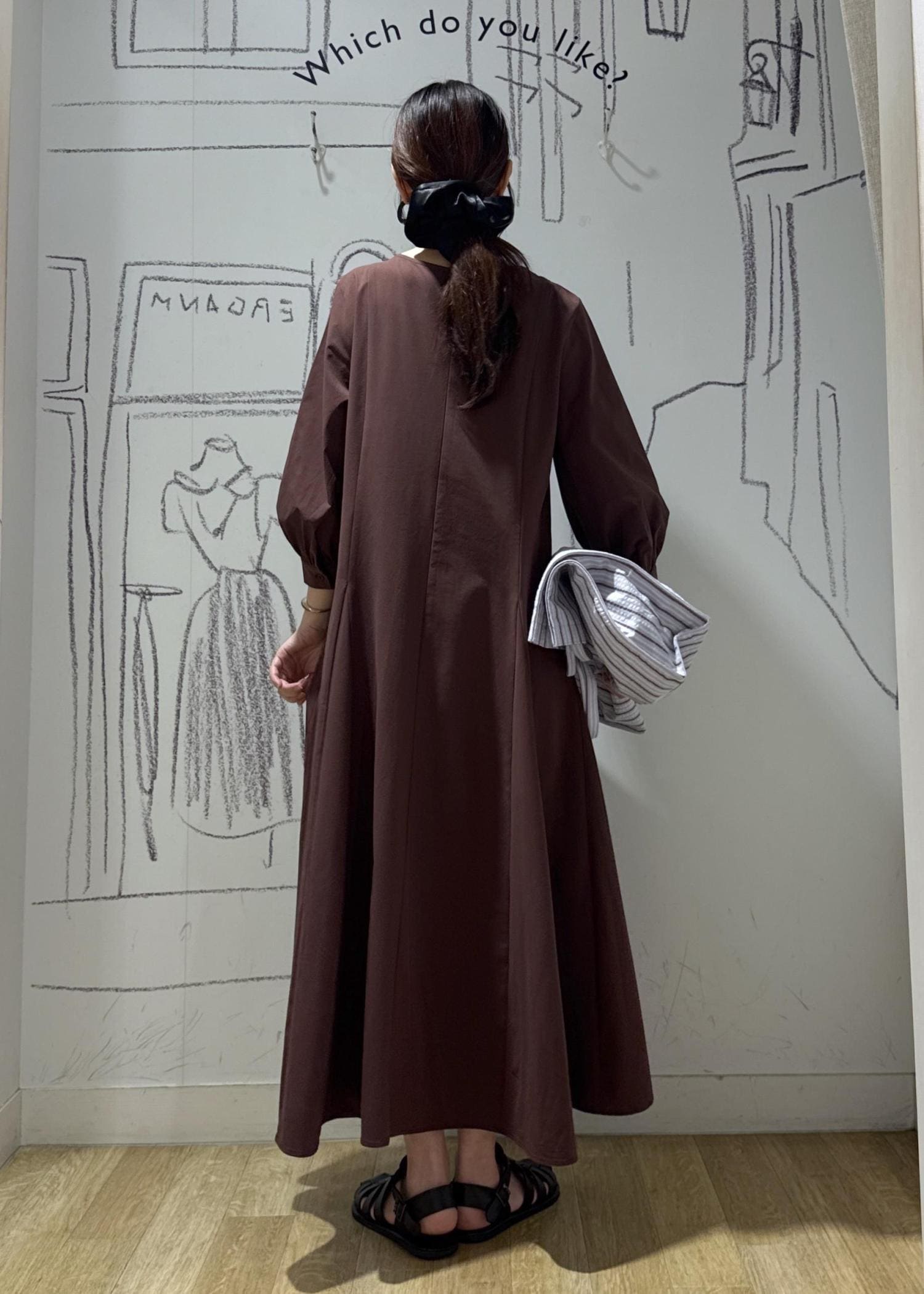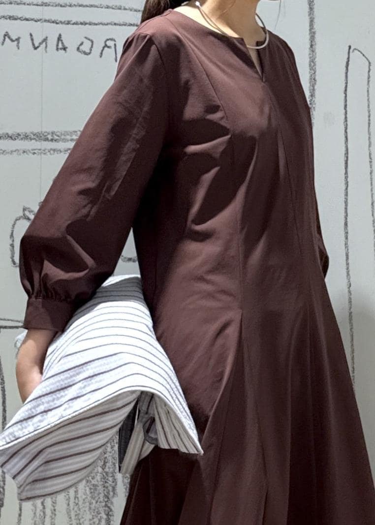 ROPÉ PICNIC7分袖リラックスワンピースダークブラウン / F¥7,491レビュー微ストレッチを感じる生地で締め付け感はありません。スカート部分は大きく広がるフレアシルエットで華やぎがあります。重く見えないようキーネックデザインや7分袖で程よい肌見せがあるのも高ポイント◎