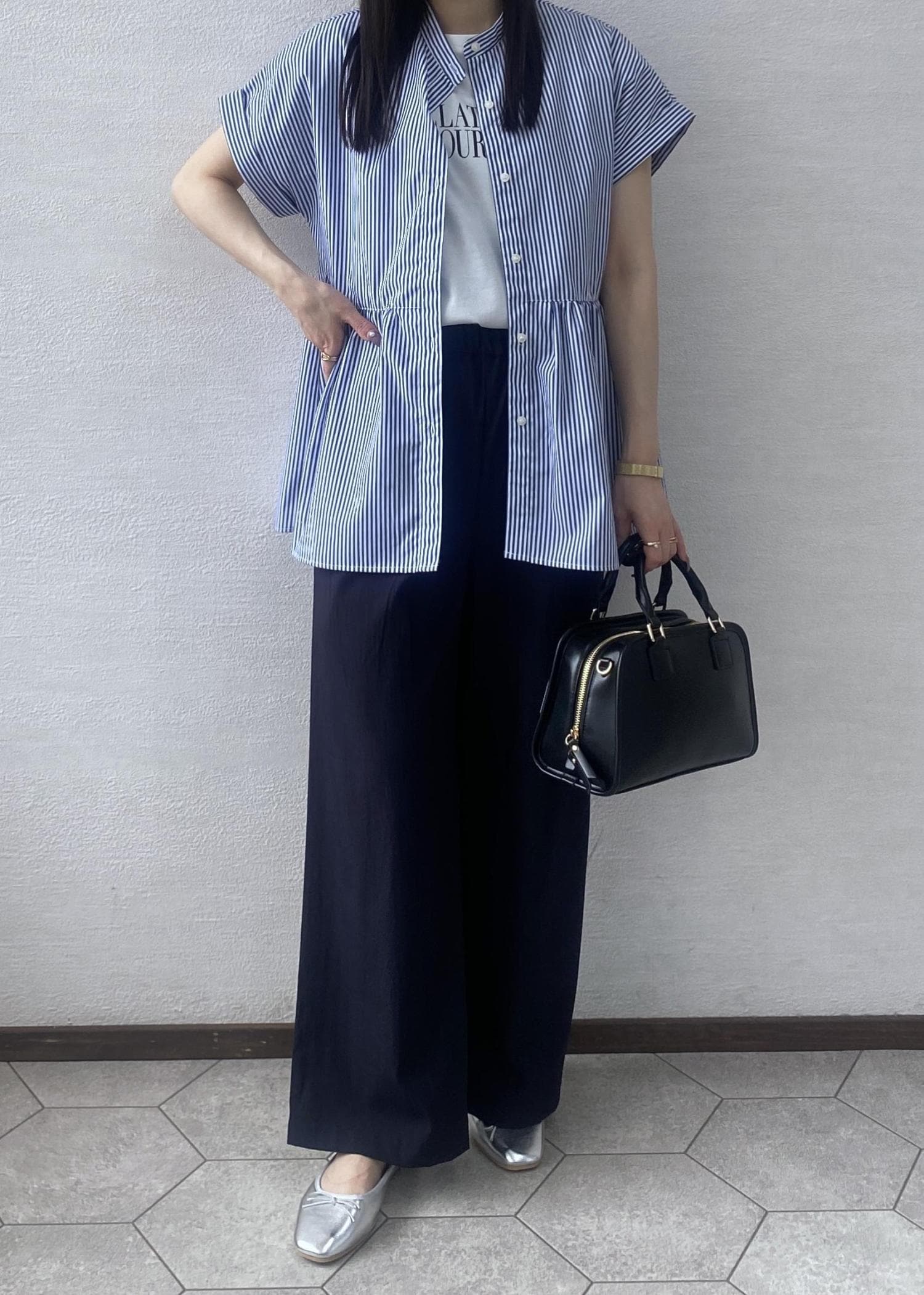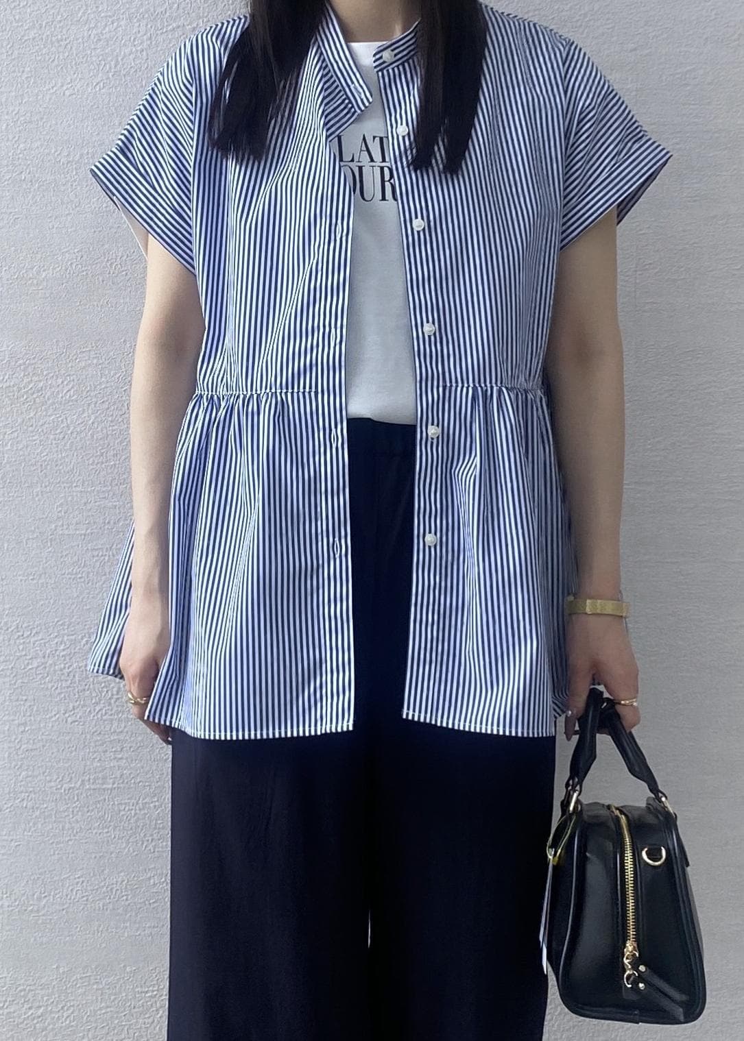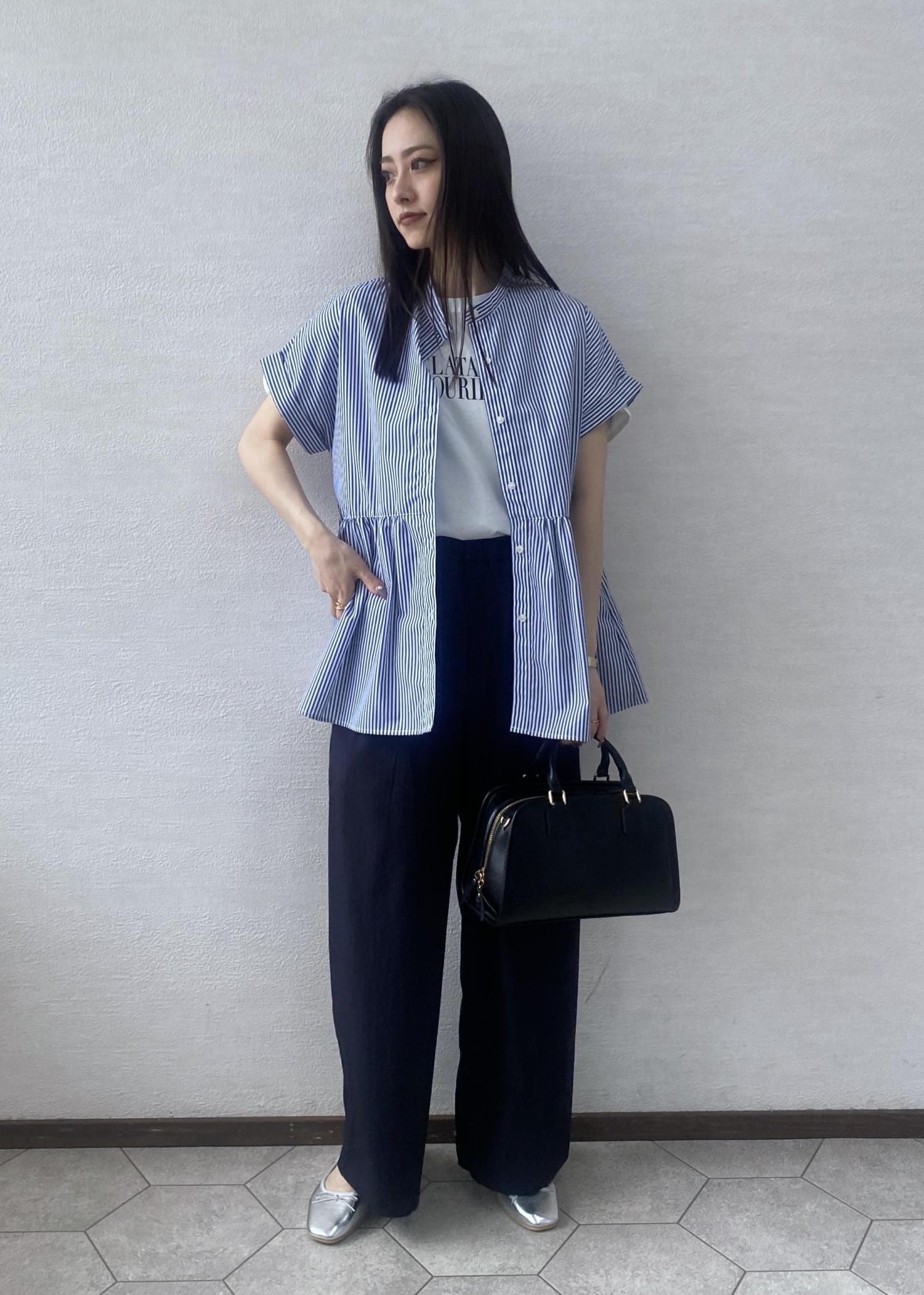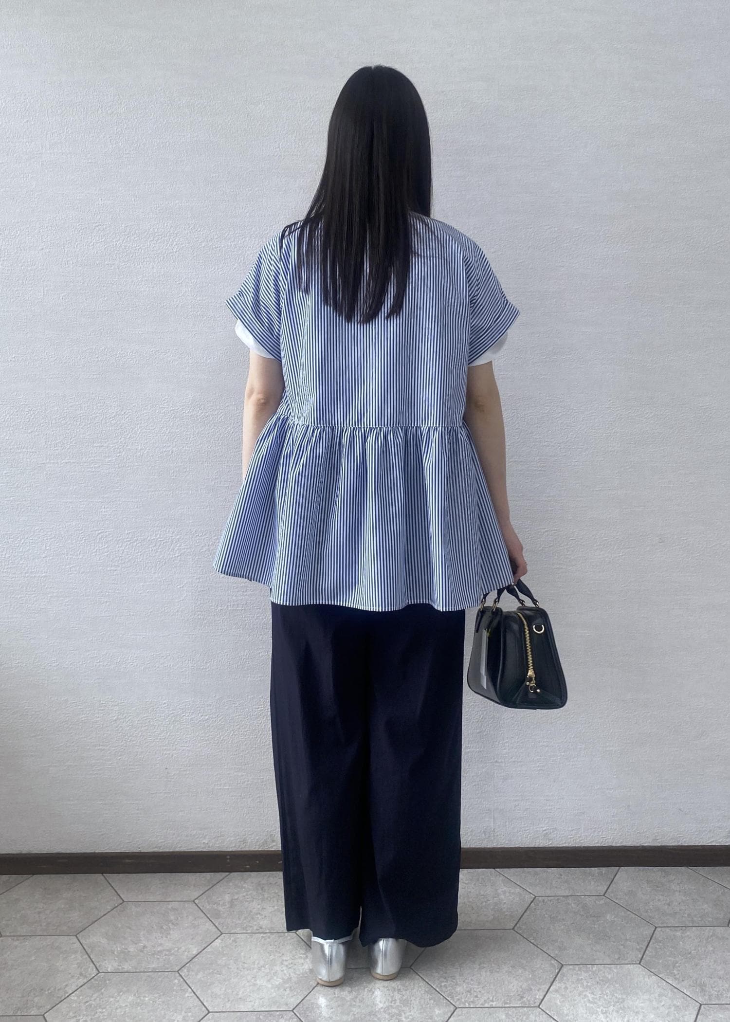 ROPÉ PICNICフレンチペプラムシャツ/UVカット・防シワネイビー / F¥4,499レビューサラッとしていてハリ感のある素材感です。