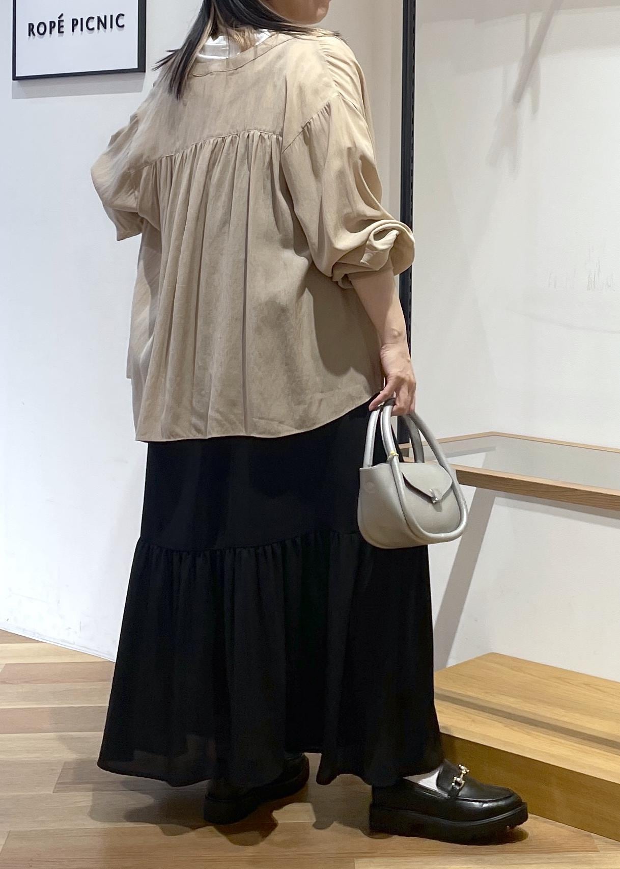 ROPÉ PICNIC布帛シアーカーディガンブラウスベージュ / F¥4,994レビューサラッとした着心地です。お袖はゆったりしておりストレスフリーで着用していただけます。袖口にはリブもついており袖まくりしていただくとふんわり可愛いです。