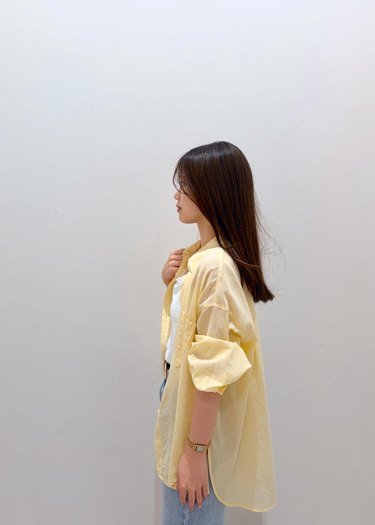 ROPÉ PICNICお着軽シャツシリーズ 無地・ストライプ 2WAYシアーブラウス/接触冷感・通気性イエロー / F¥4,499レビュー154cmでお尻が隠れる安心感のある着丈です。