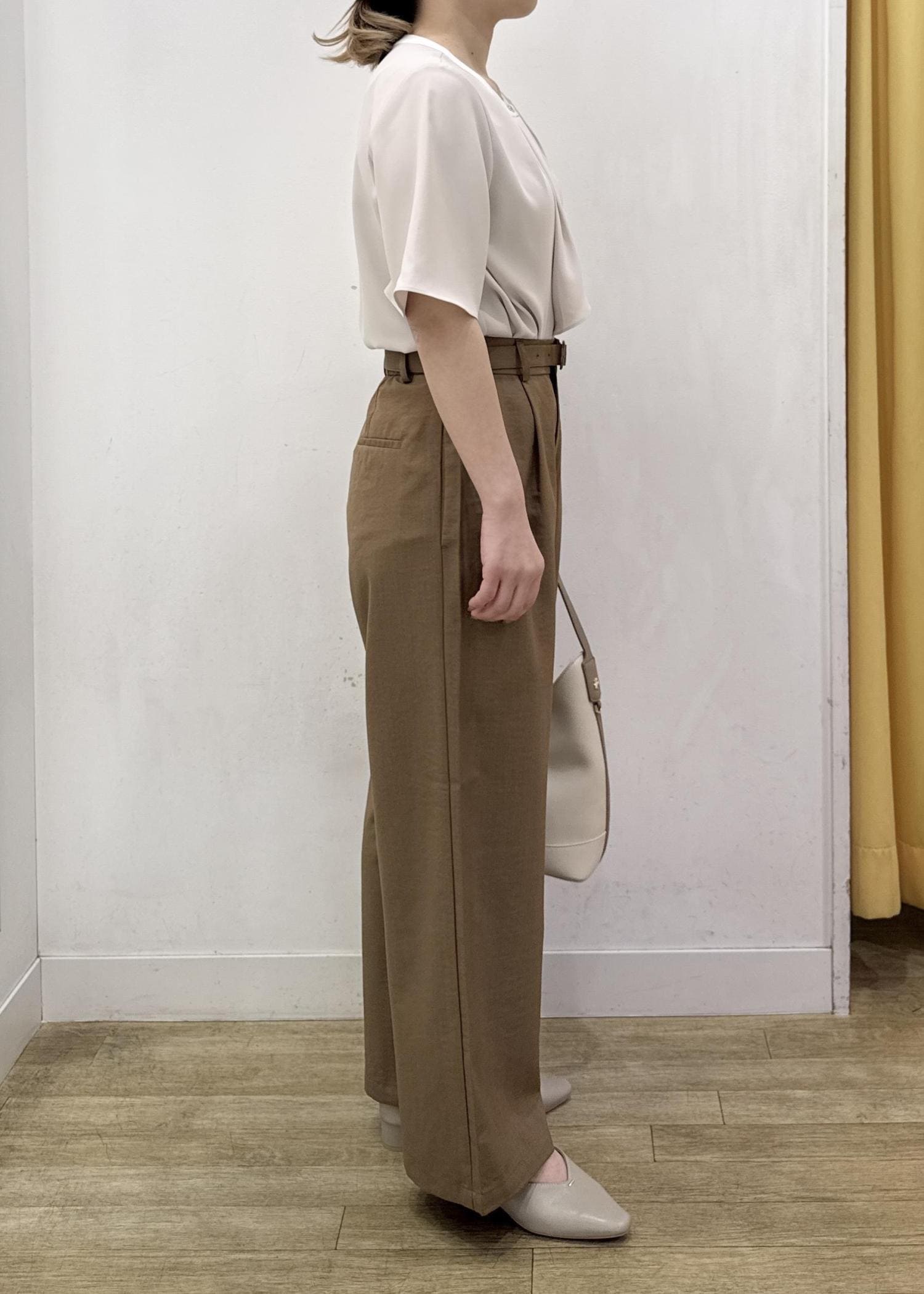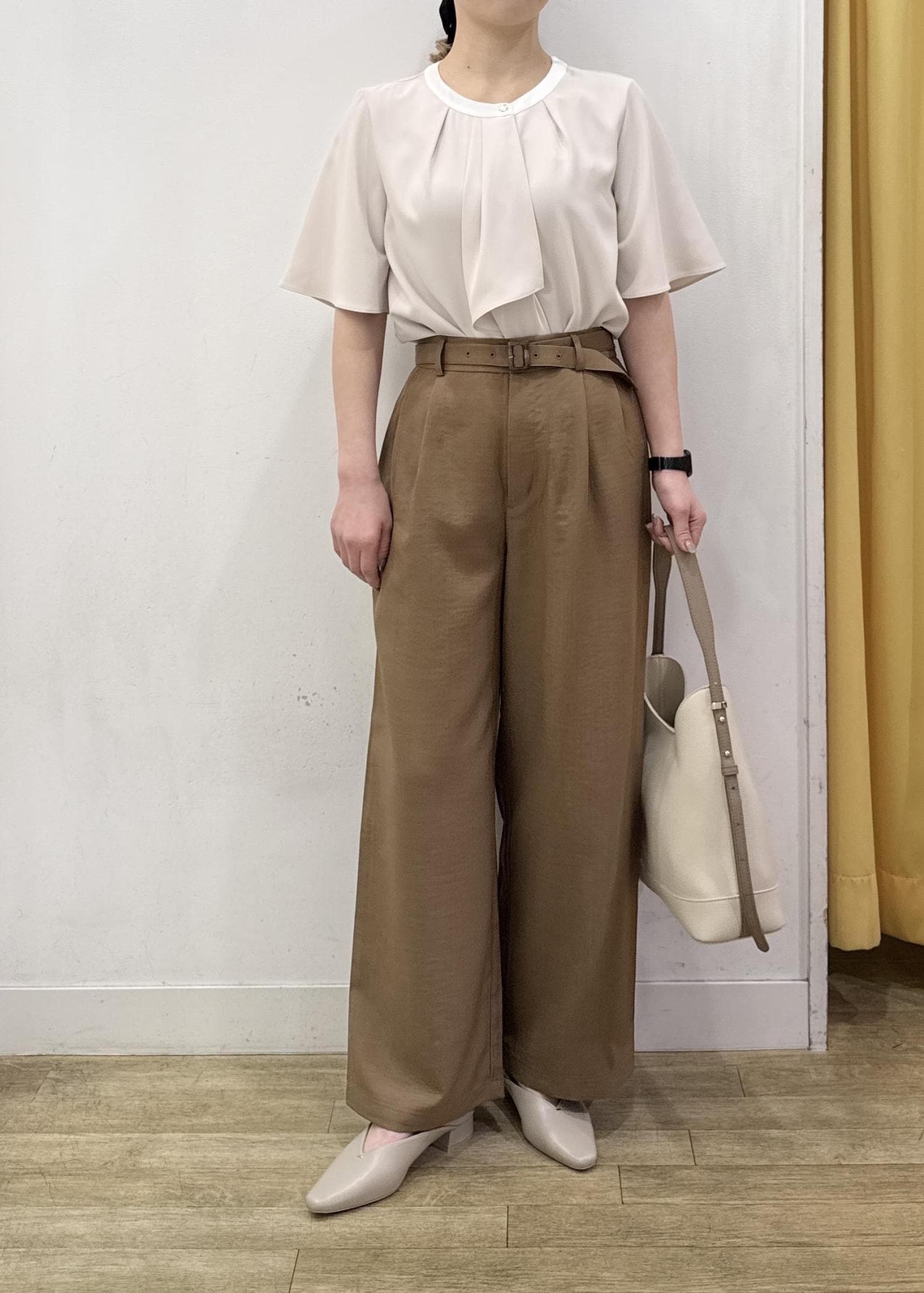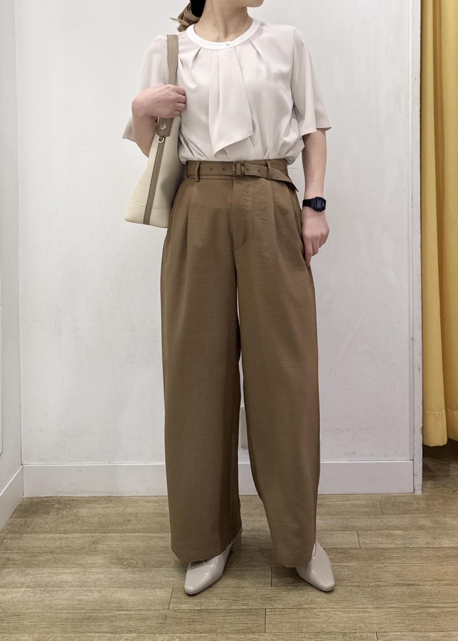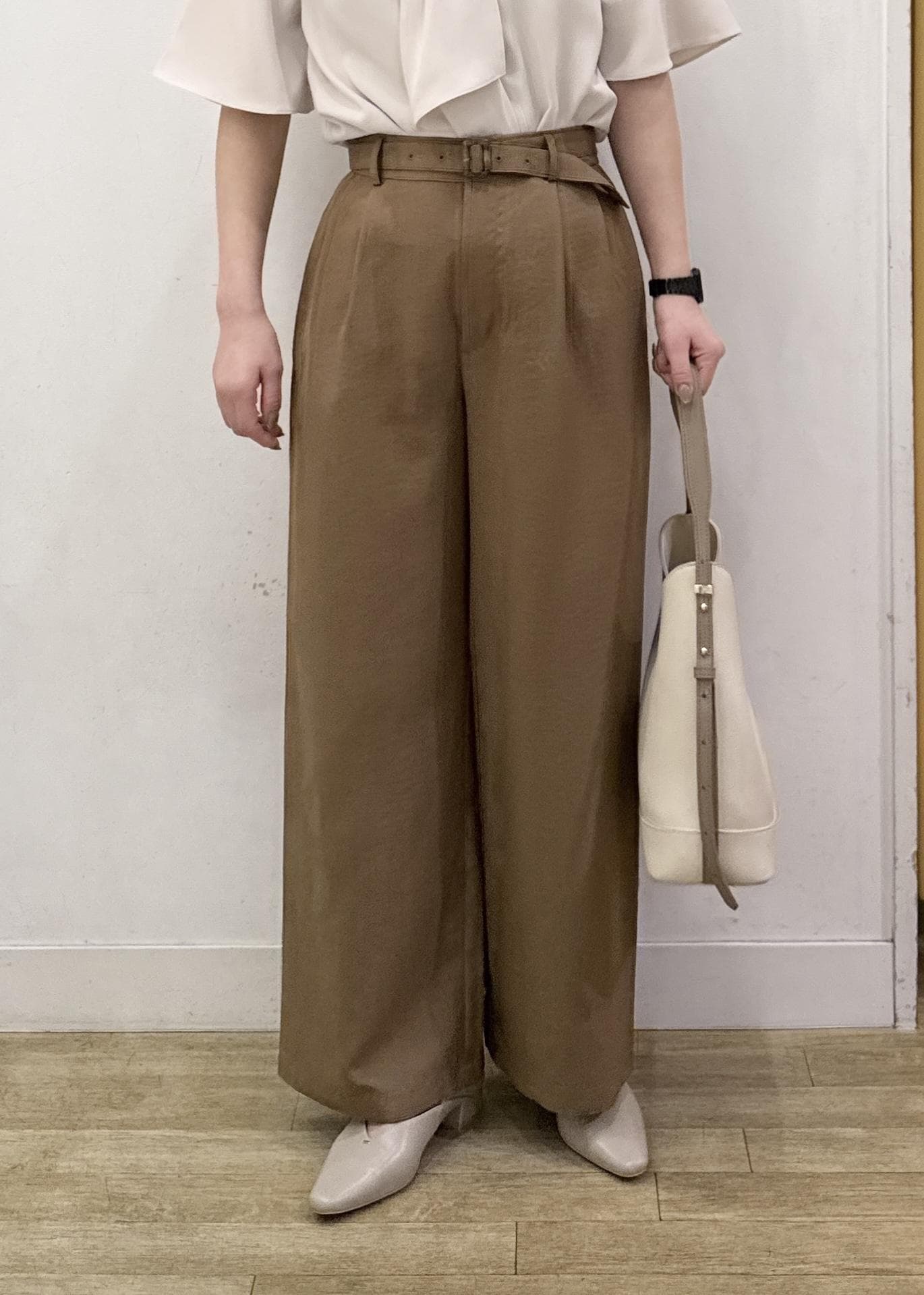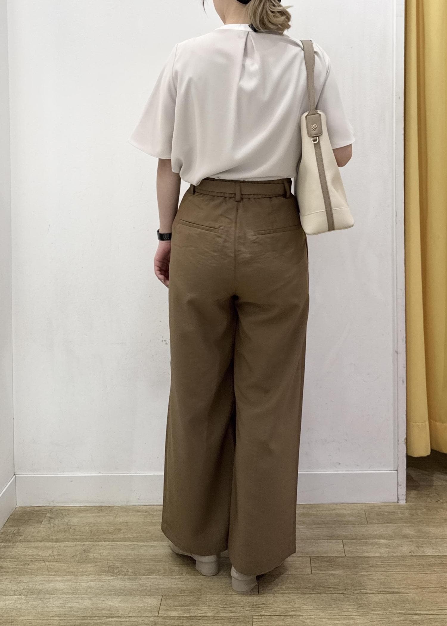 ROPÉ PICNICエアリーリネンライク タックワイドパンツ/UVカット・速乾キャメル / S¥5,995レビューSサイズてウエストジャストサイズ。
