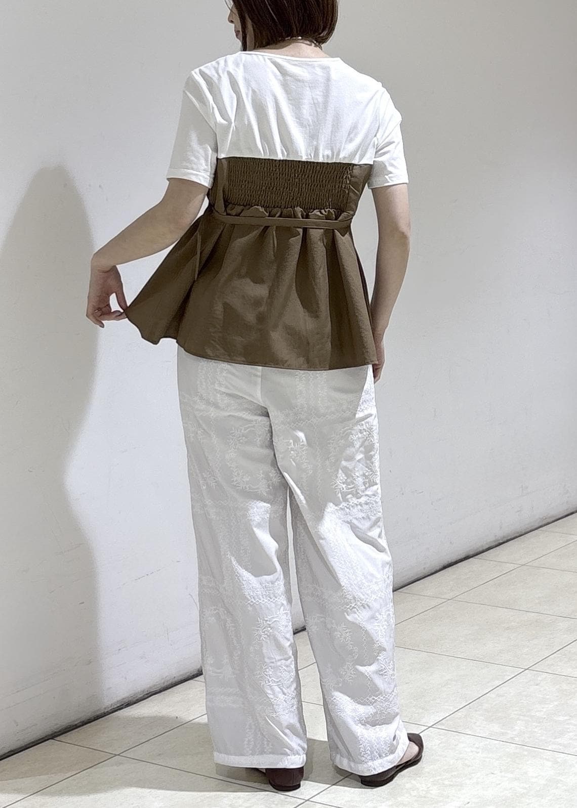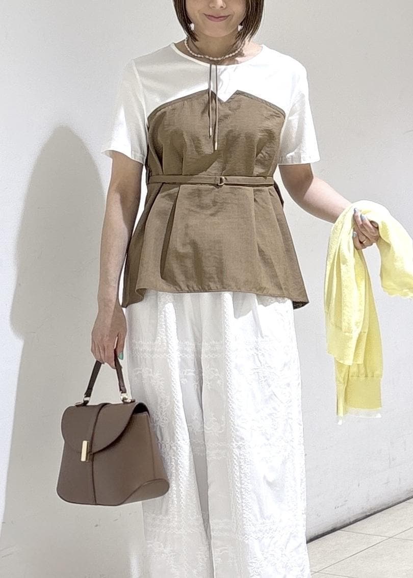 着丈は腰がしっかり隠れる長さです。ウエスト切替でスタイルアップしてくれるトップスです。 -