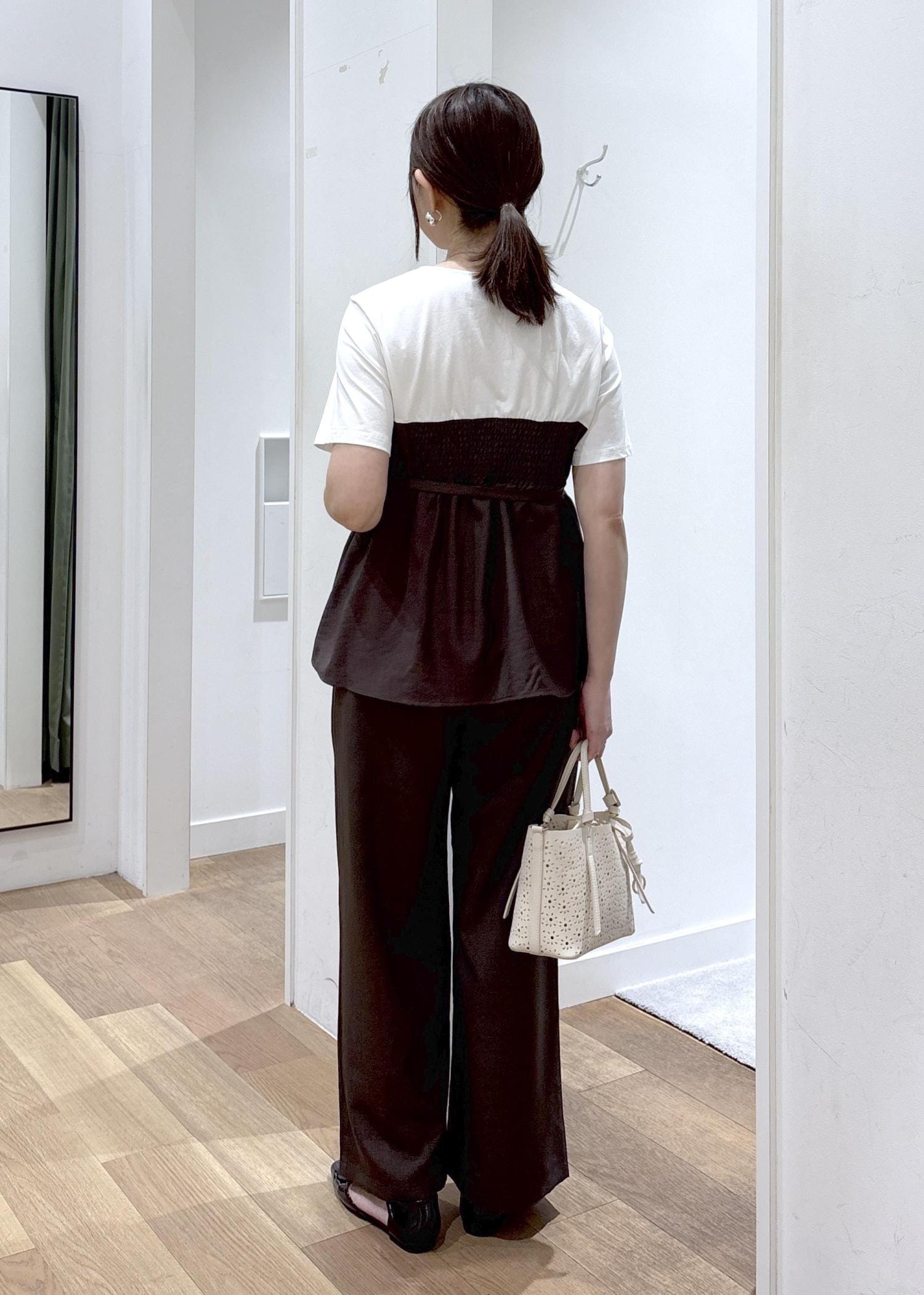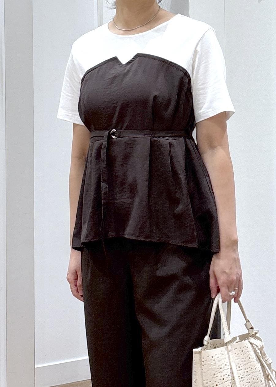 カットソー+リネンライク素材の