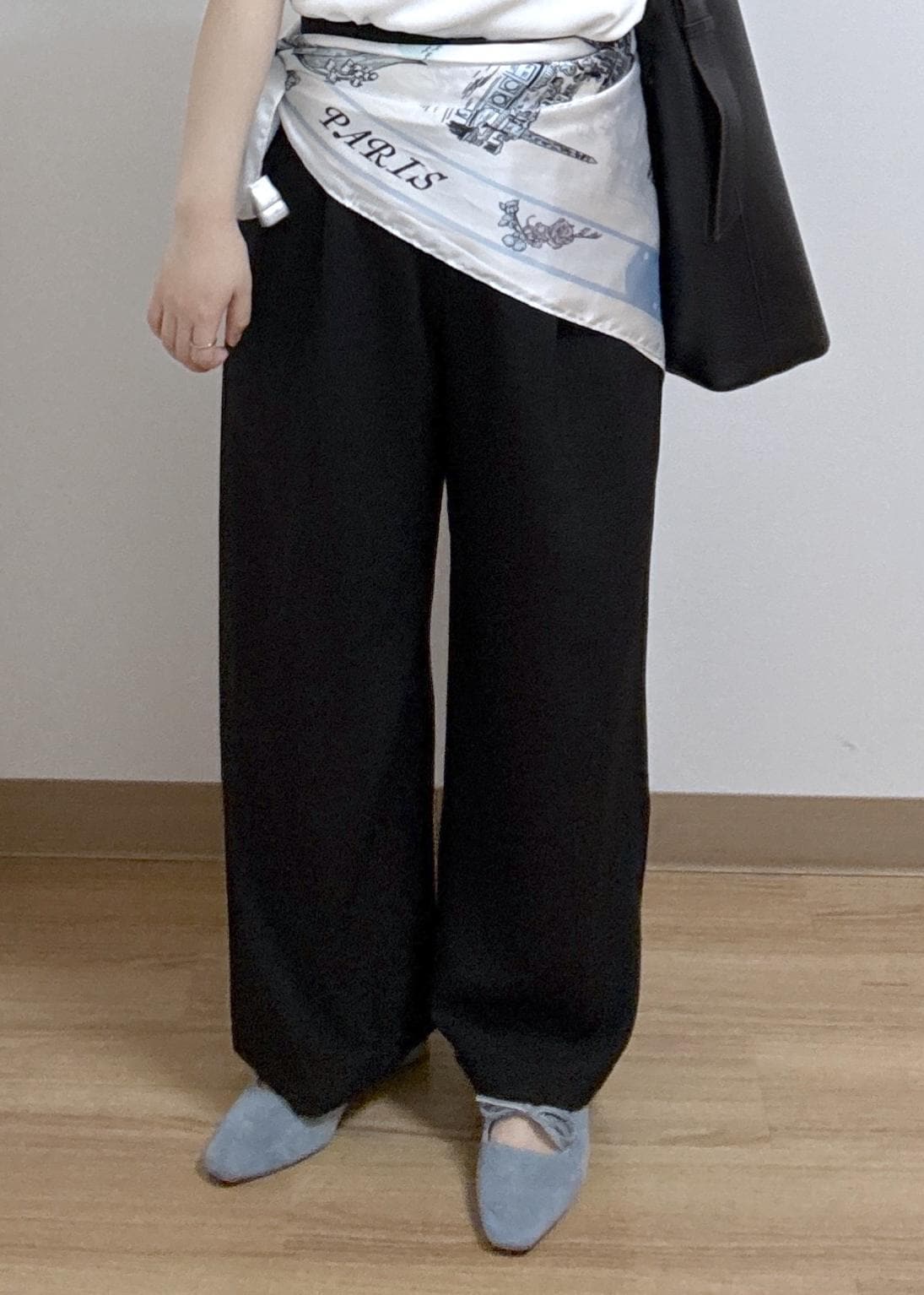 NEW! 予約ROPÉ PICNIC【cahoさんコラボ】低身長・小柄さんサイズ エアリーリネンライク タックワイドパンツブラック / S¥5,995レビュー着丈は143cm/Sサイズ着用でも引きずりませんでした!丈が長すぎないのでローヒールの靴にも合わせやすいです◎着心地はさらっとしていて快適でした!