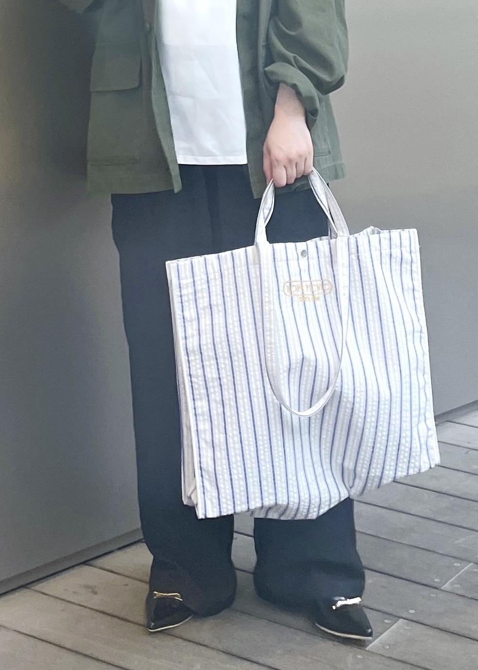 ROPÉ PICNIC PASSAGEストライプビッグトートバッグ/2WAY・A4対応ベージュ系 / F¥3,993レビュー配色の可愛い大きいトートバッグです。全色重たくないカラーなので持っていてもスタイリングの邪魔になりません。