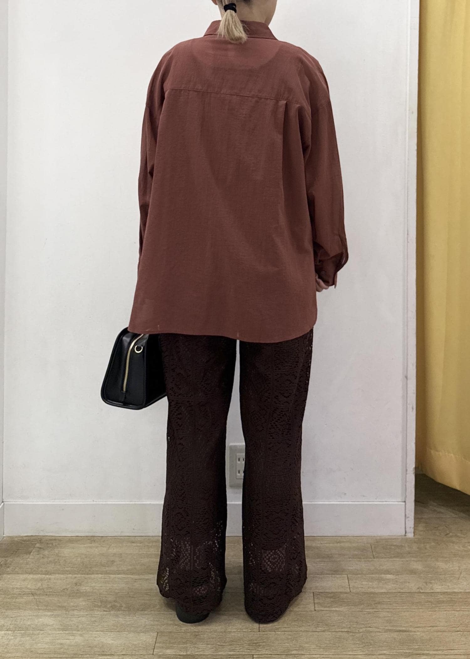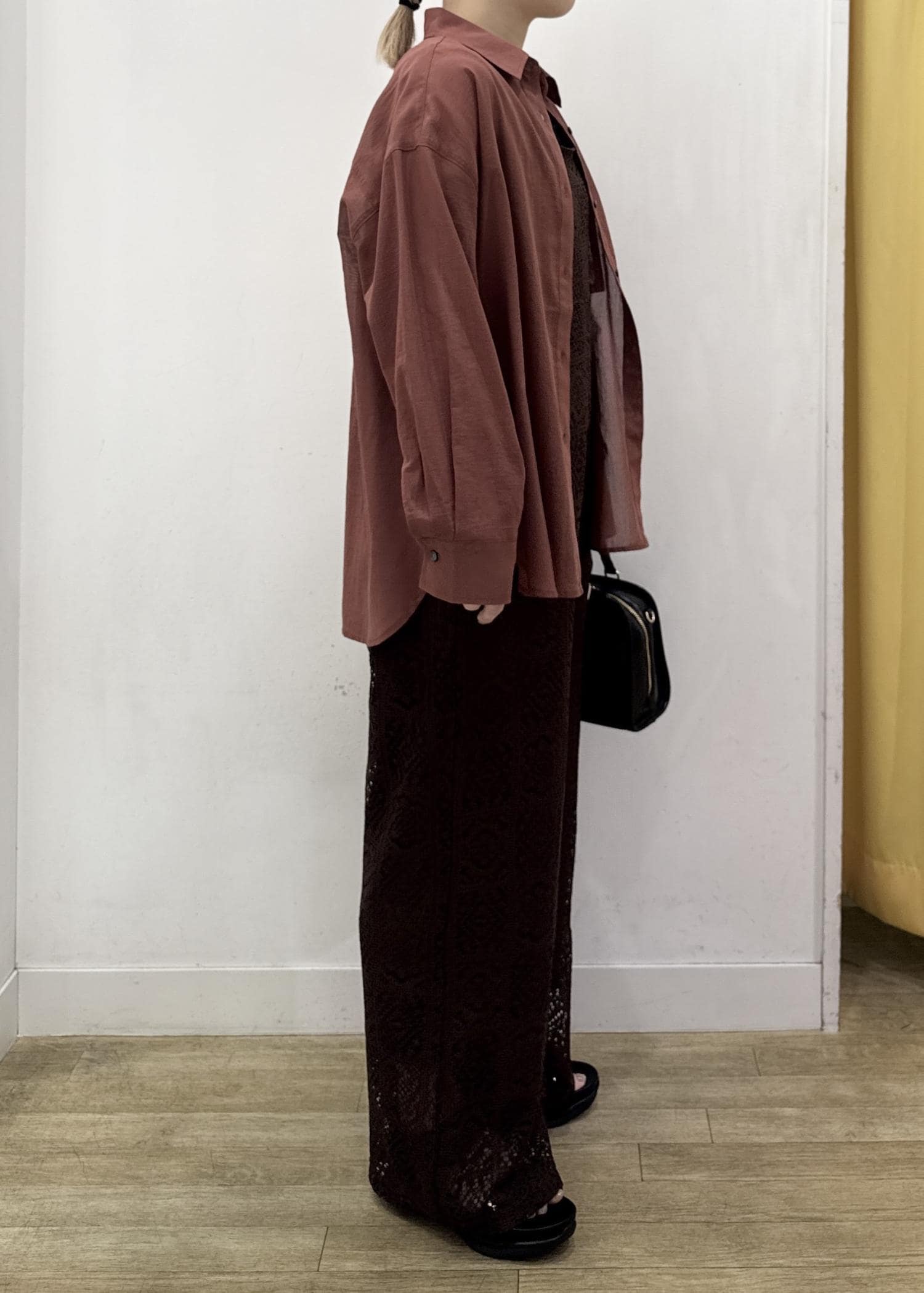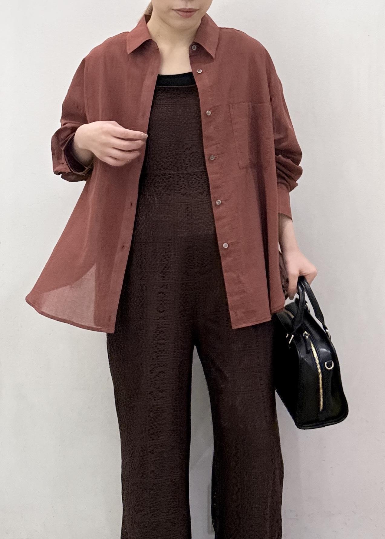 透け感のある少し薄手の素材感なのでインナー合わせは必須!