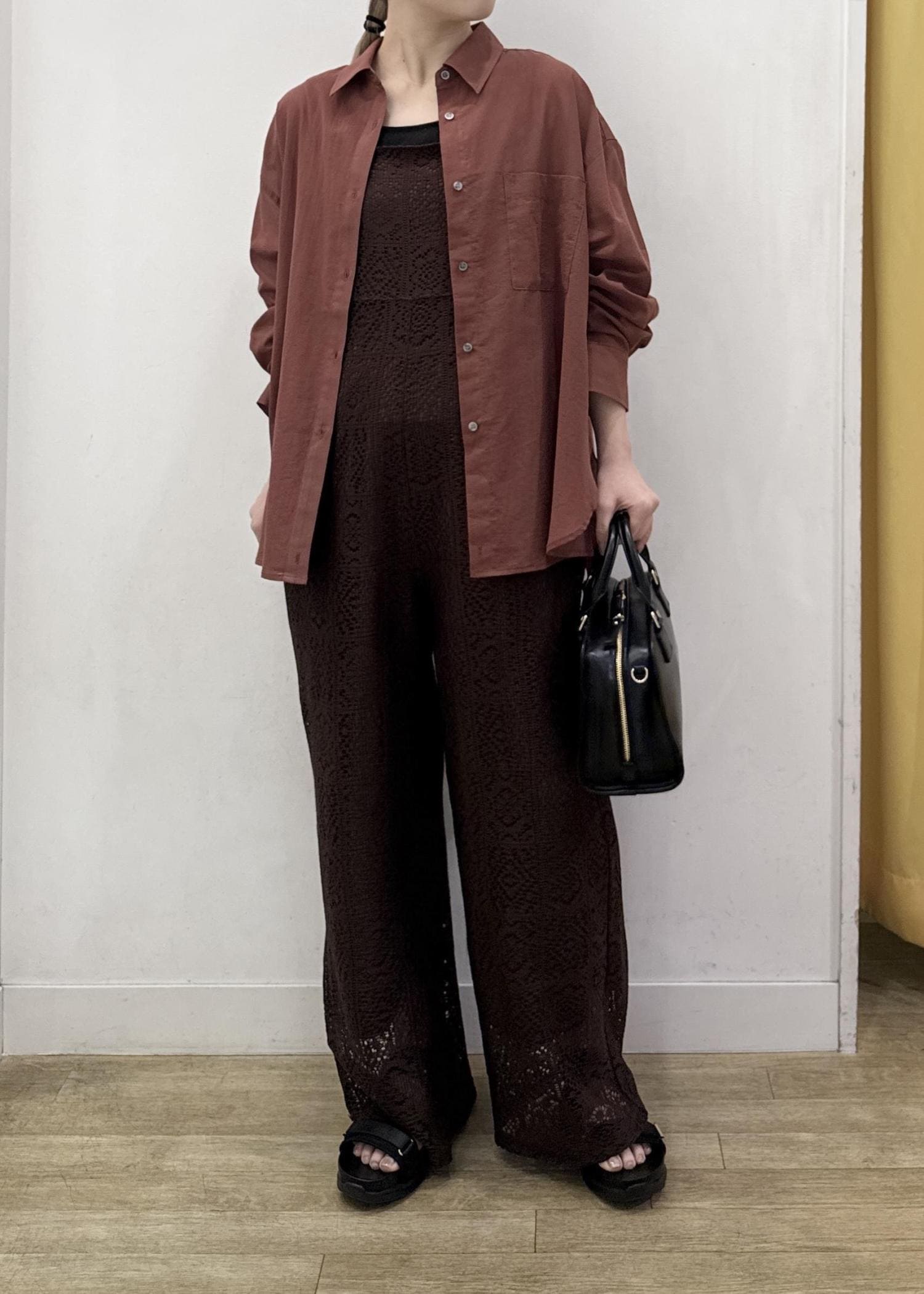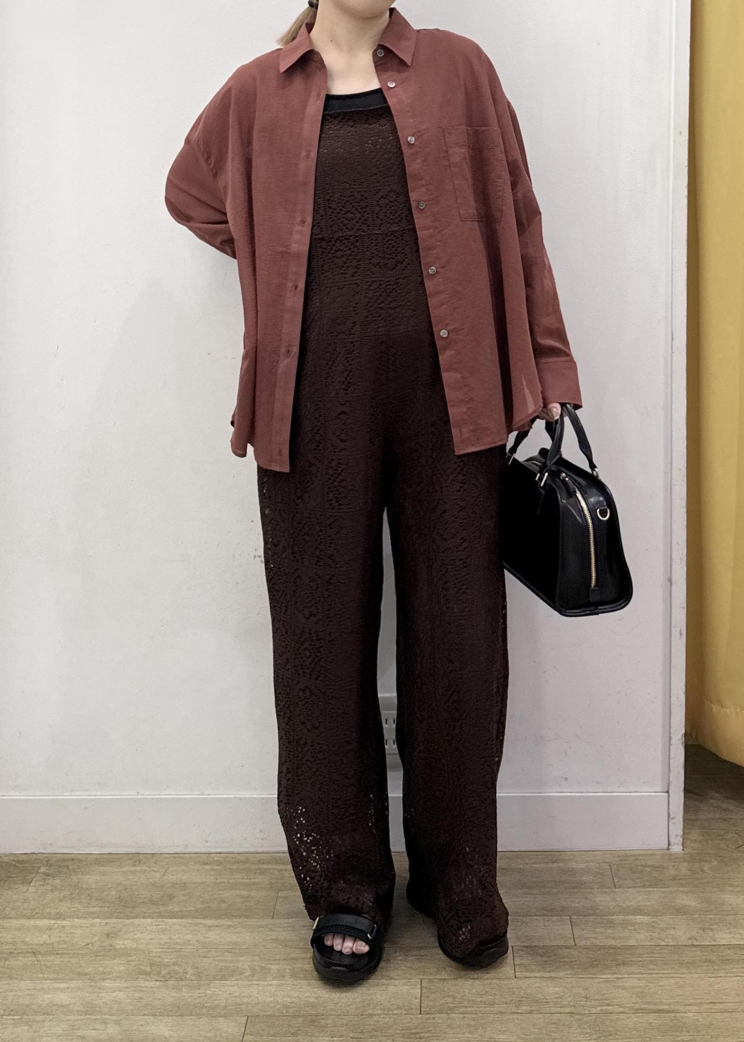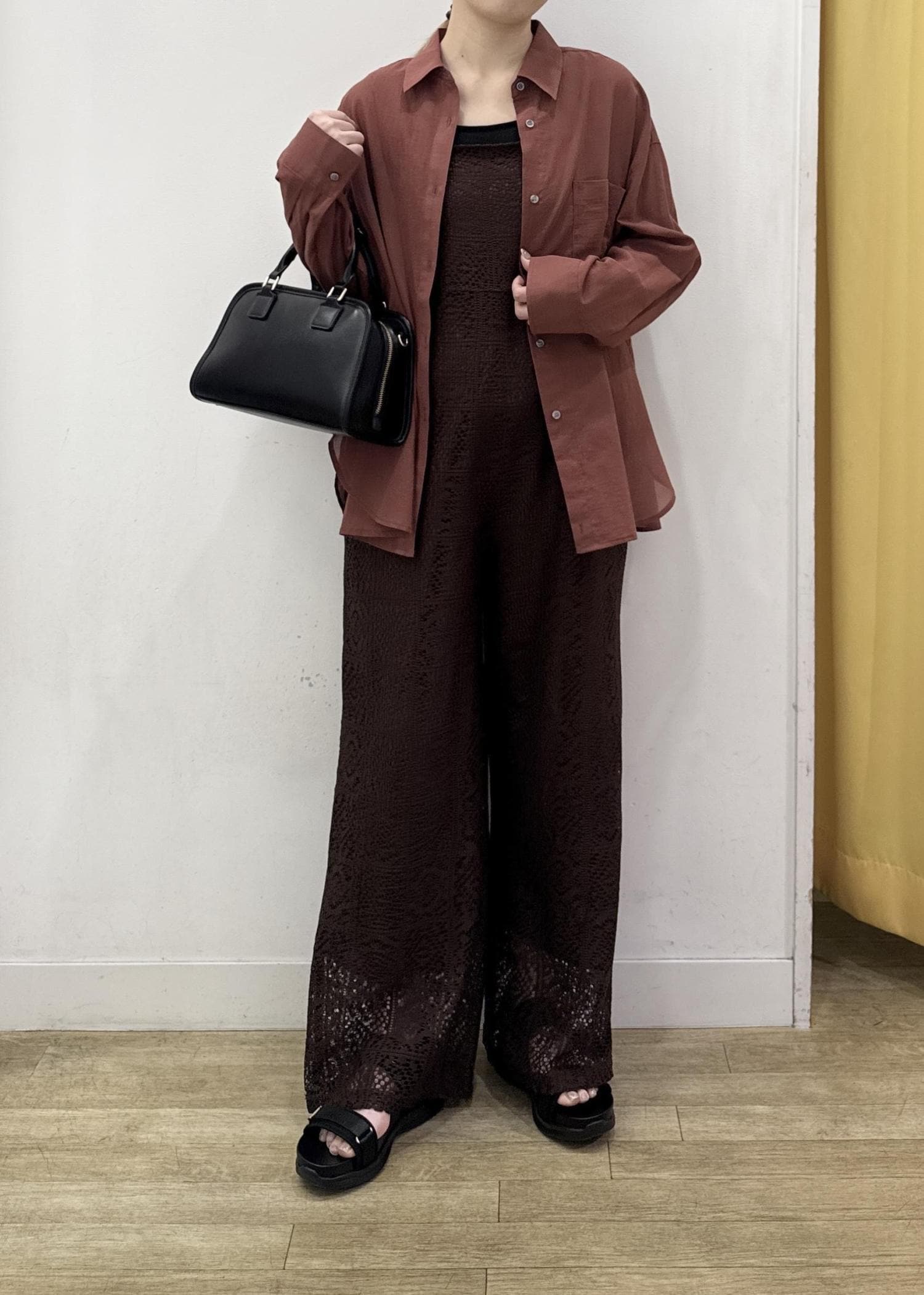 透け感のある少し薄手の素材感なのでインナー合わせは必須!