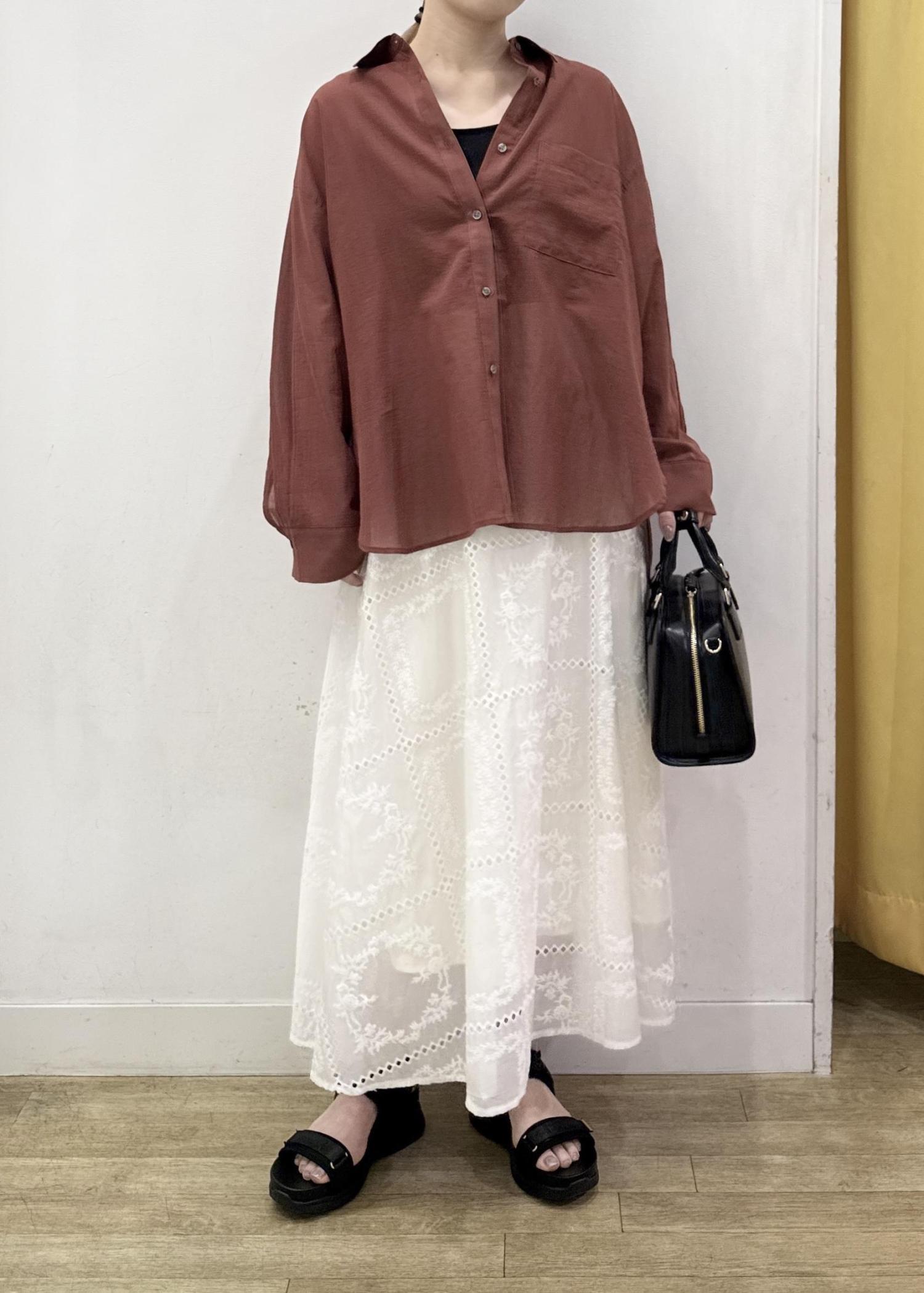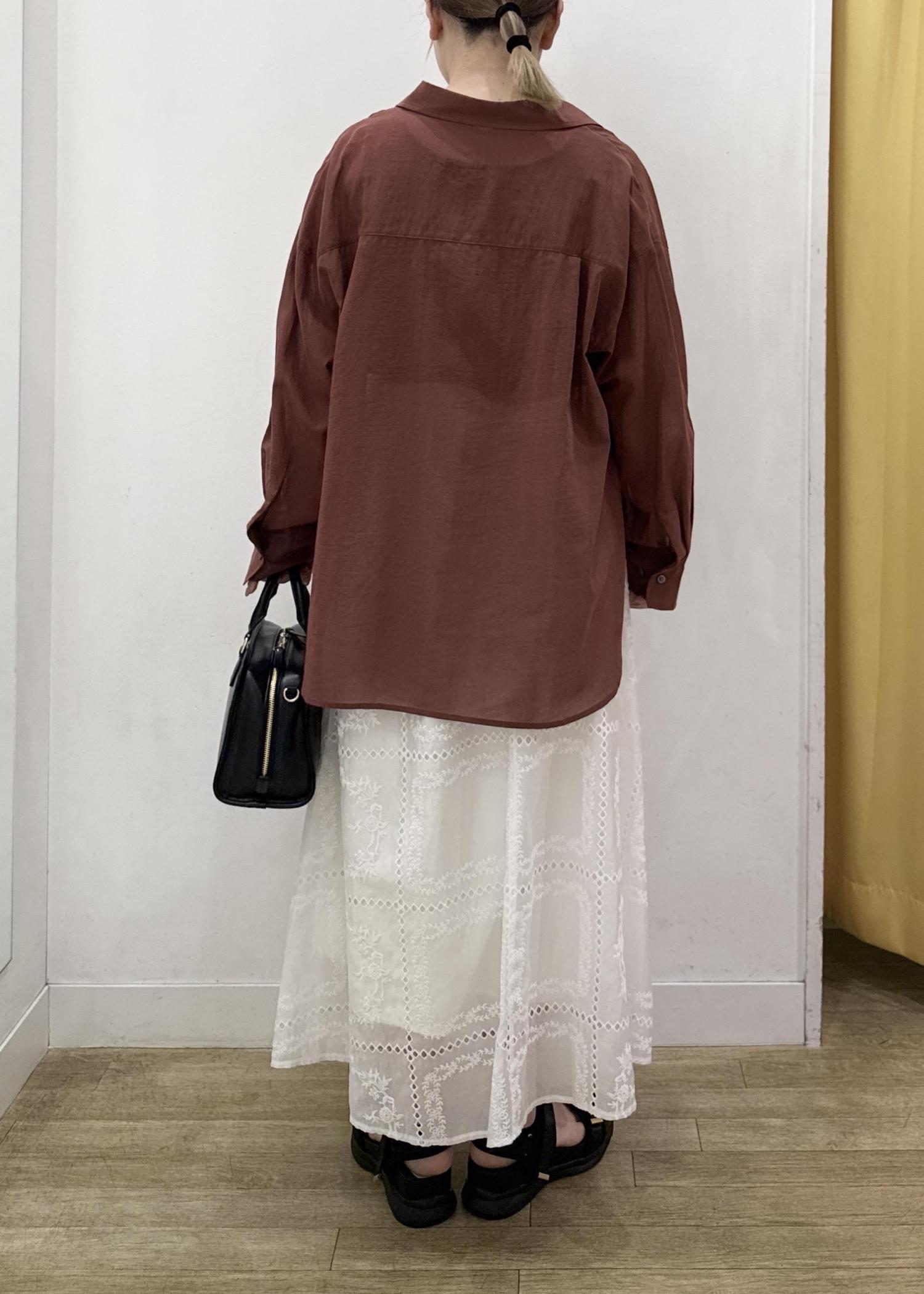 透け感のある少し薄手の素材感なのでインナー合わせは必須!