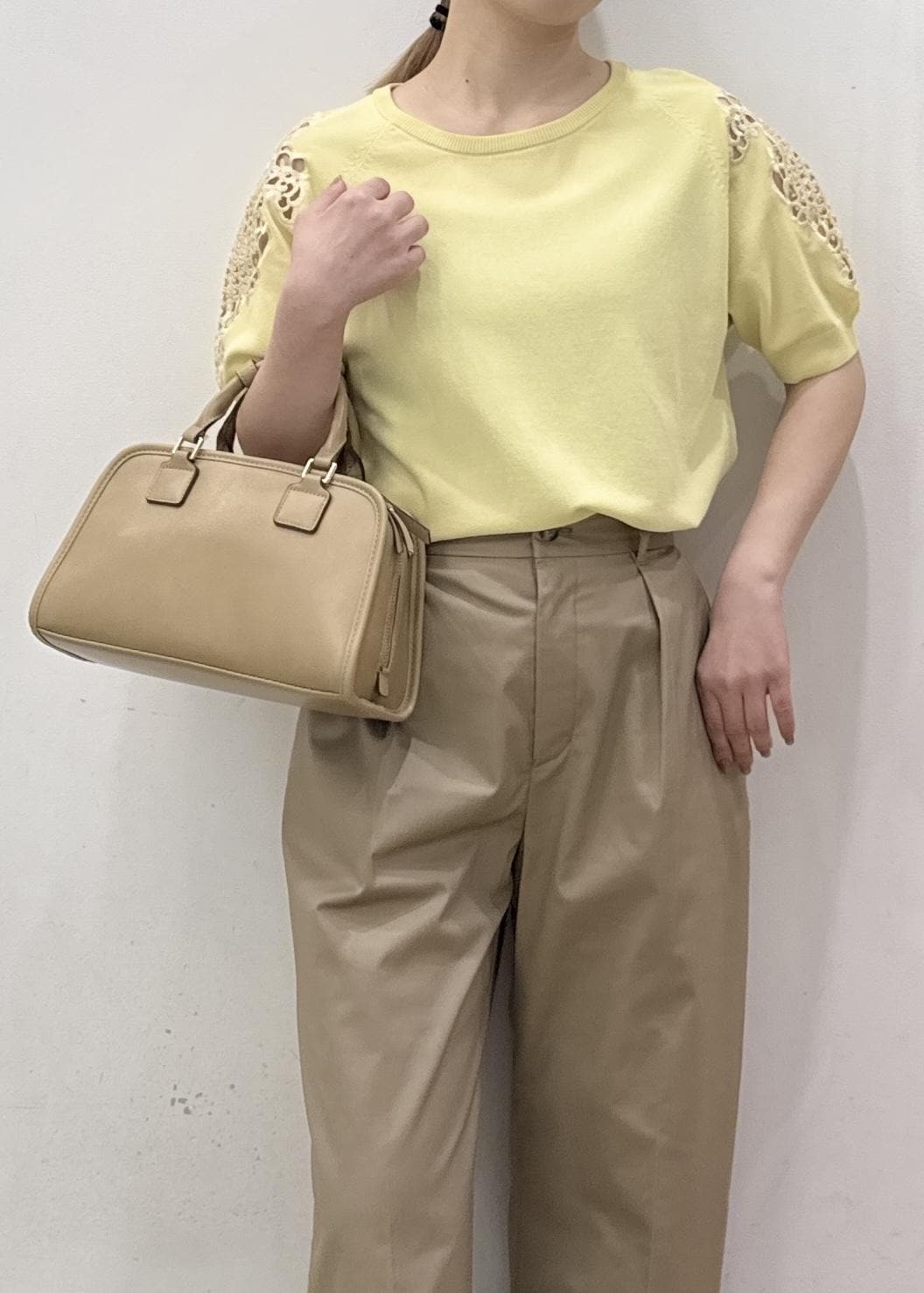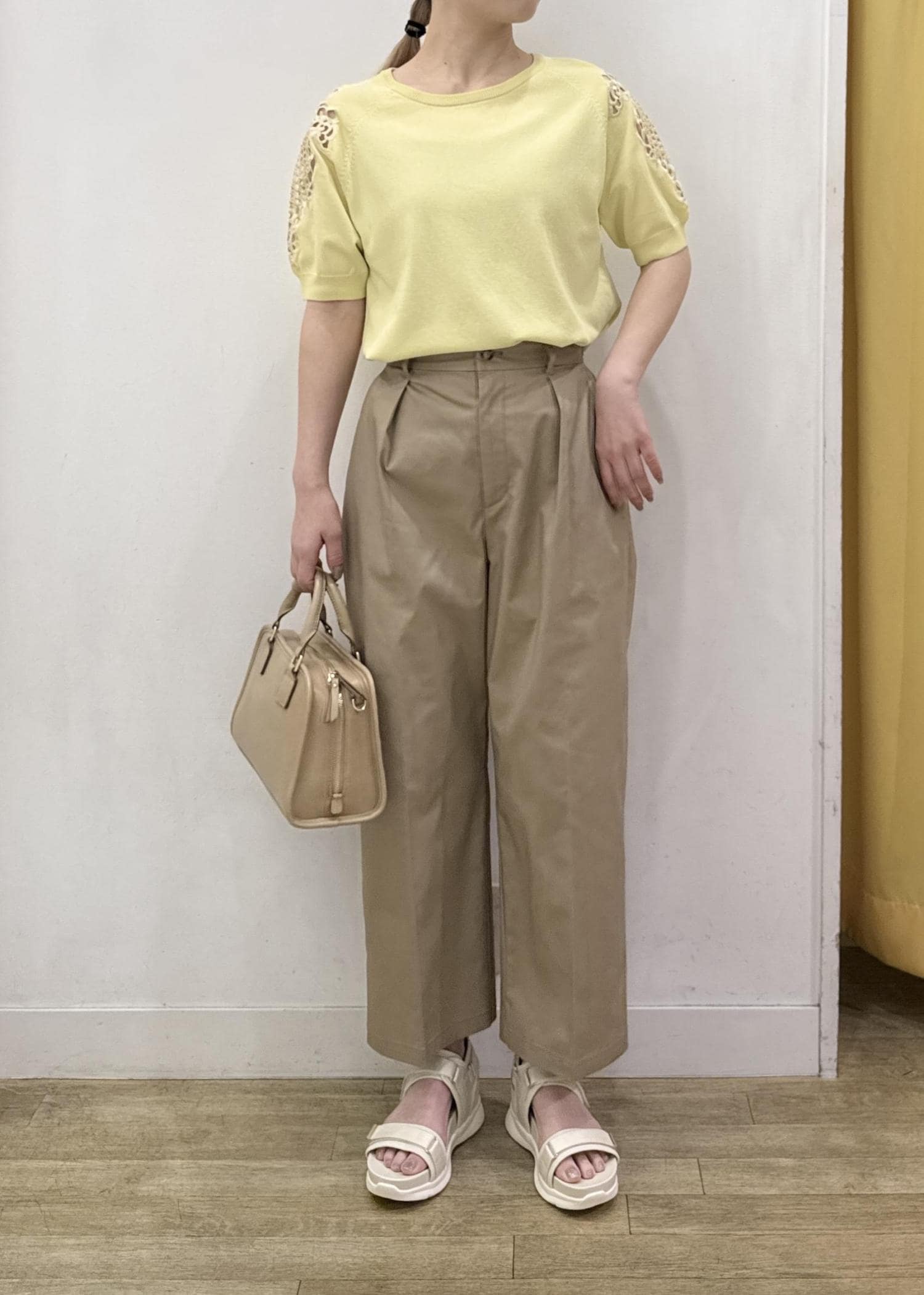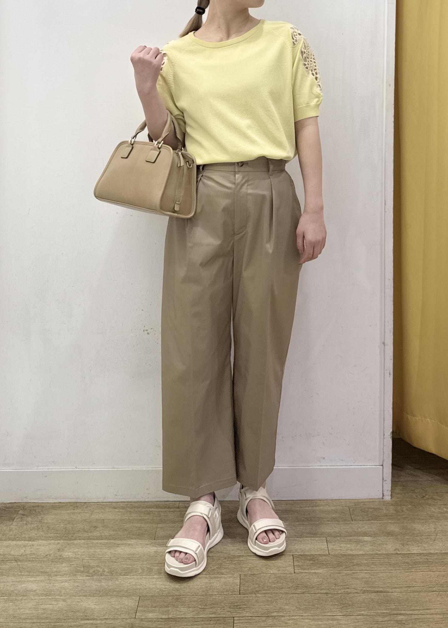 少しハリ感のある素材で、脚のラインを拾わず穿けるシルエットでした。 -