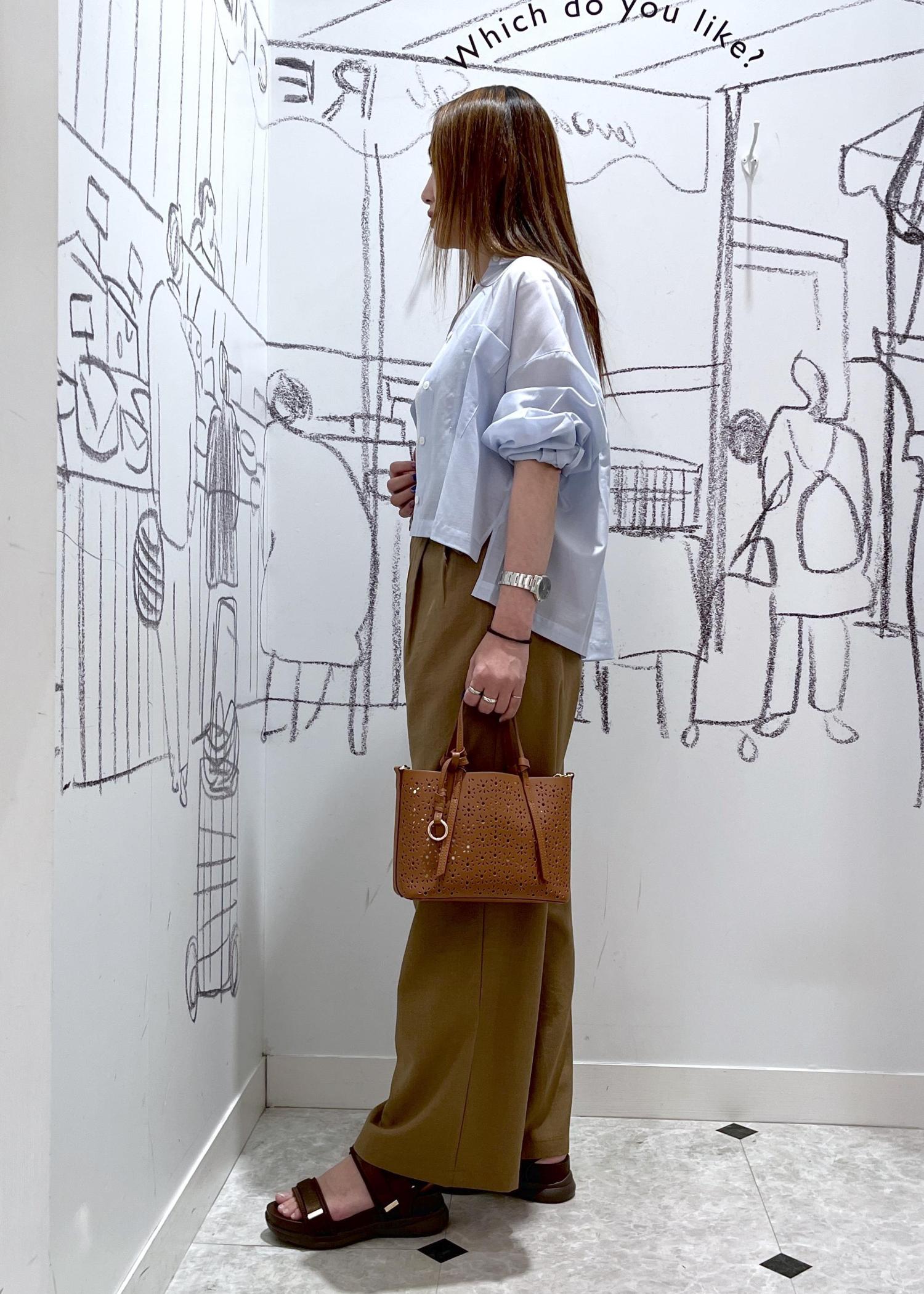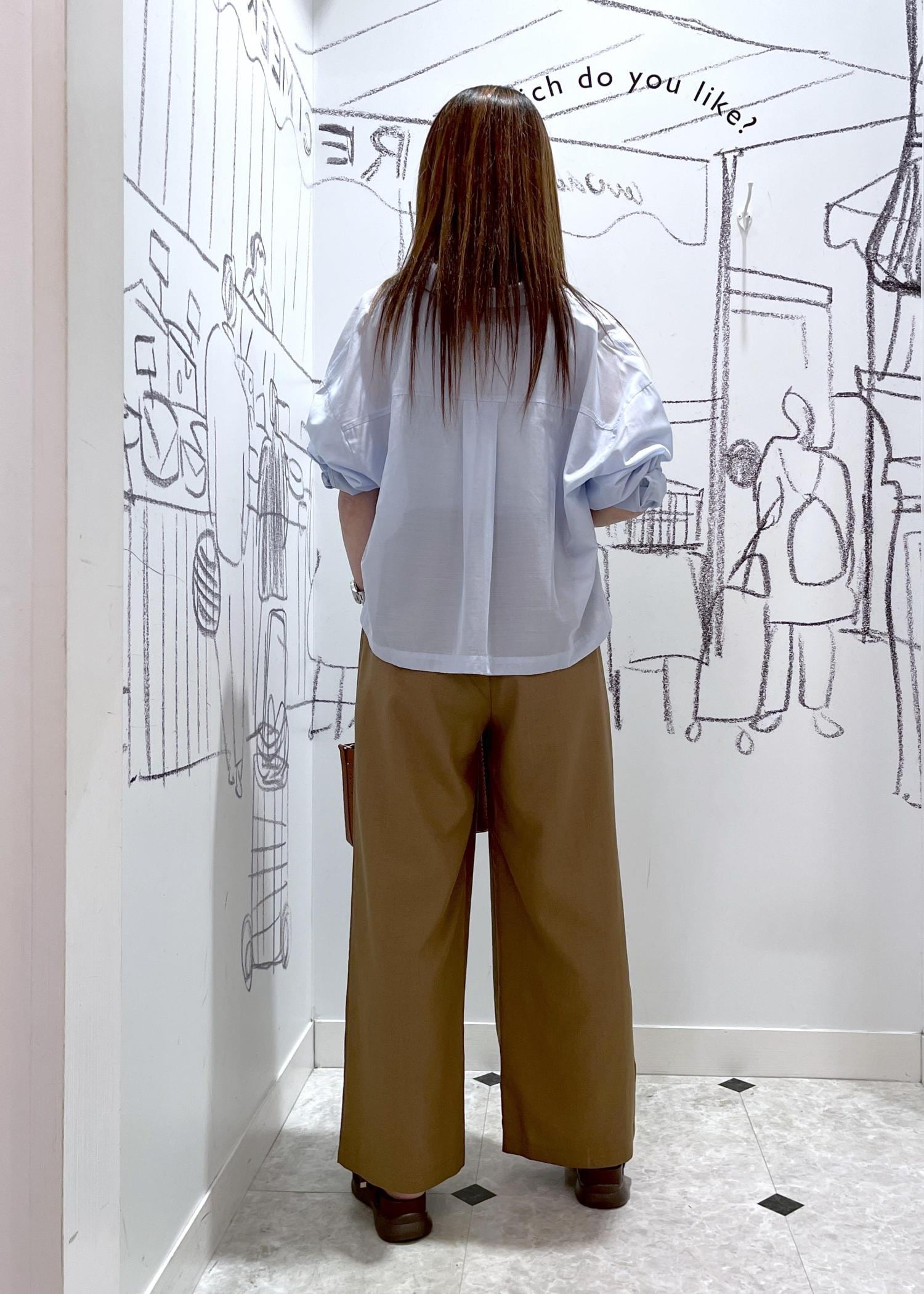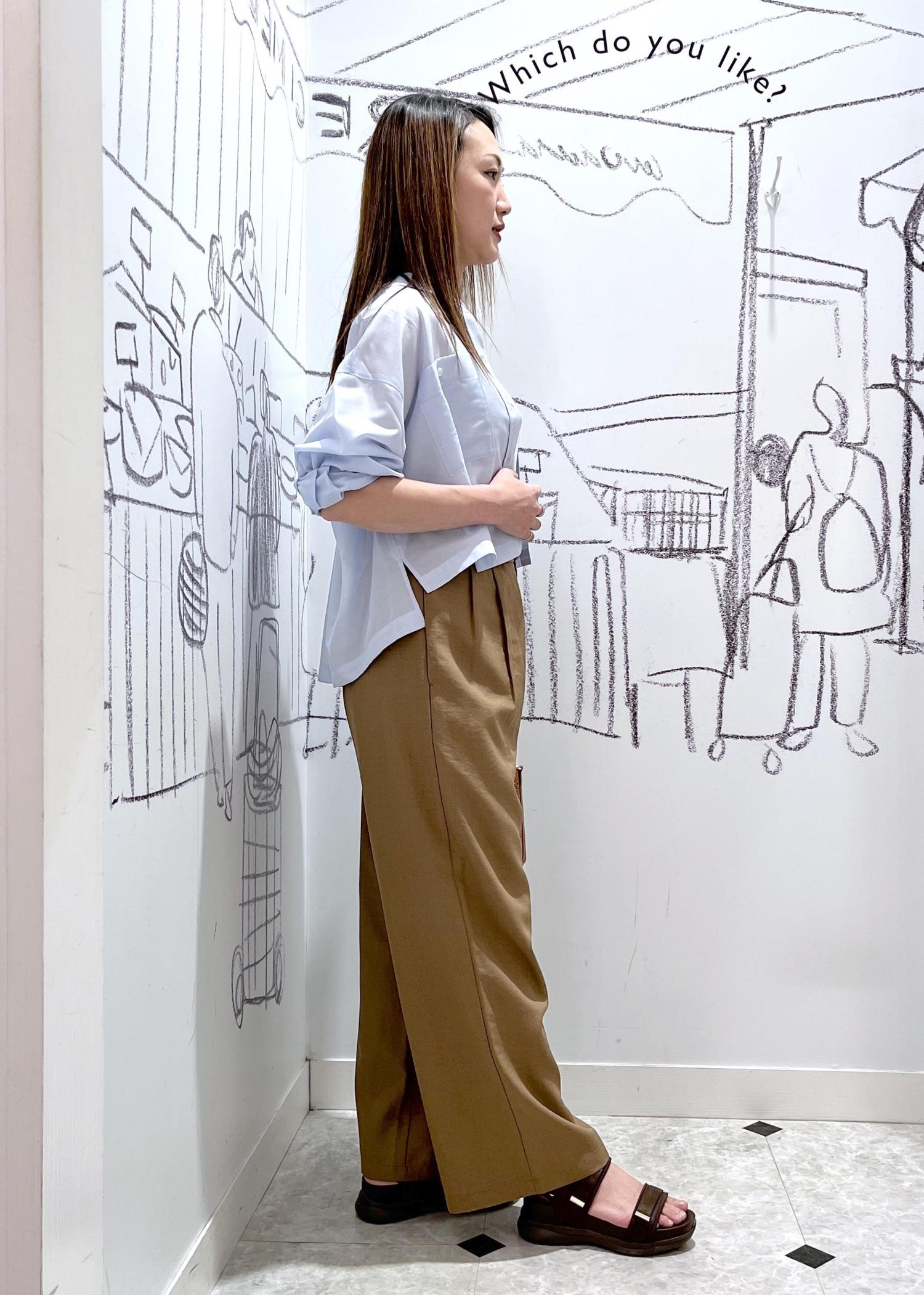 リネンライクパンツのシャツコーデ