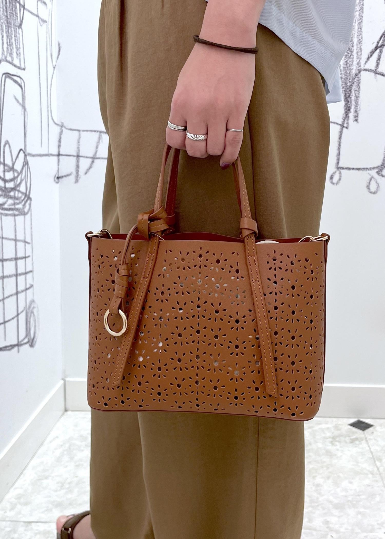 パンチングレースの透け感が涼しげで春夏にぴったりのバッグです。