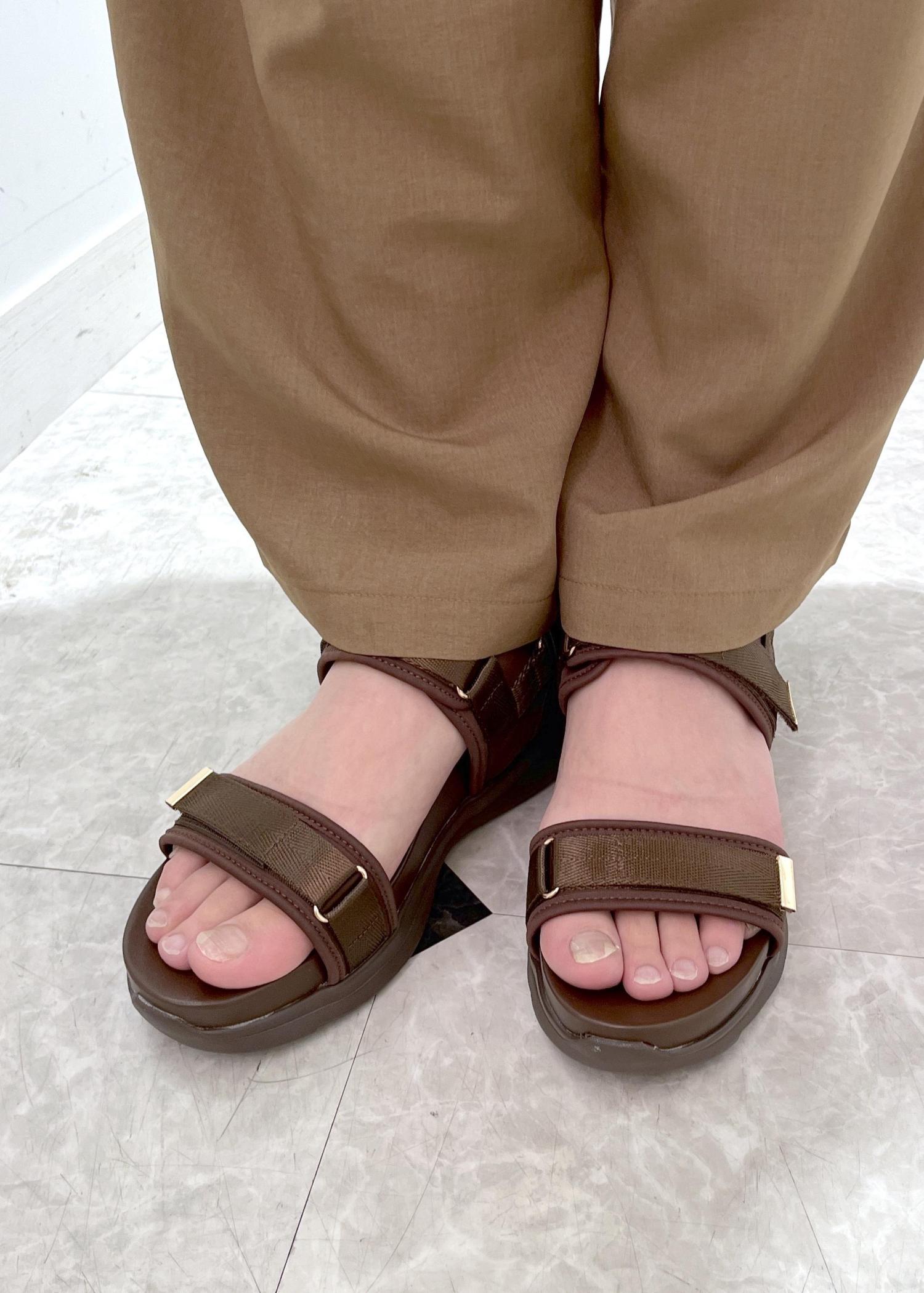 ソールは柔らかく、ベルト部分は太めで安定感があります。
