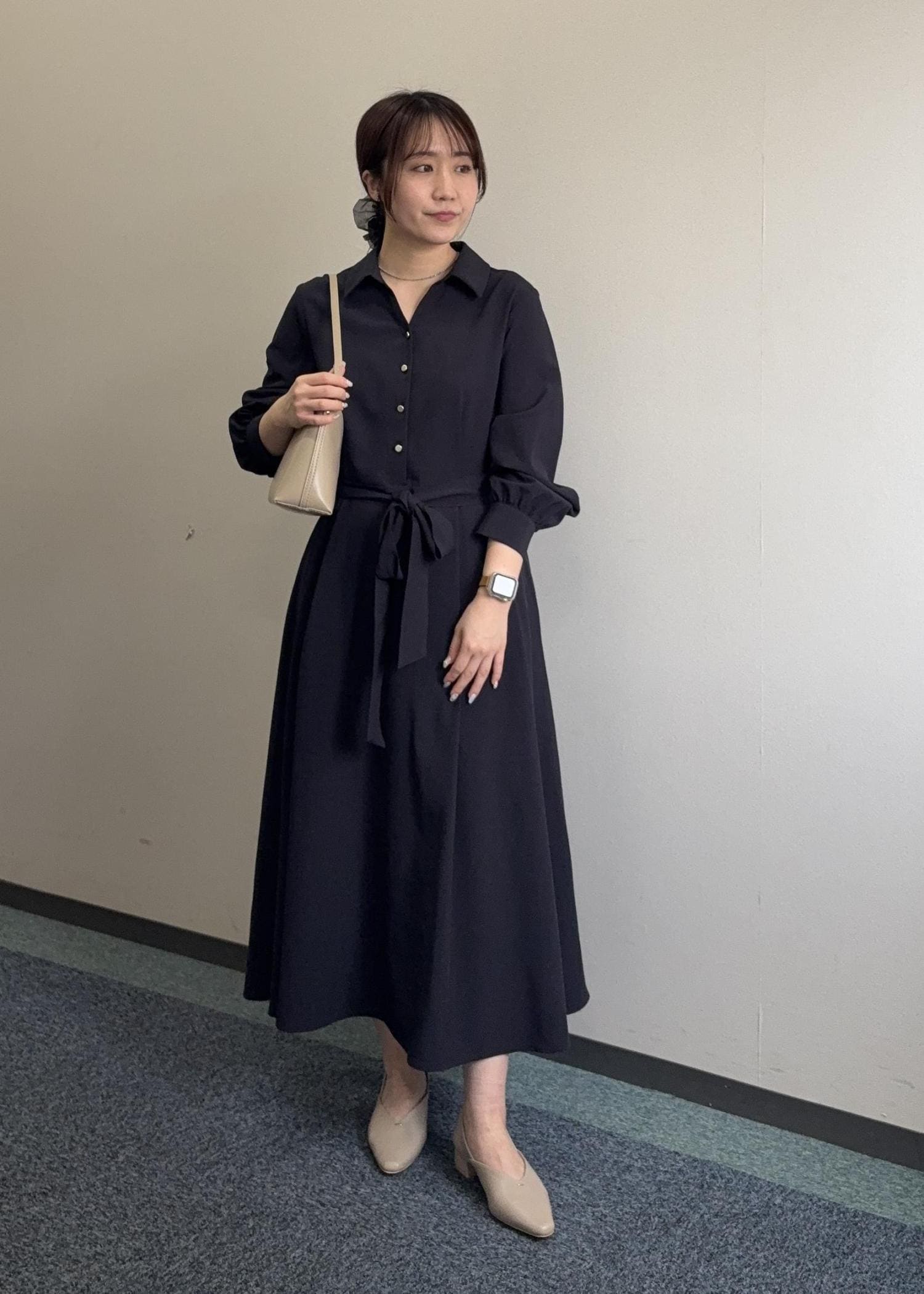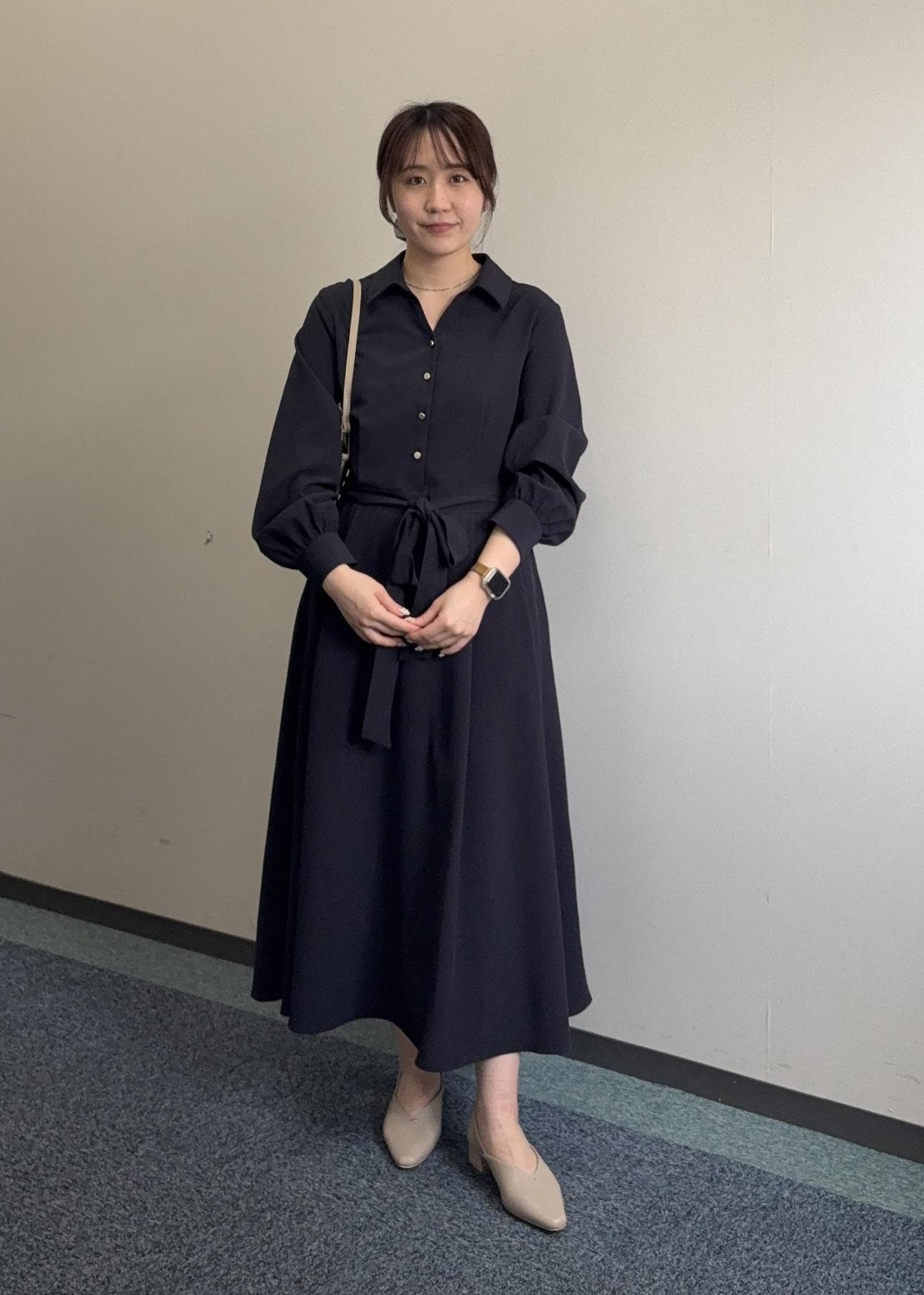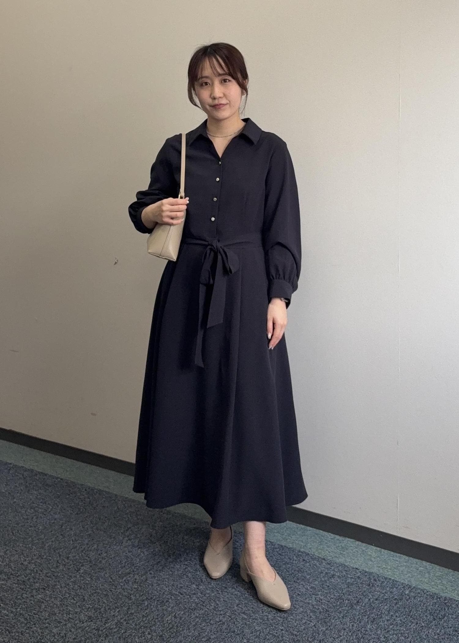 ROPÉ PICNICリボンシャツワンピースネイビー / M¥8,492レビュー程よいゆとりでラインを拾い過ぎないです。