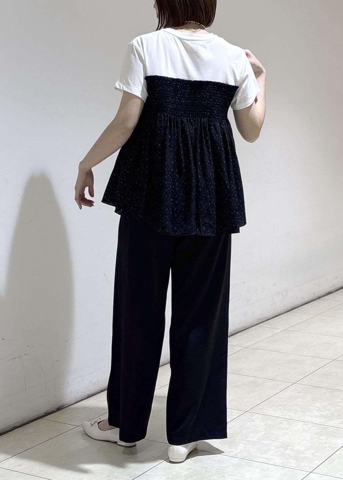 ふわっと軽やかなドッキングトップスに