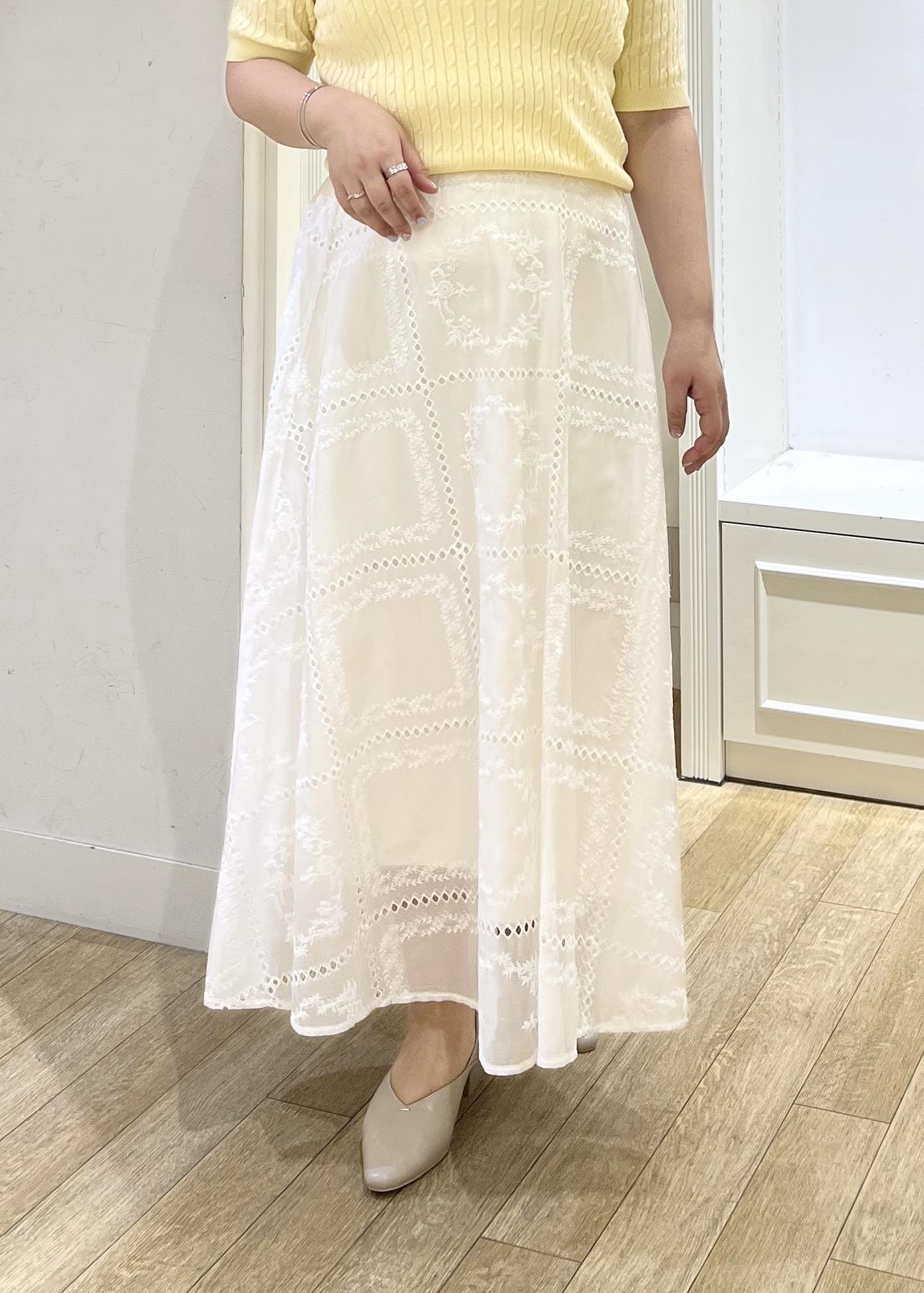 刺繍レースフレアスカート