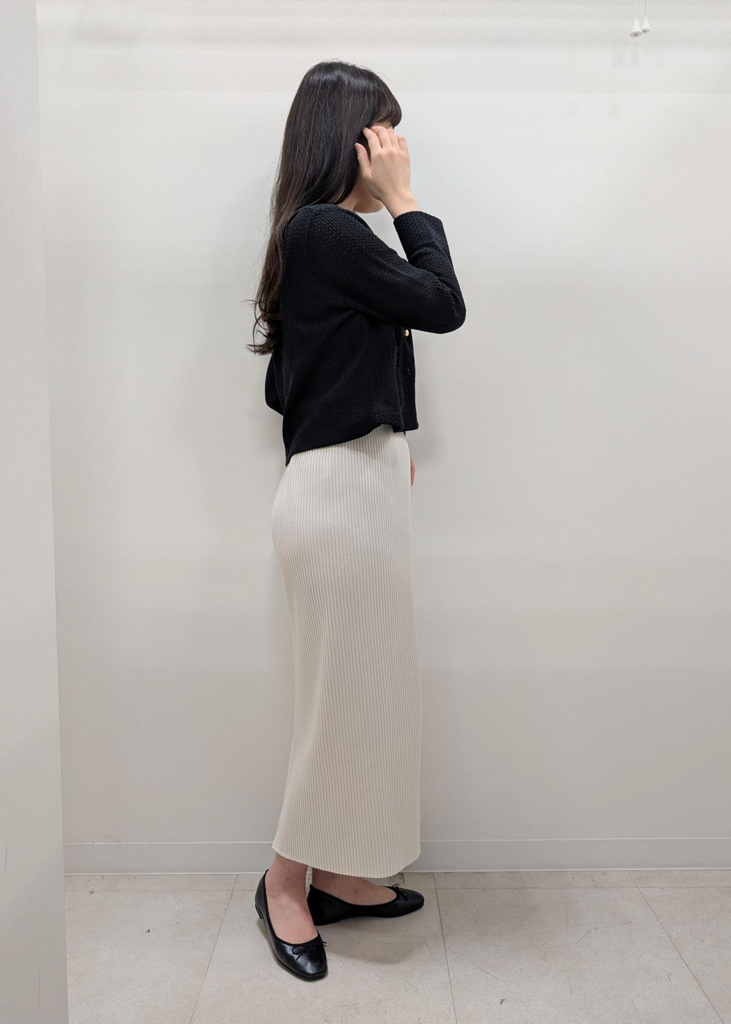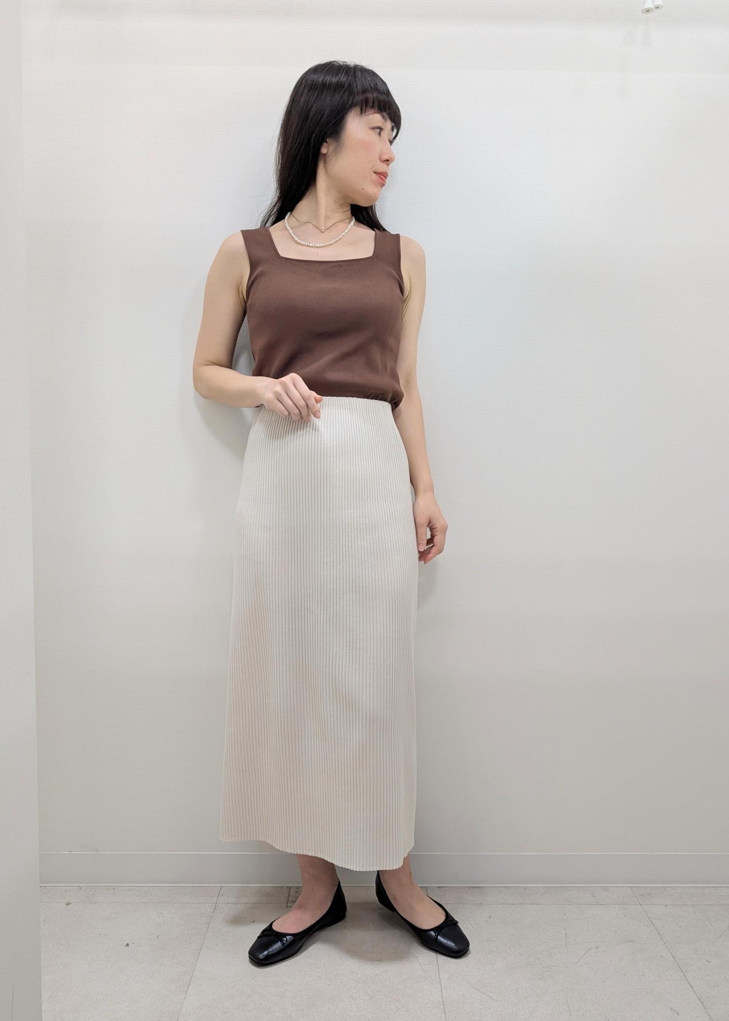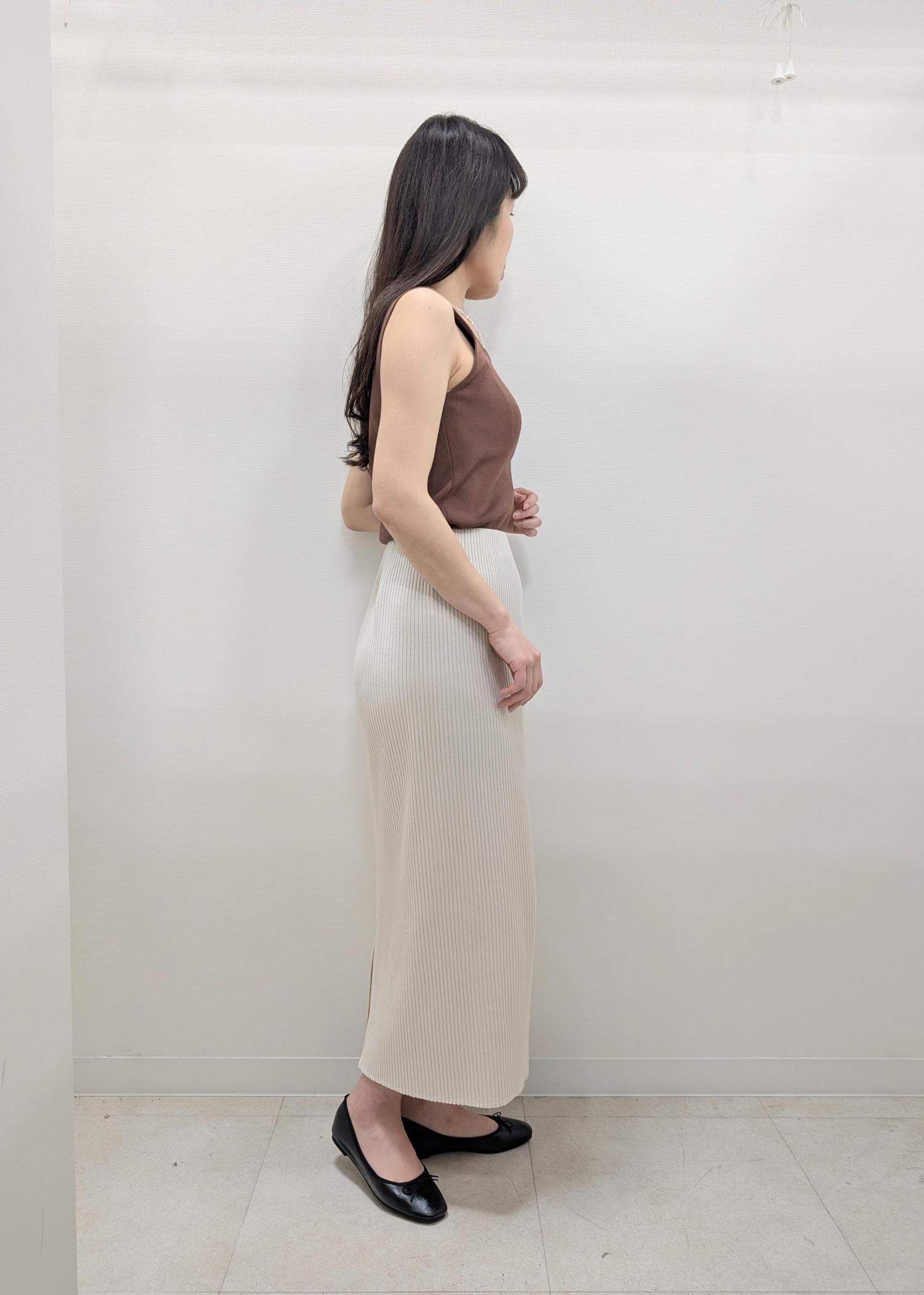 ROPÉ PICNICトタンテレコ Iラインリブニットスカートキナリ / L¥4,994レビュー私は骨格ウェーブで腰が張っているのでタイトスカートは大体40サイズですが、こちらは38サイズでも履けました!