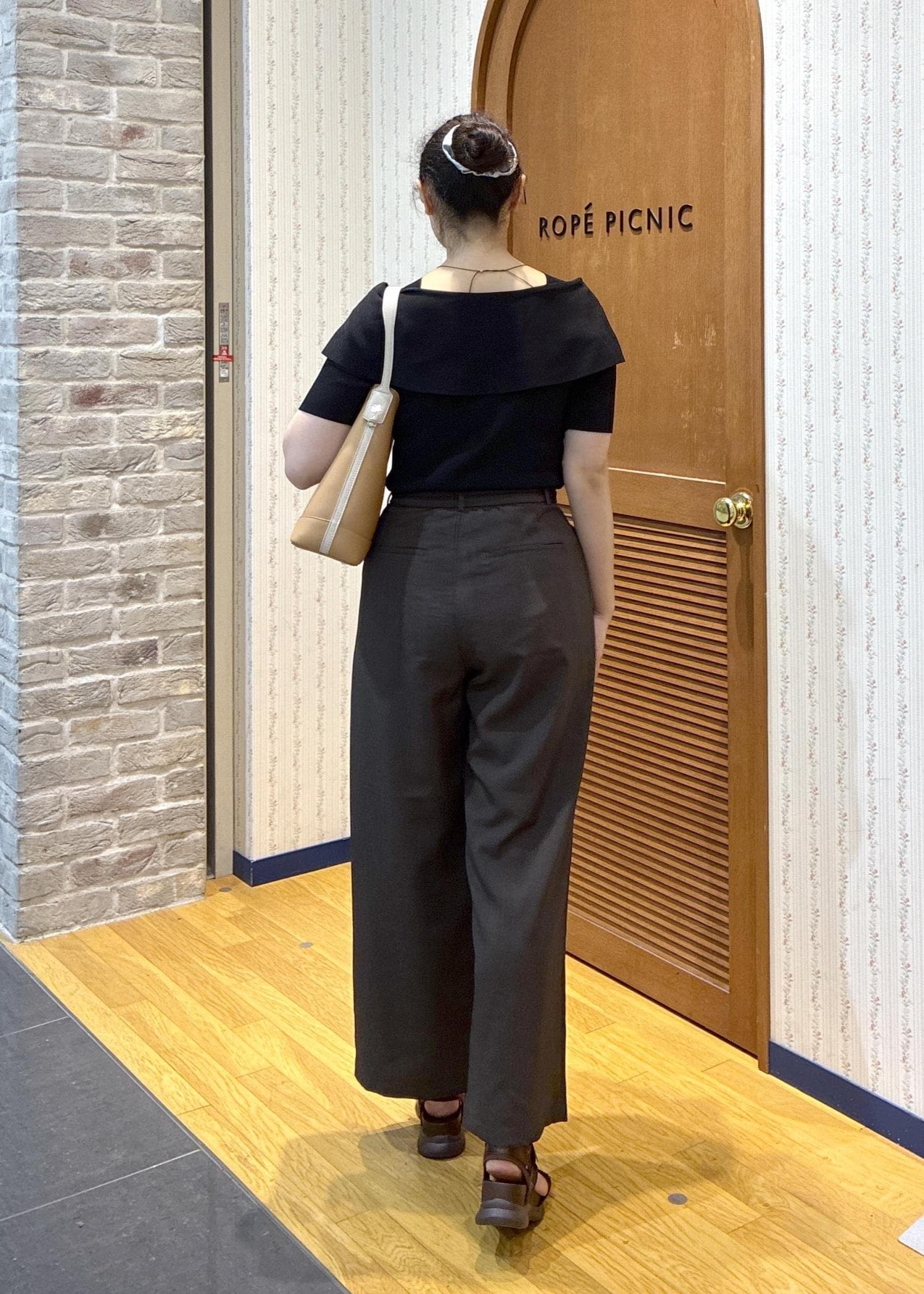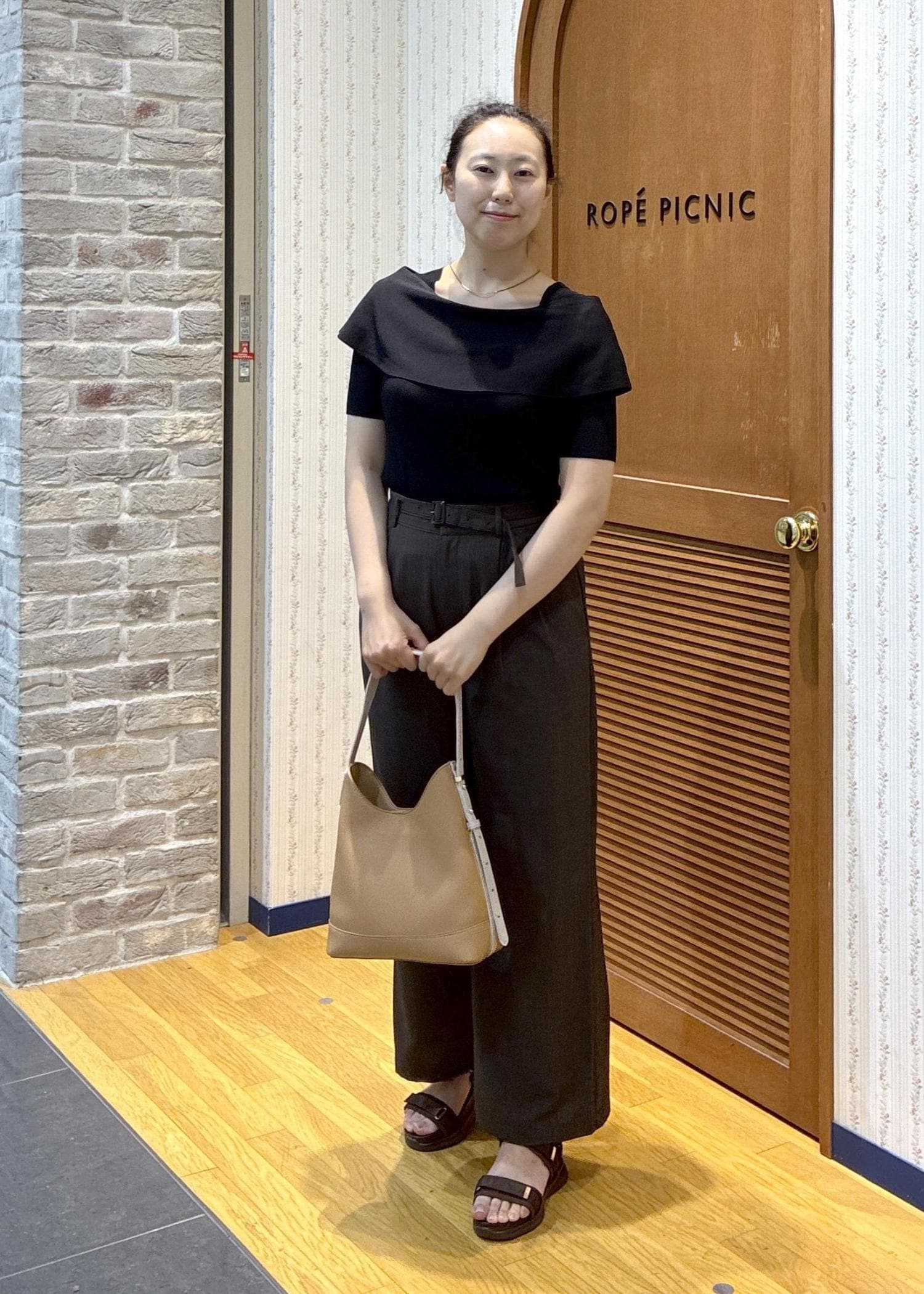 ROPÉ PICNICエアリーリネンライク タックワイドパンツ/UVカット・速乾ダークブラウン / L¥5,995レビューワイドパンツですが生地が柔らかく下にストンと落ちるタイプです。あまり広がりすぎないセミワイドです。