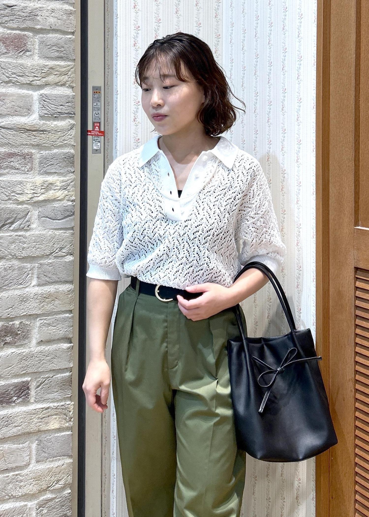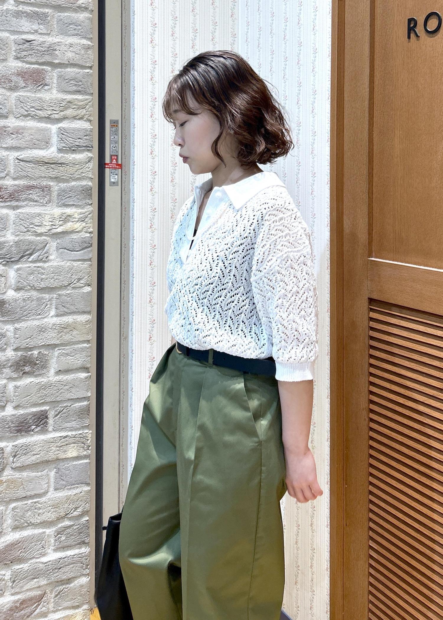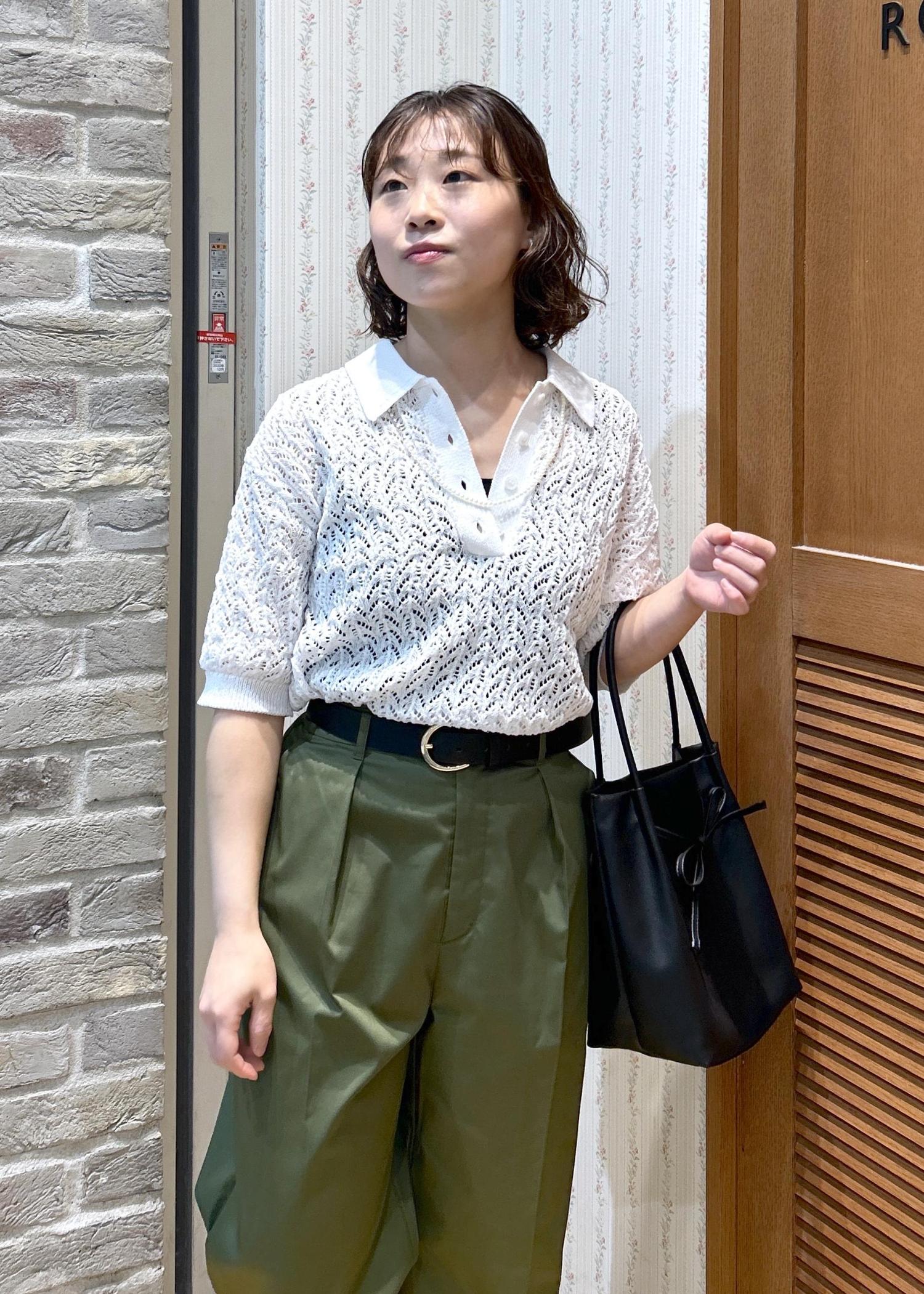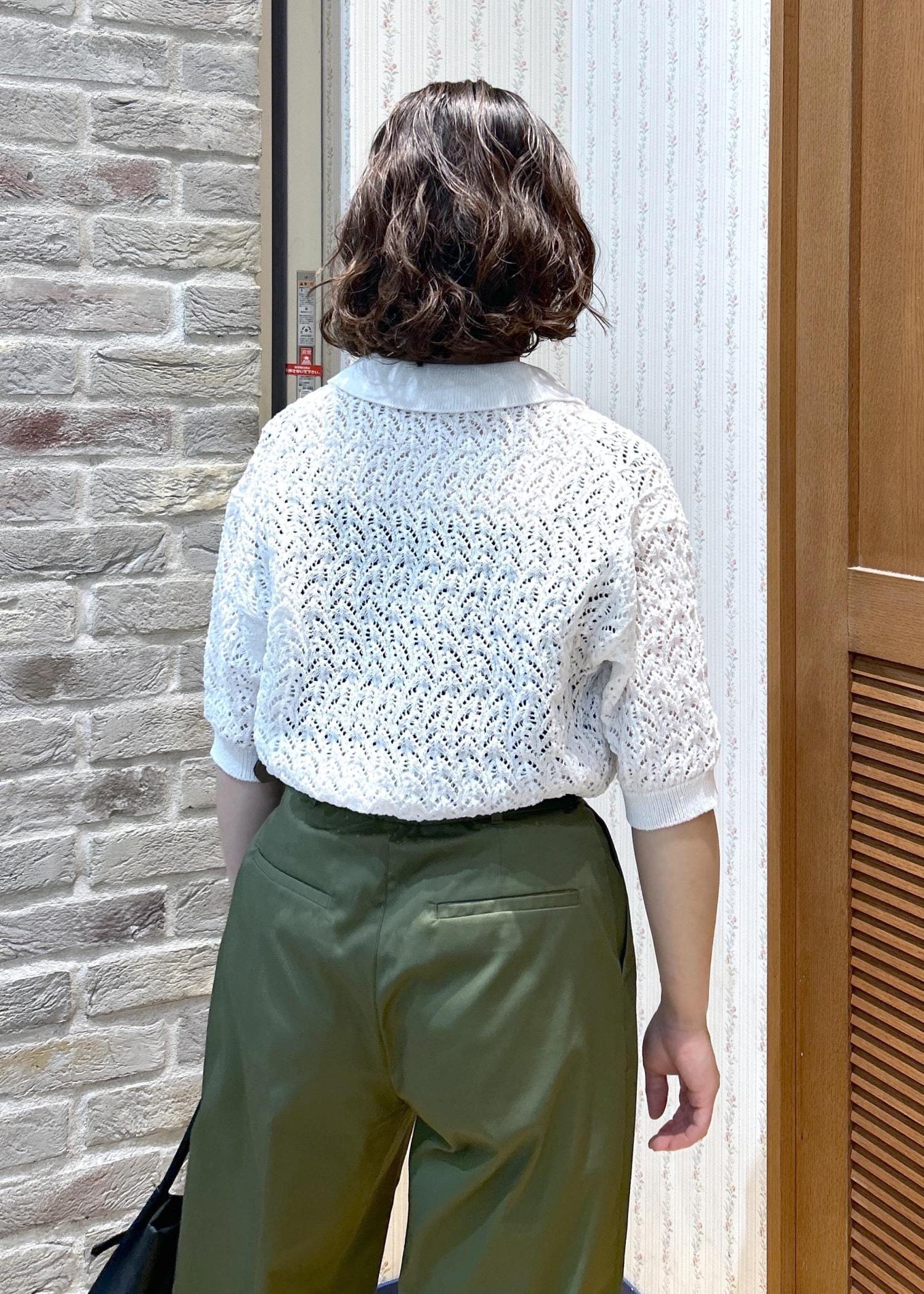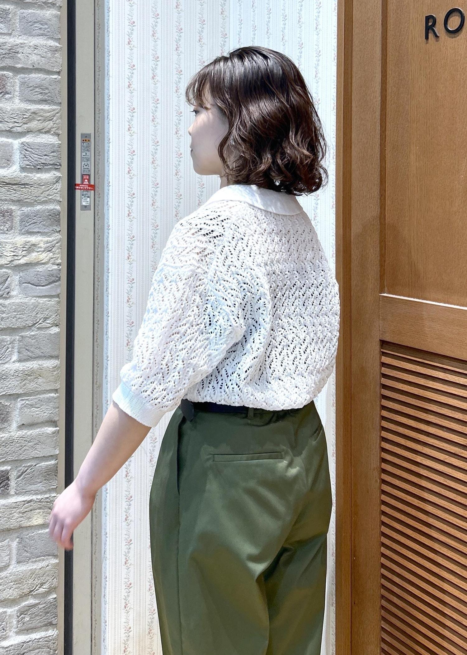 ROPÉ PICNICレースポロニットホワイト / F¥5,995レビューサイズ感は程よくゆとりがあり、袖丈はひじが隠れるくらいです。ハリ感のあるしっかりした生地で、透かし編みですが生地が伸びてきたりしなさそうな印象でした!スカート、パンツともに相性良く、着回ししやすいです。