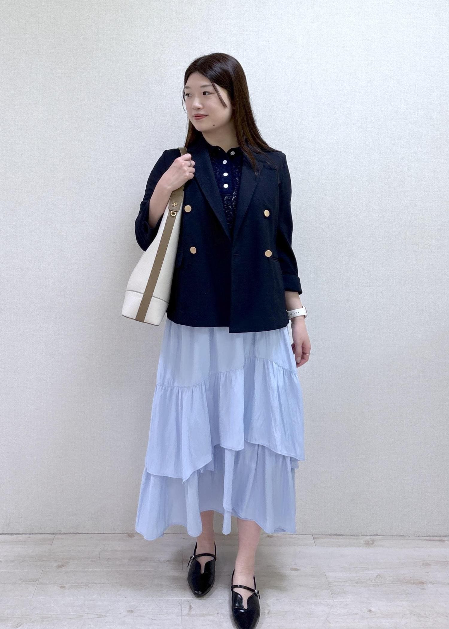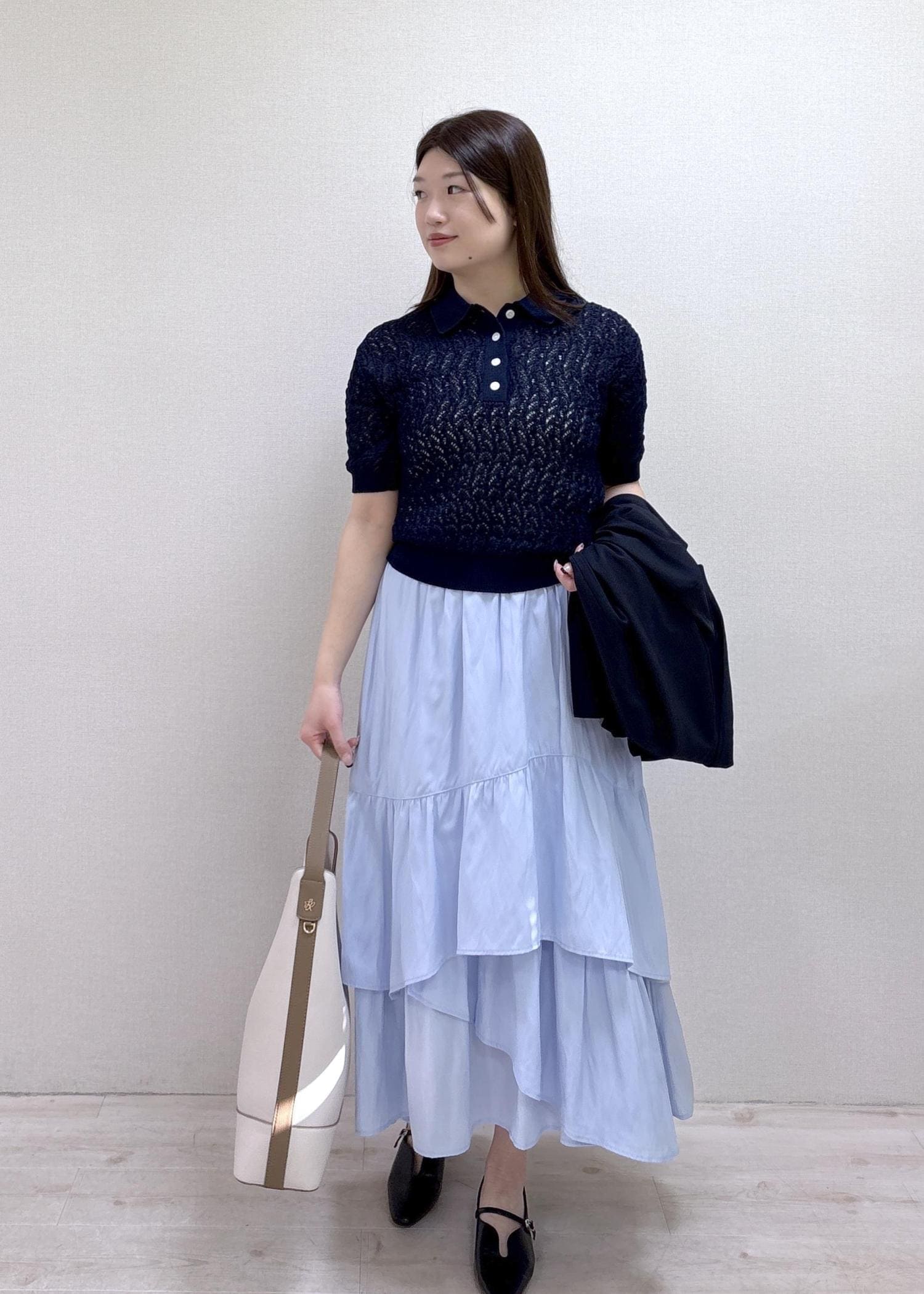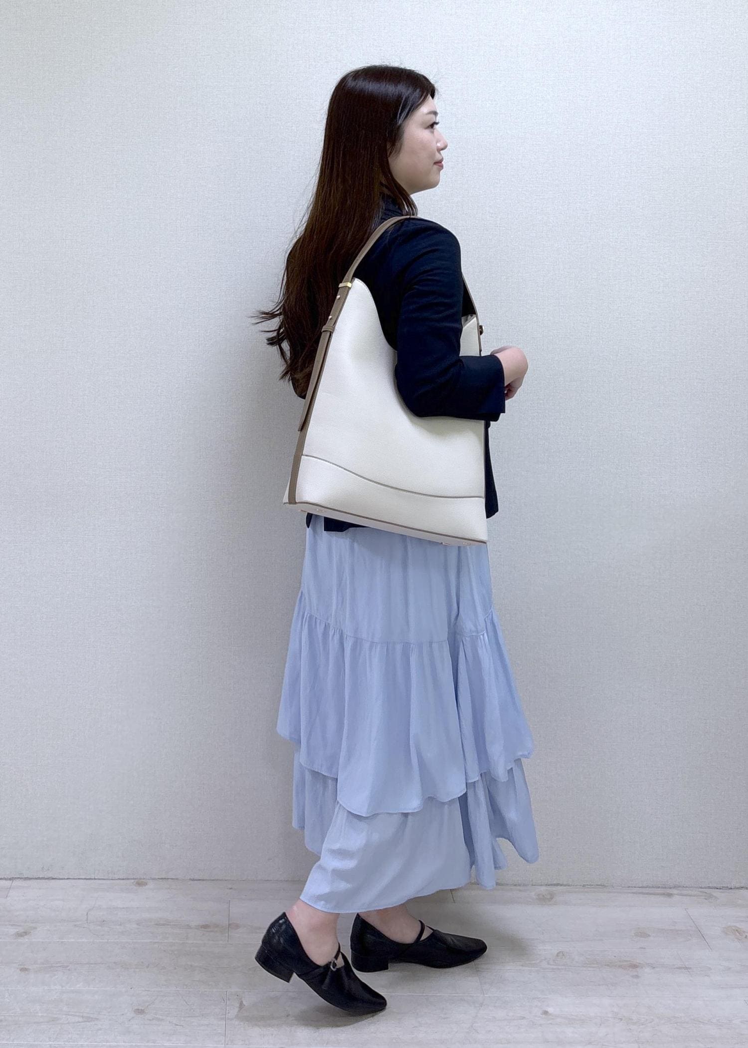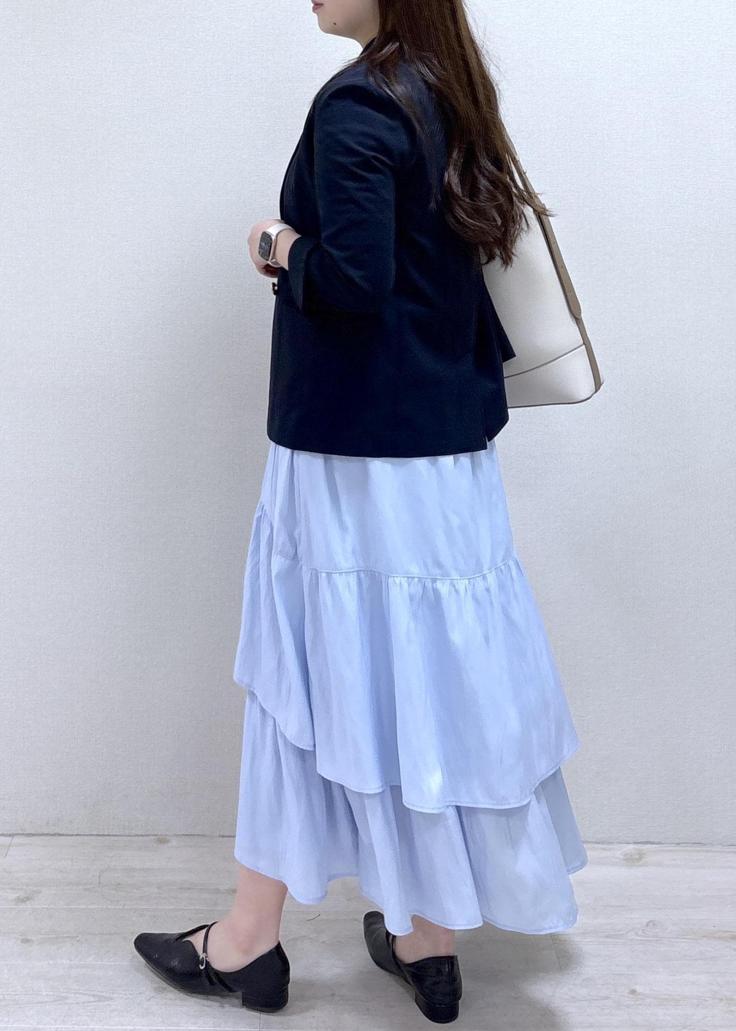 ふんわりしたティアードスカートが華やかさもあるので、お仕事終わりに予定がある日にもピッタリです♡