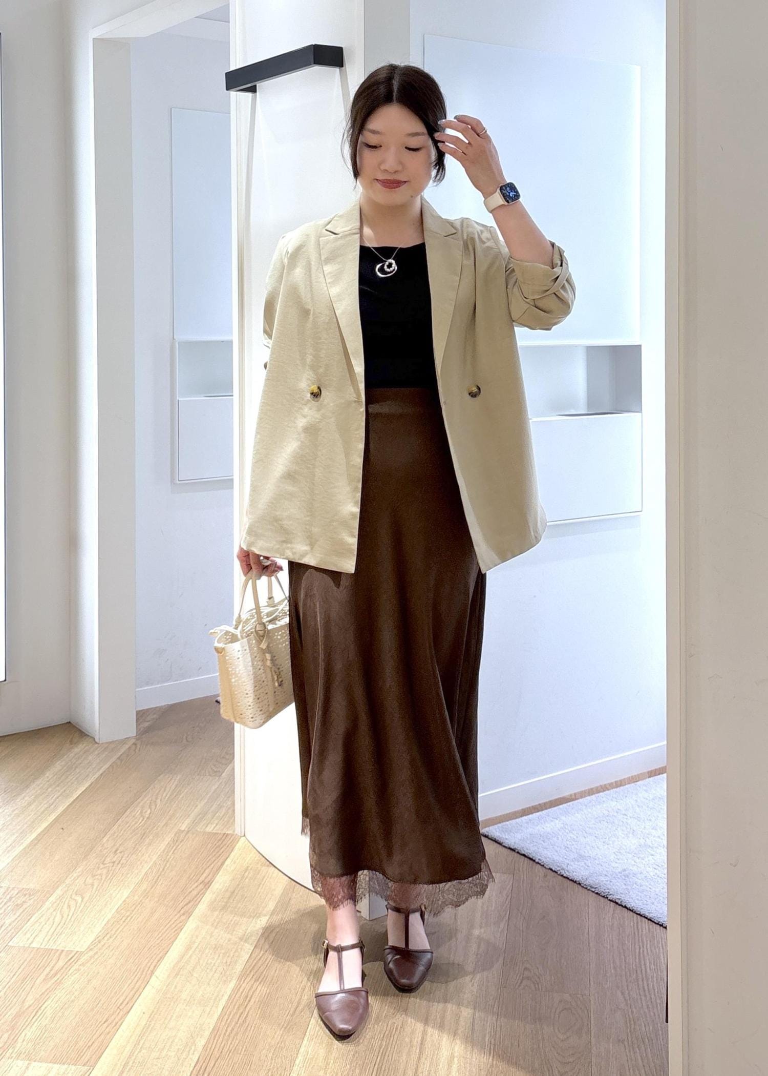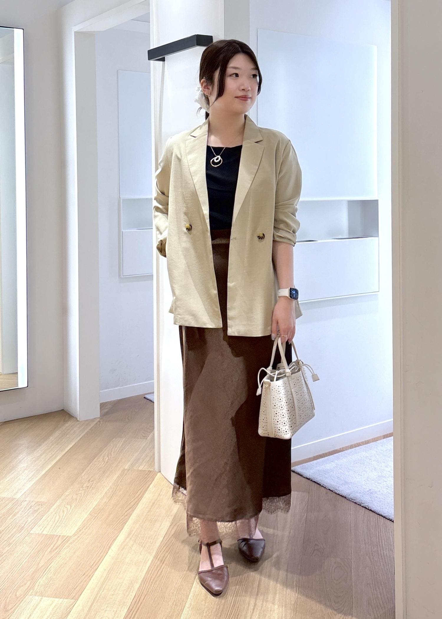 軽い素材が夏まで使えるジャケットは、夏のお仕事着の強い味方ですね♪