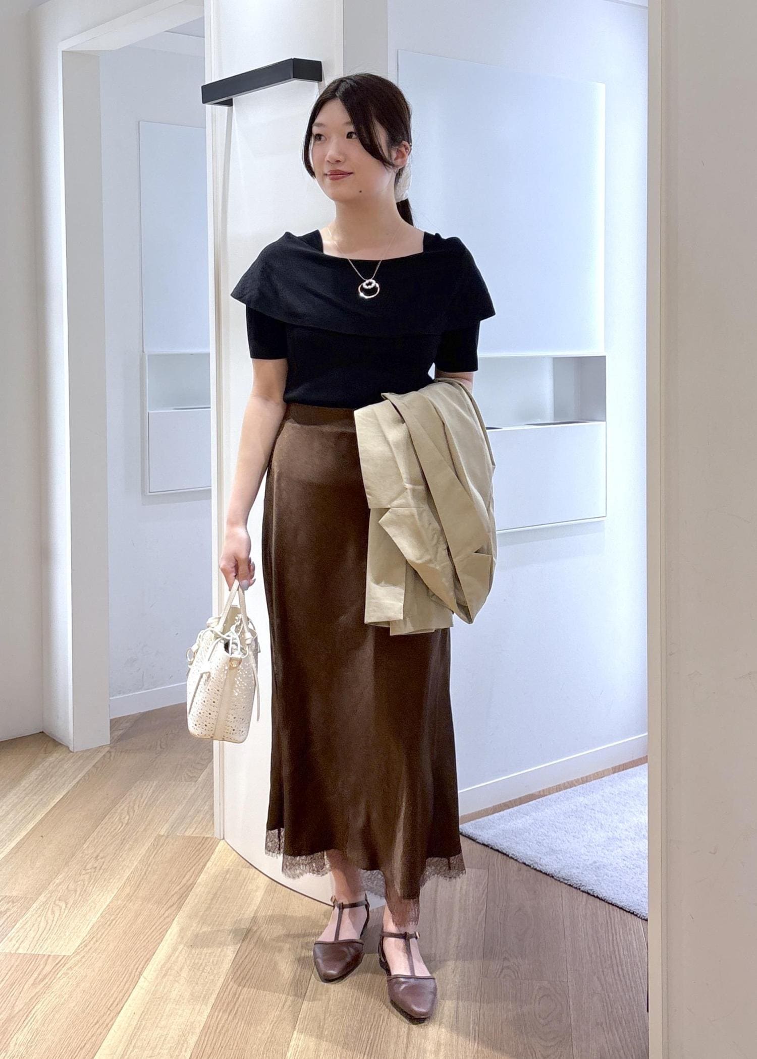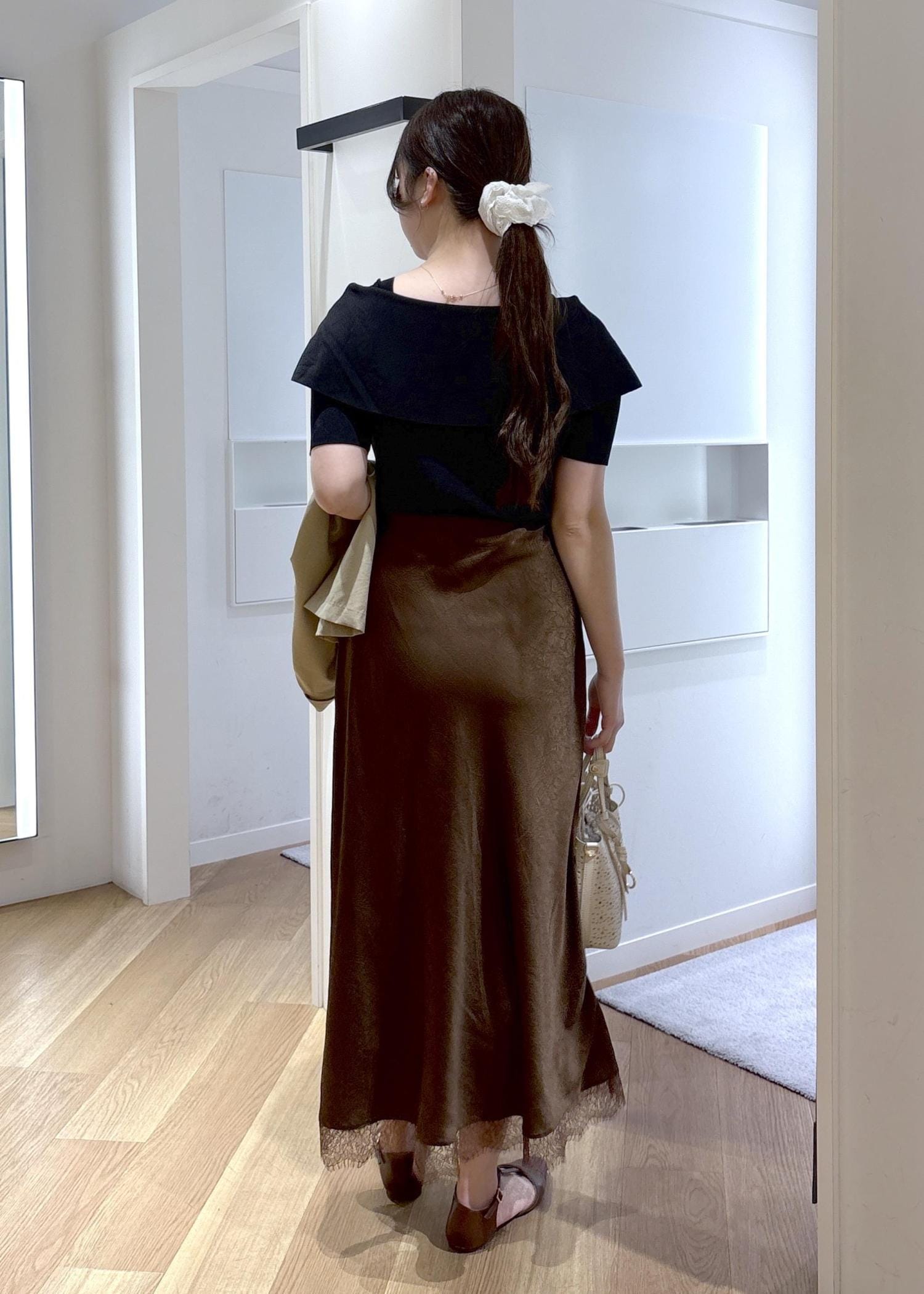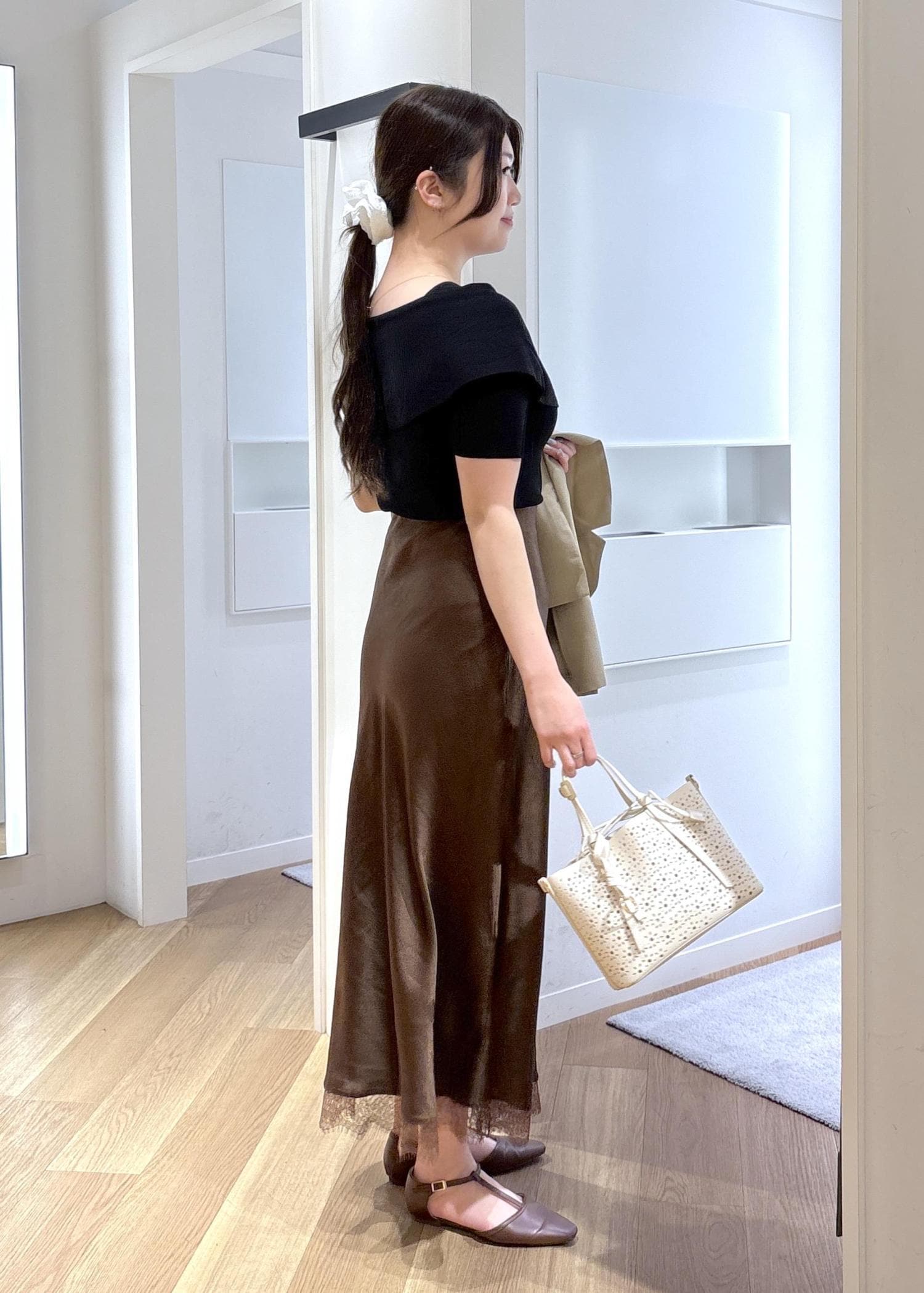 裾レースのスカートを合わせて、女性らしさをプラスしたコーデです◎