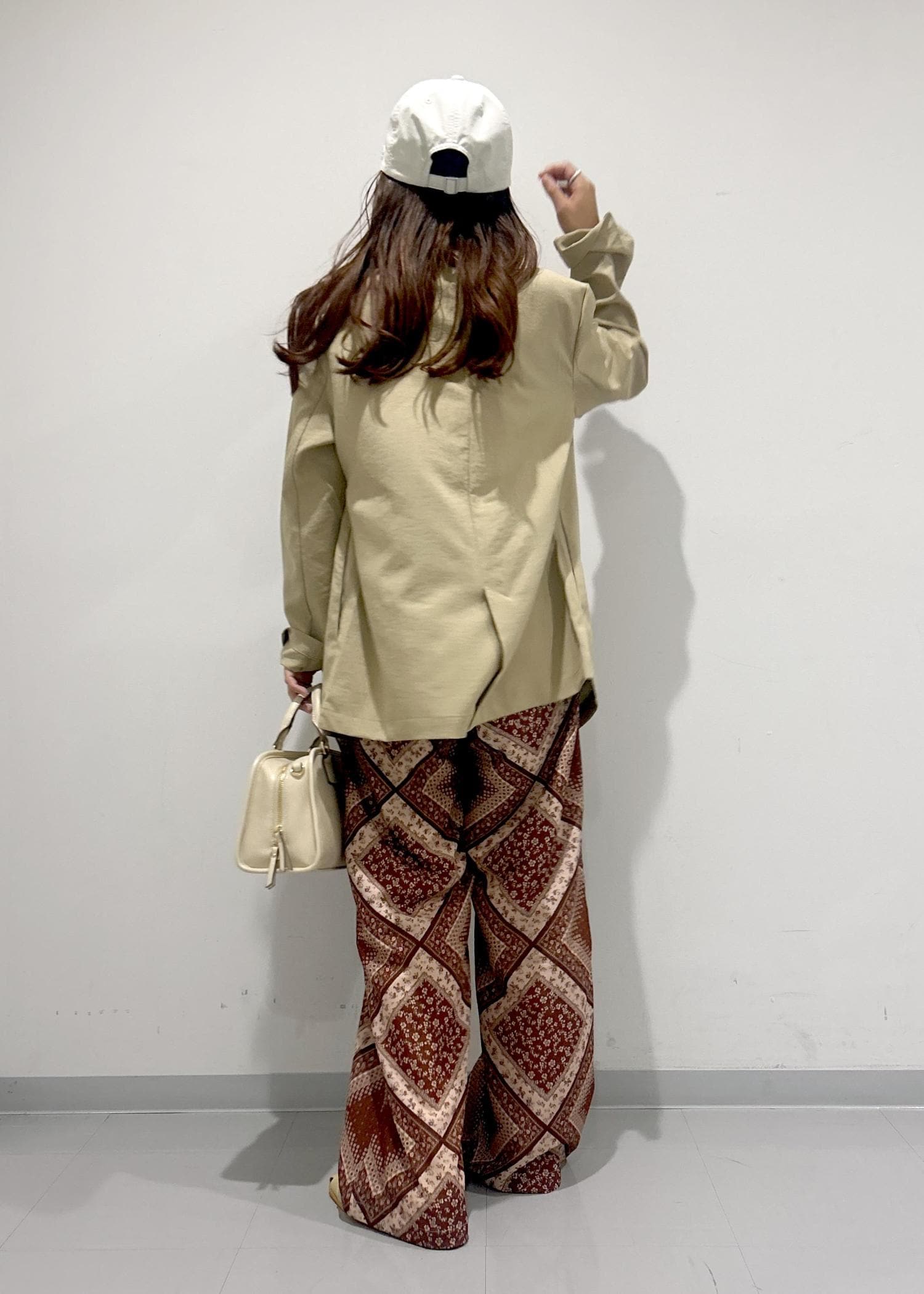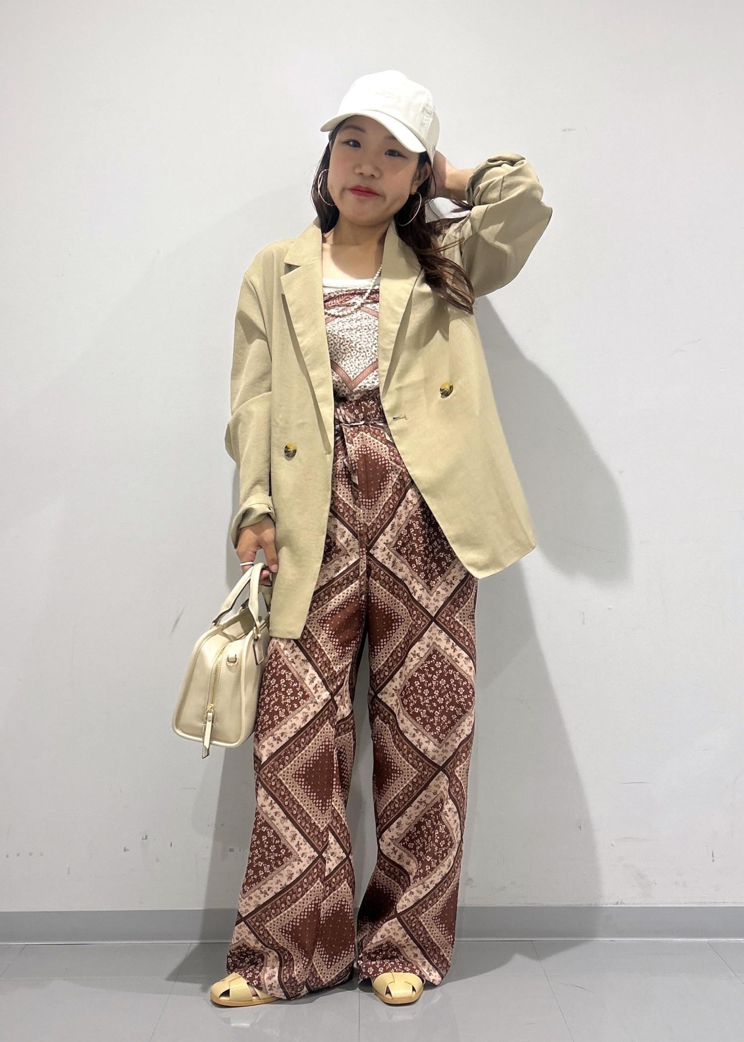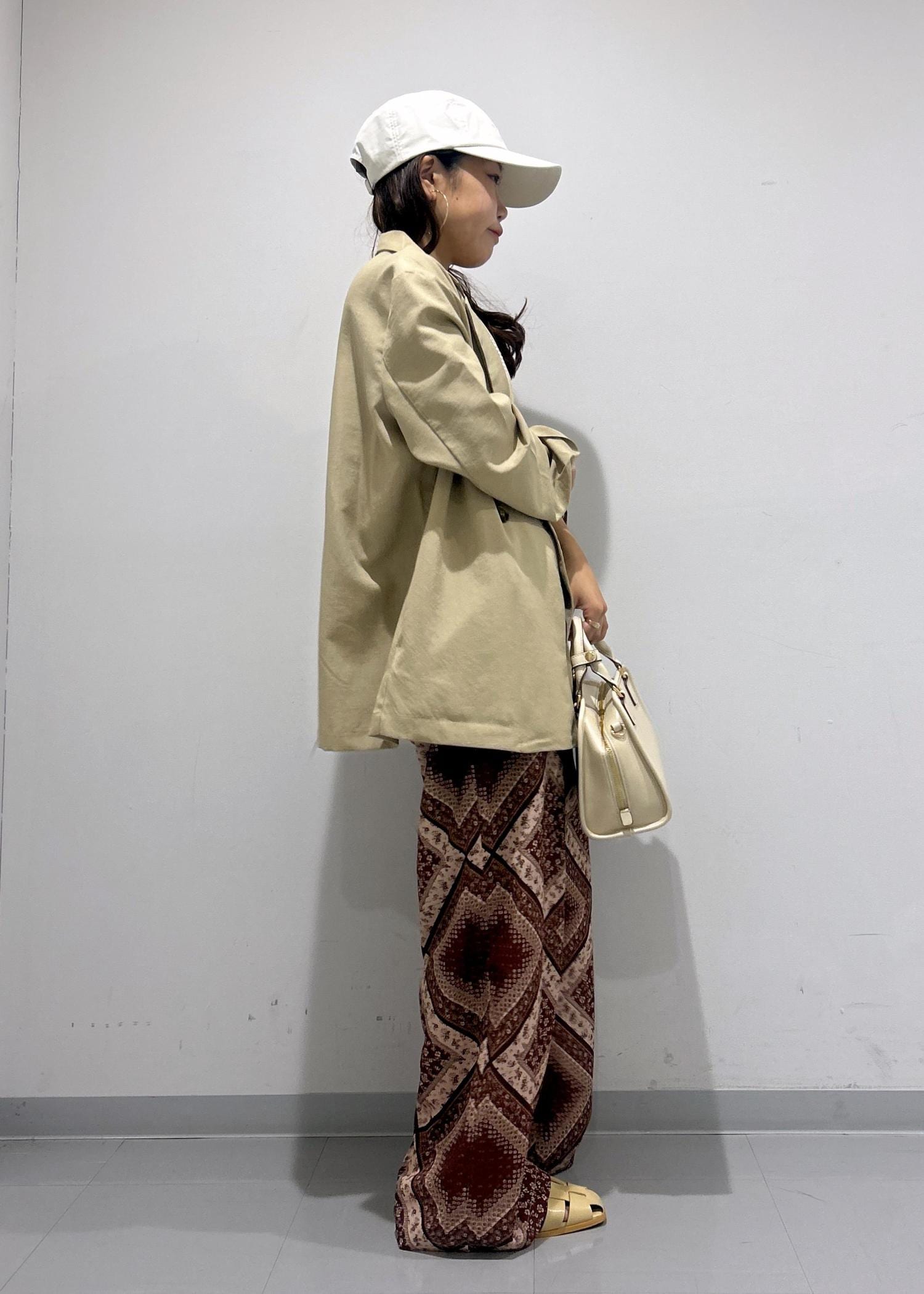 夏らしい柄パンツのカジュアルコーデです。