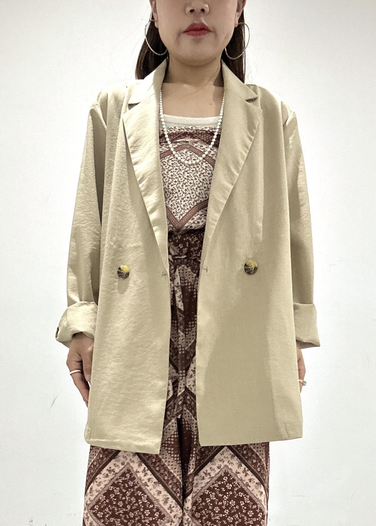 袖は掌が半分隠れるぐらいになるので、小柄な方は2、3回折り曲げての着用がおすすめです!