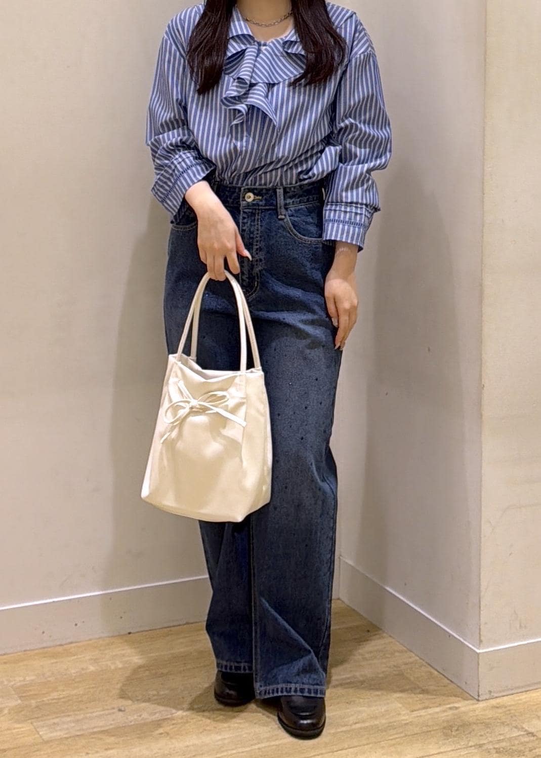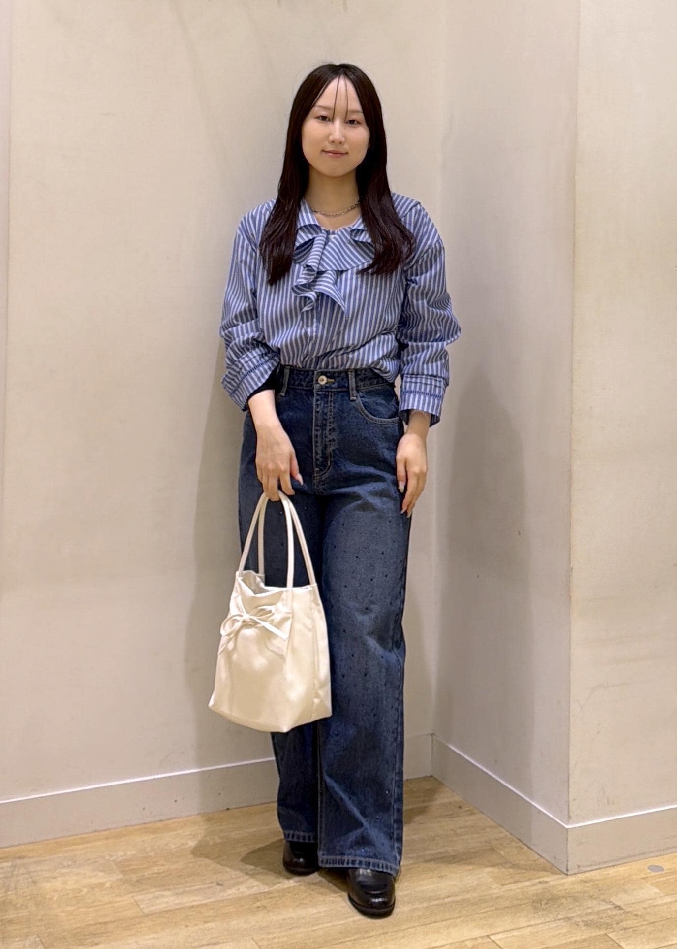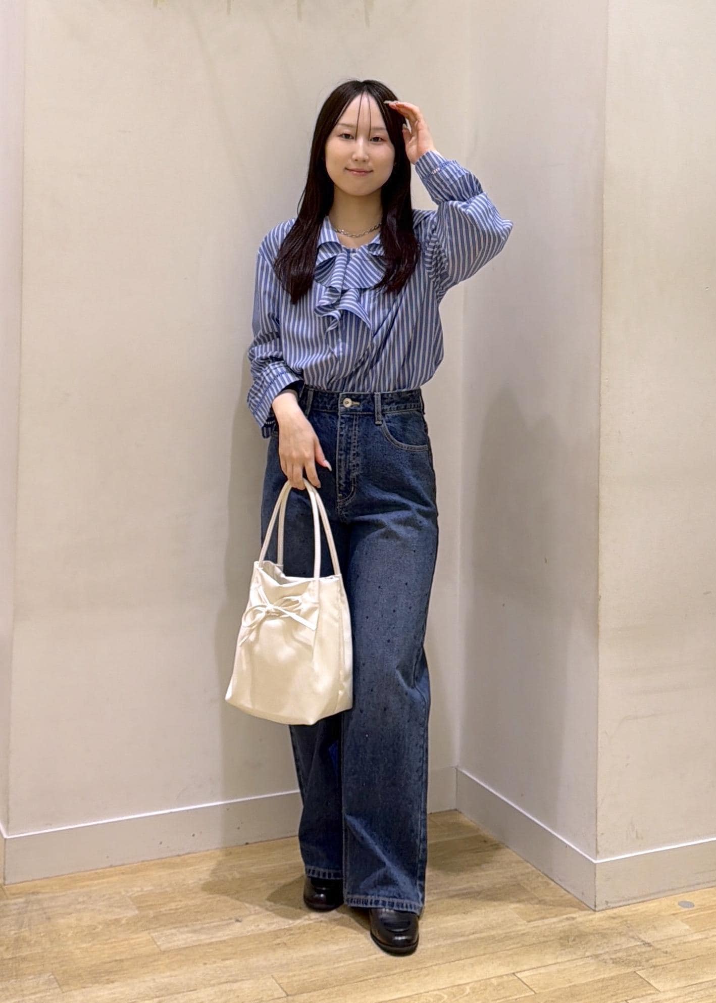 ブラウスがガーリー目なデザインなので、デニム合わせをすることで大人っぽくバランスを取りました!