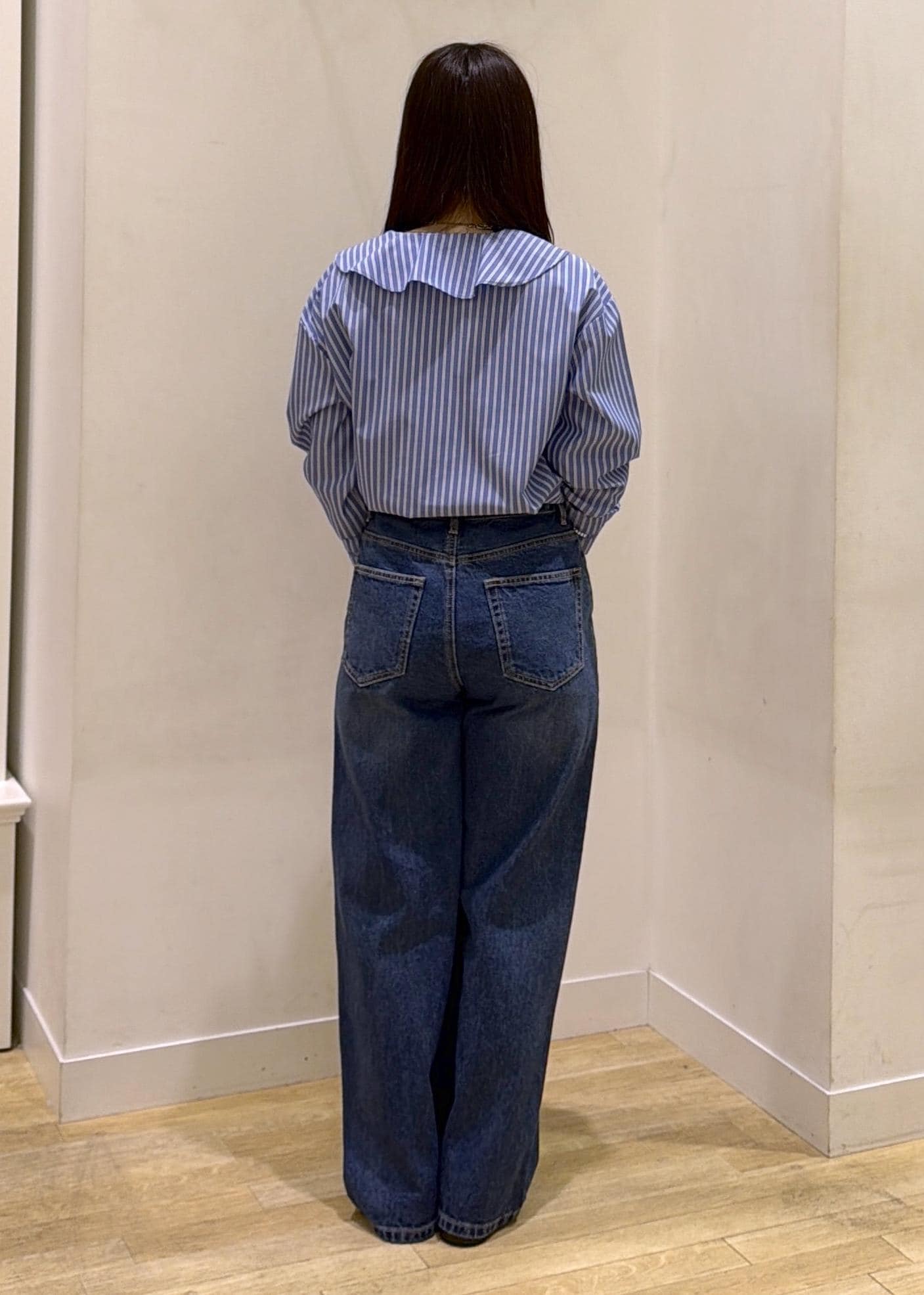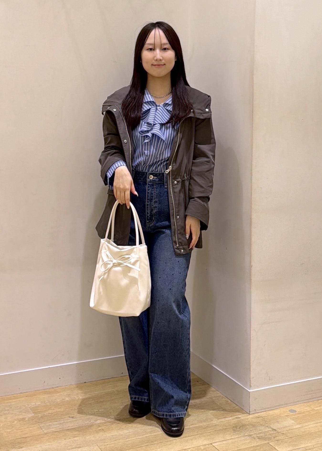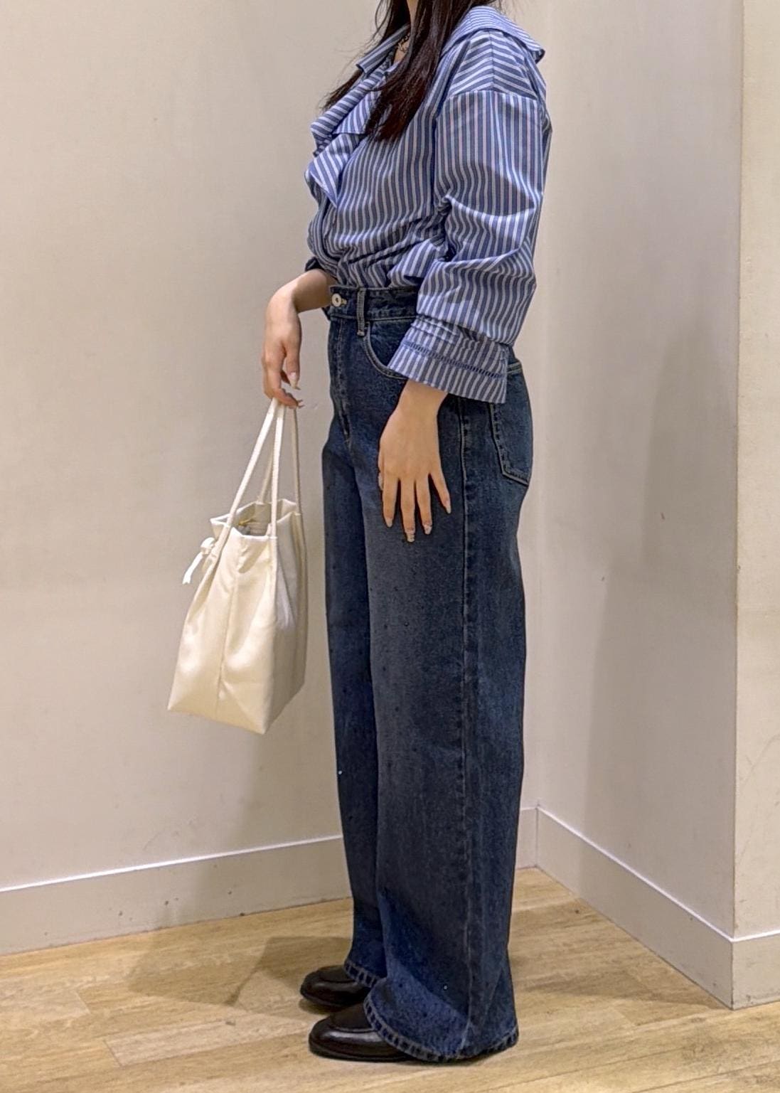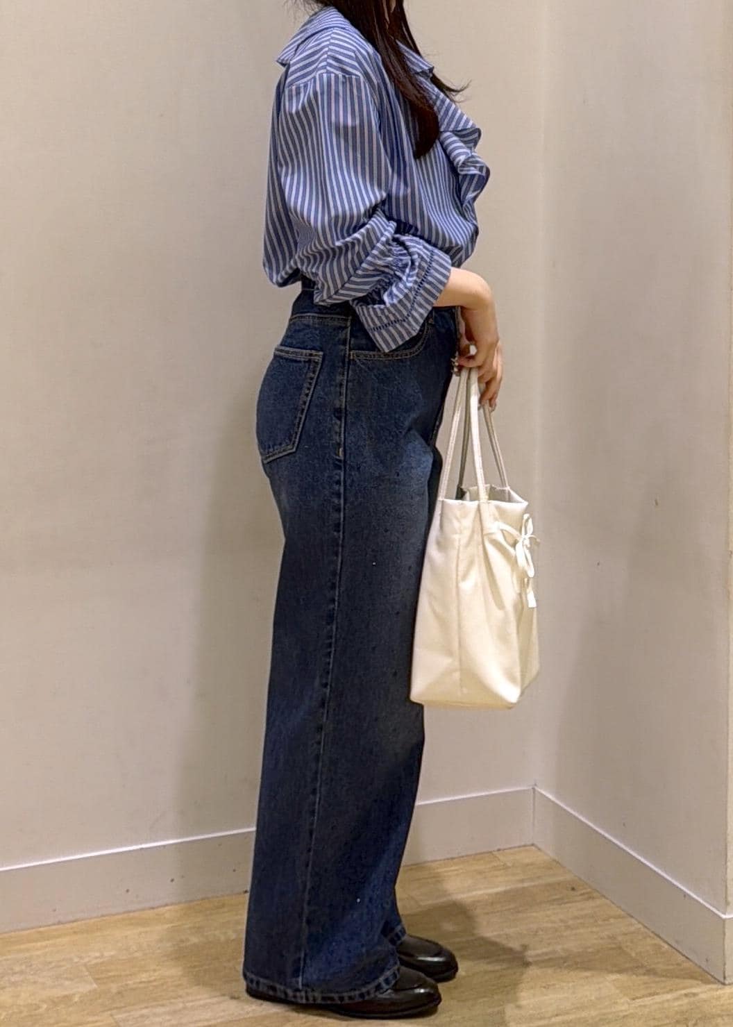 ブラウスがガーリー目なデザインなので、デニム合わせをすることで大人っぽくバランスを取りました!
