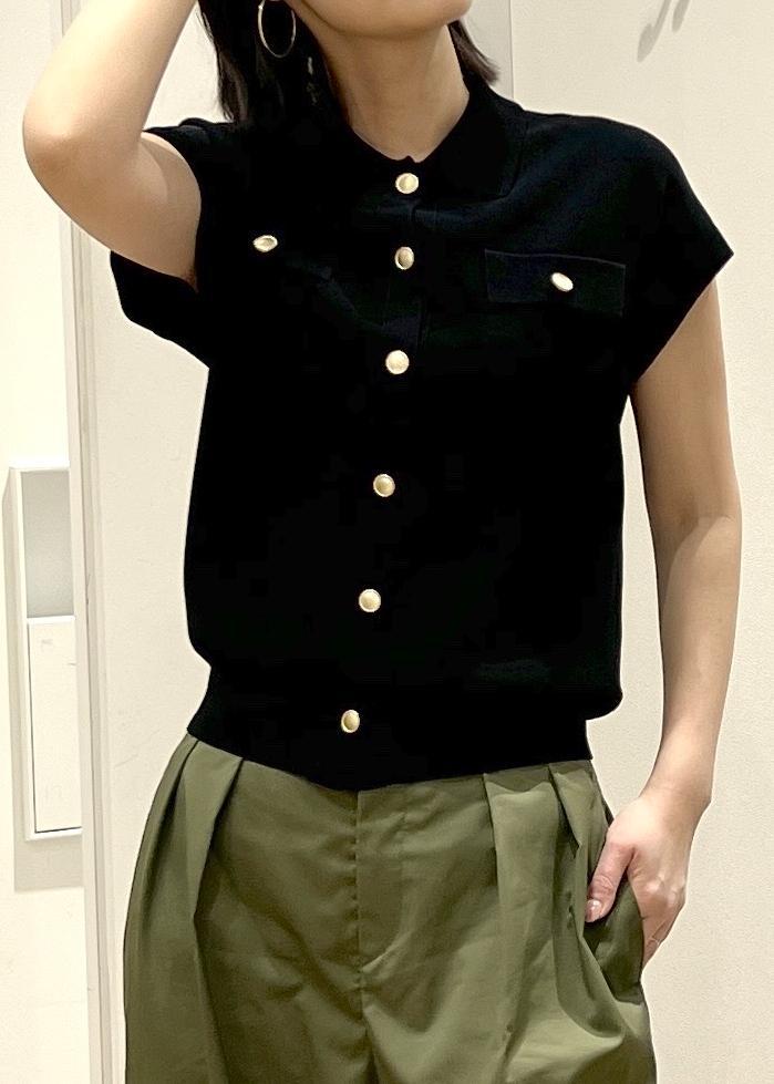 NEW!ROPÉ PICNIC八方映えニット 金ボタンフレンチスリーブポロカラーカーディガン/UVカット・接触冷感・イージーケアブラック / F¥5,489レビューストレッチが入っていて、さらっとした着心地。
