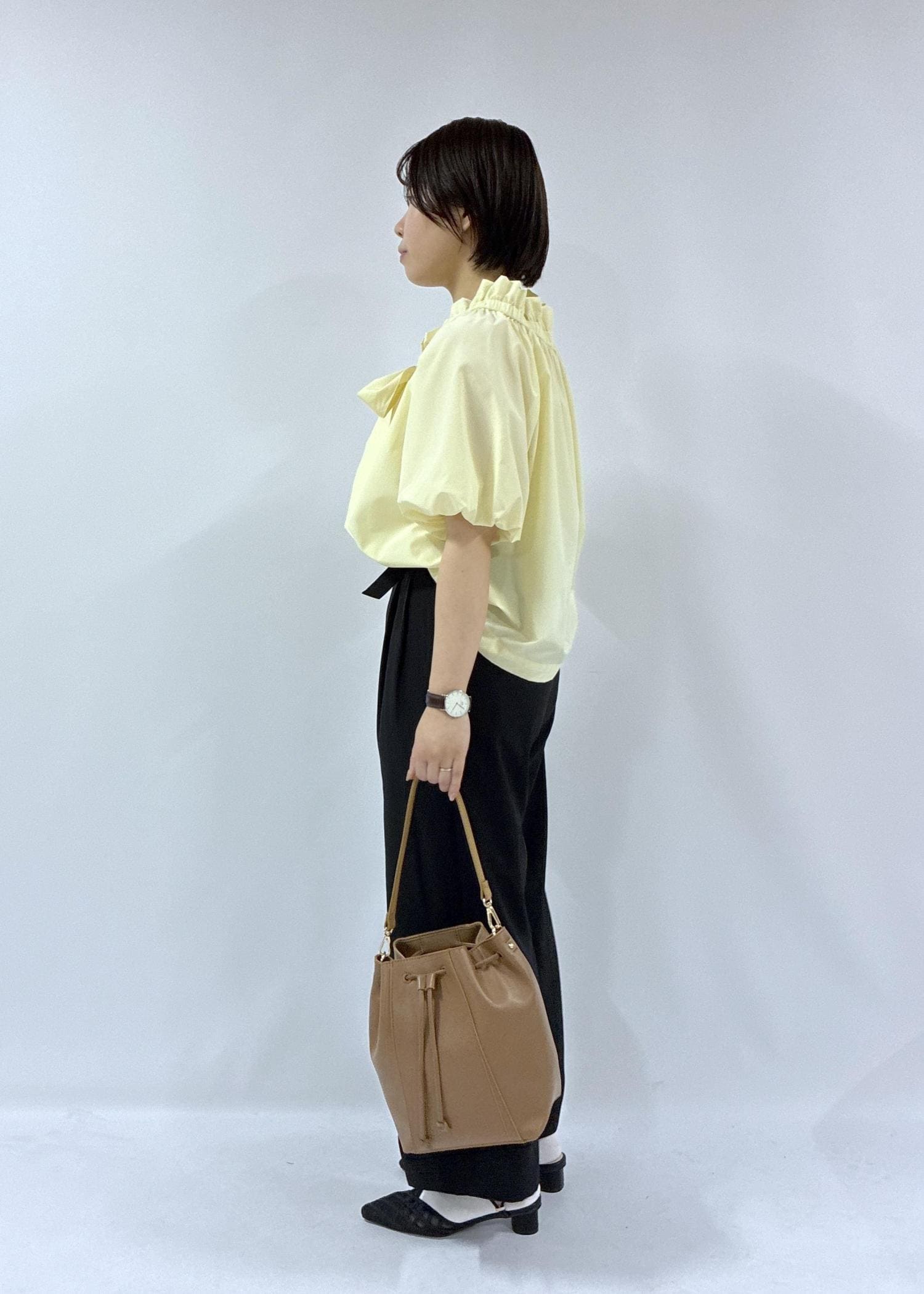 ミュールやバッグも大人っぽくキレイめに合うアイテムで揃えました。