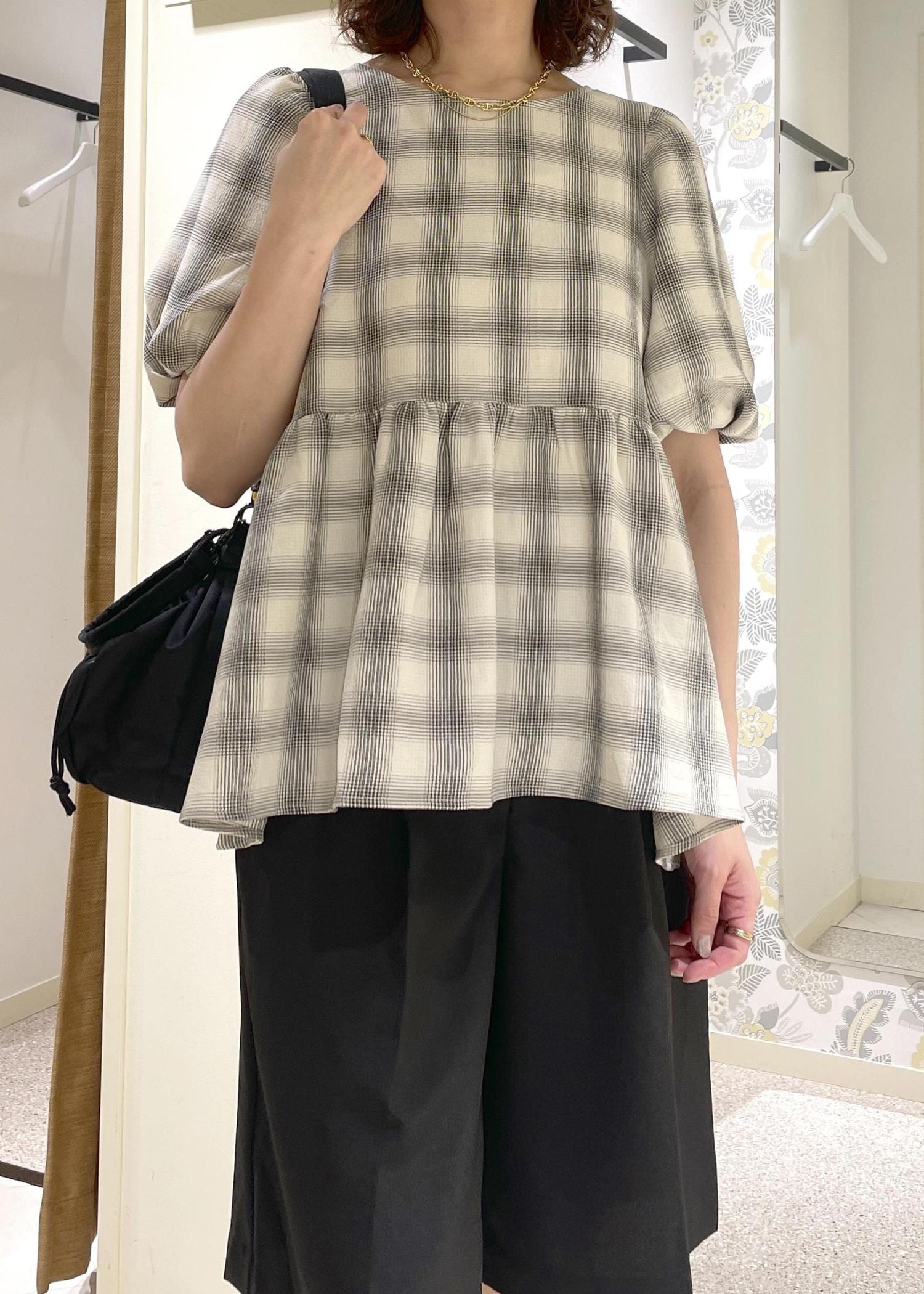 ふんわりとしたバルーンスリーブとペプラムシルエットが可愛らしいペプラムブラウス!