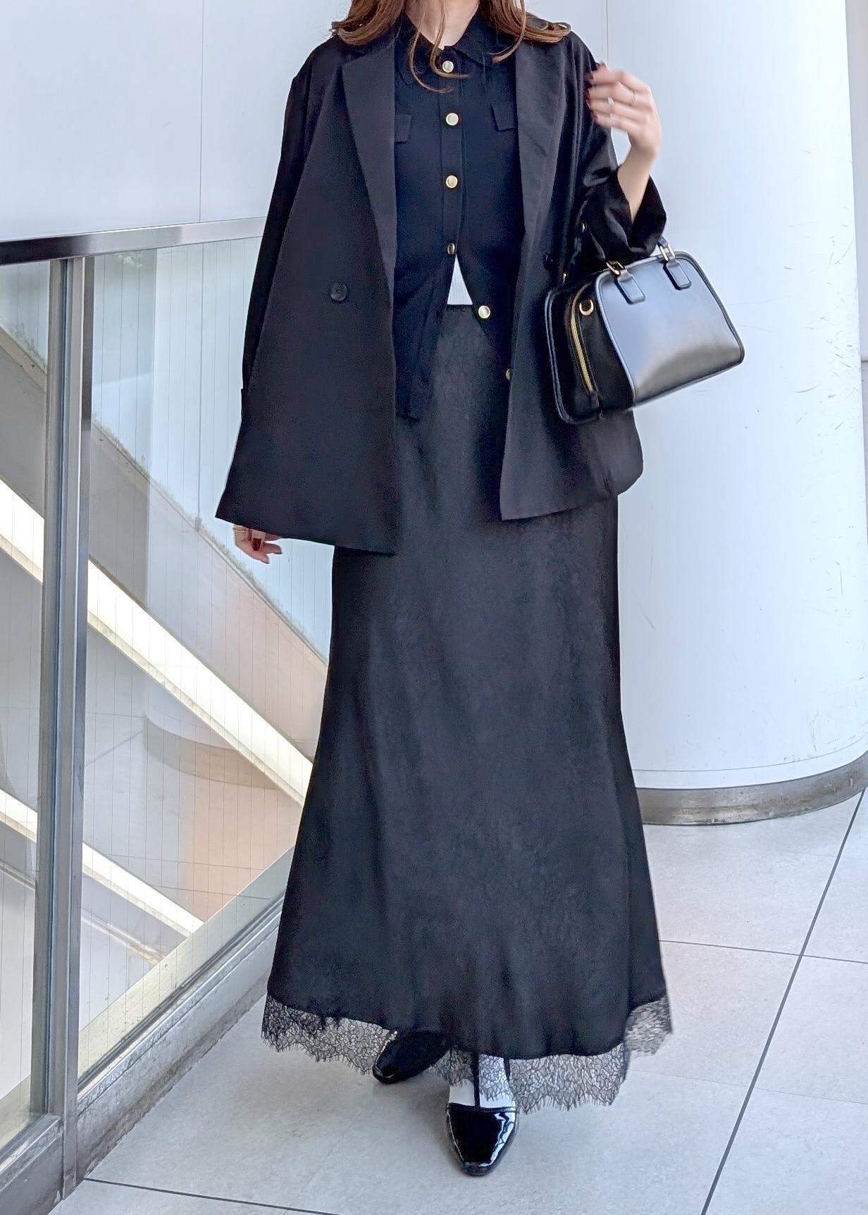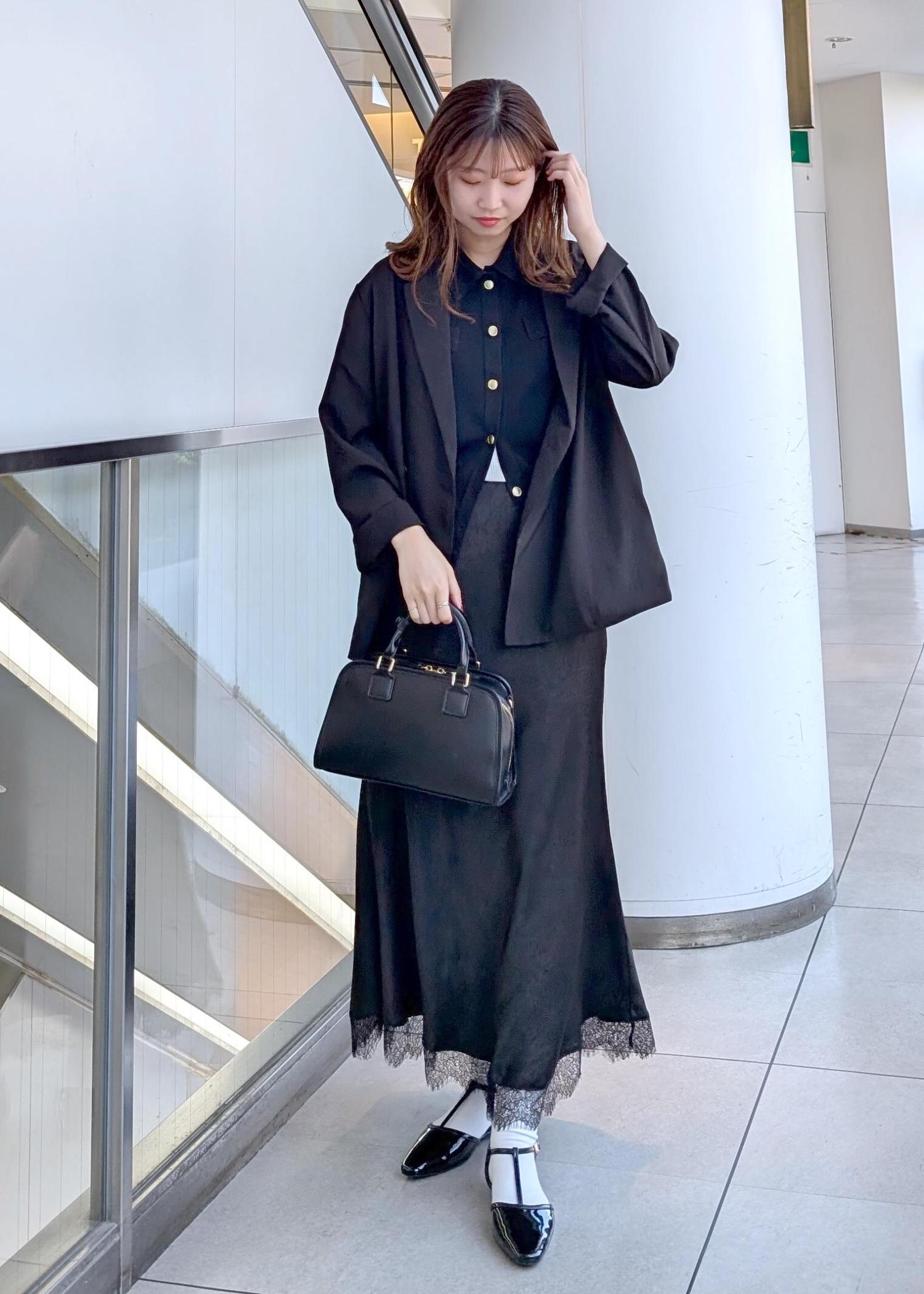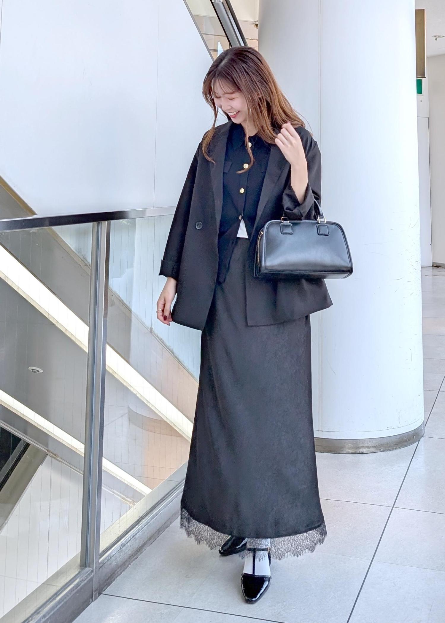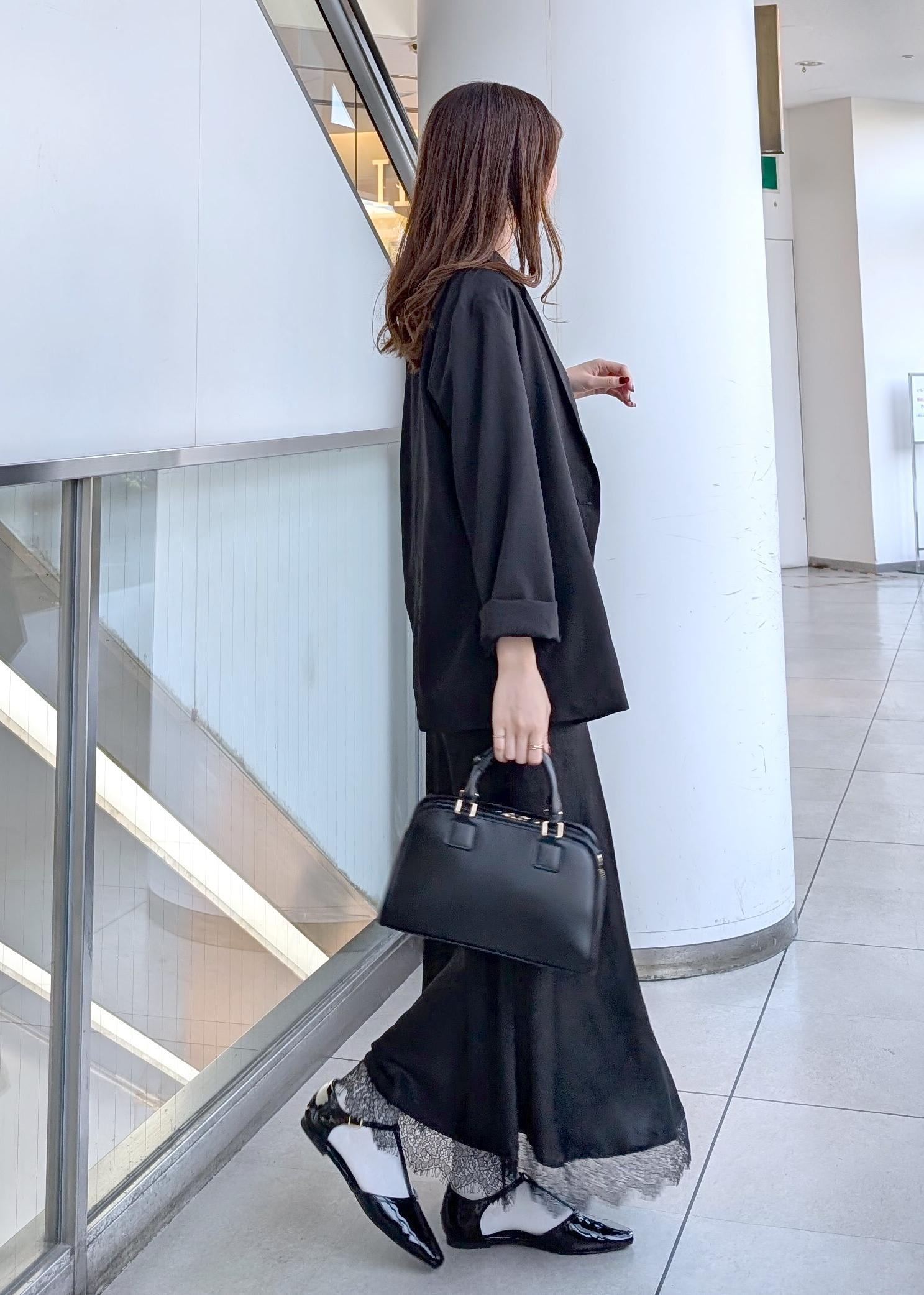 オフィスカジュアルやお出掛けに使えるブラックコーデ。