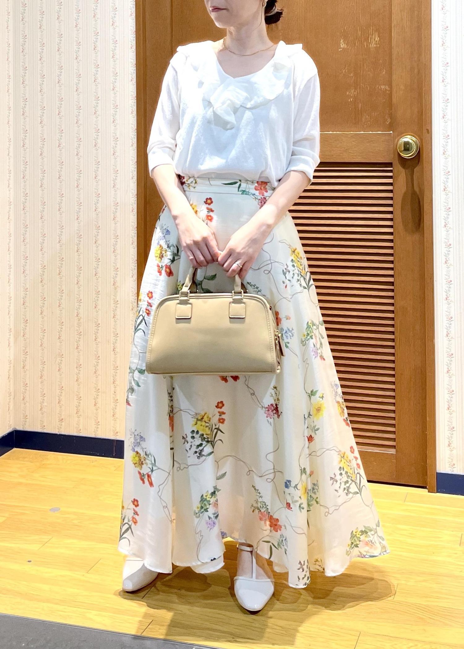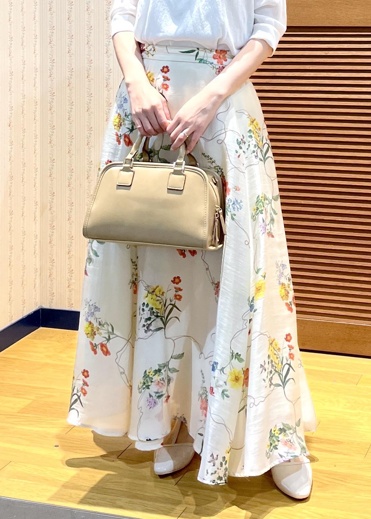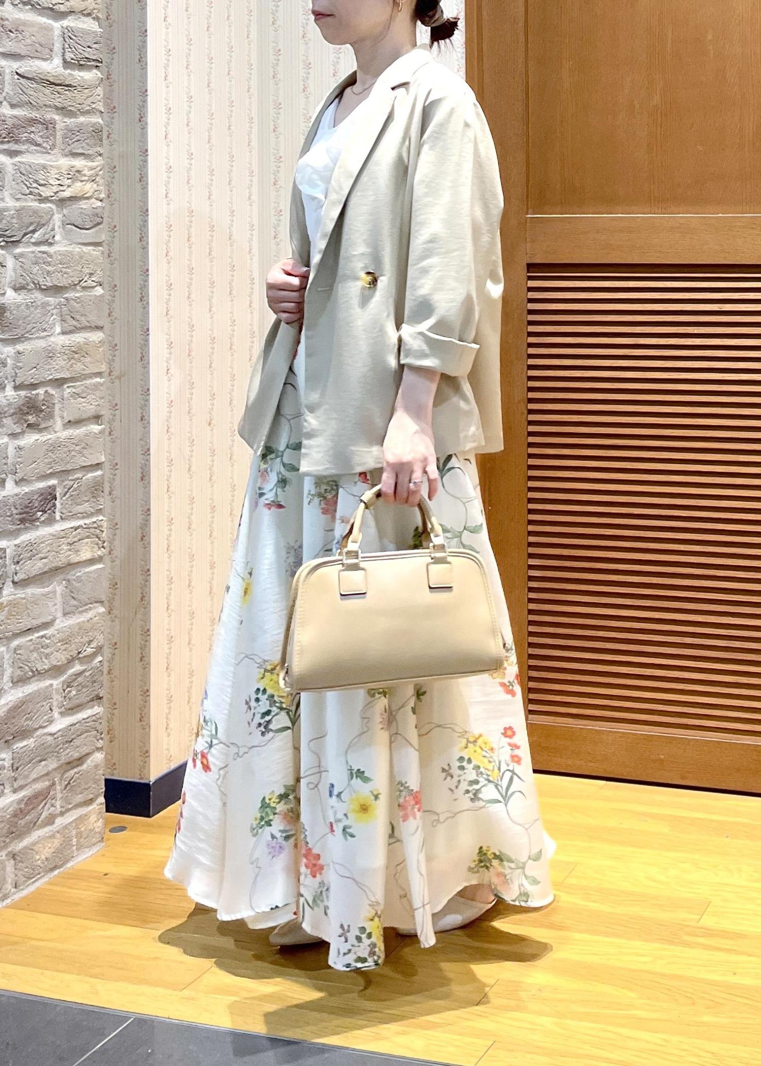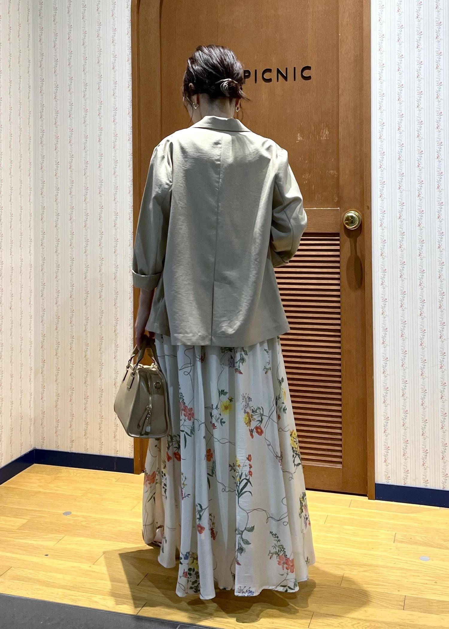 花柄スカートはインパクトのあるデザインですが、ジャケットを合わせると落ち着いて普段使いにも取り入れやすいです。